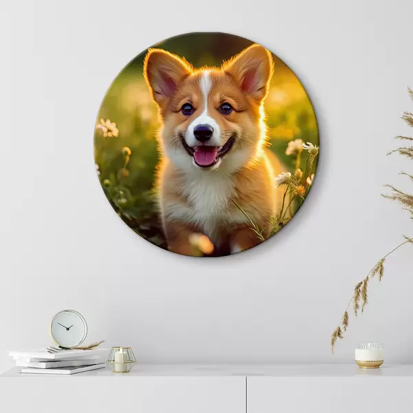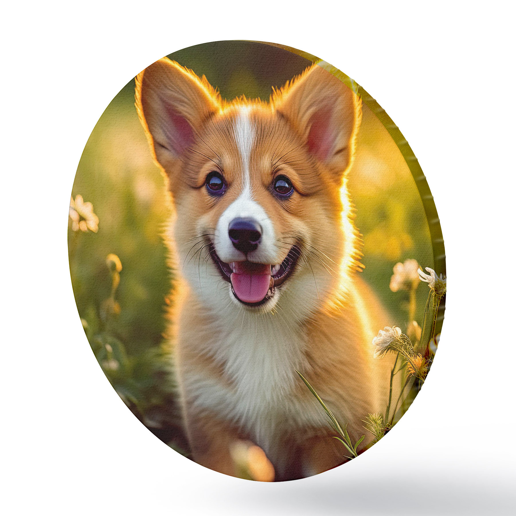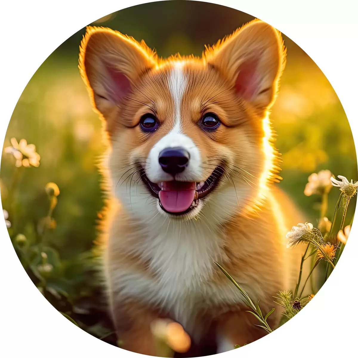 Nuotrauka Korgių veislės šuniukas laukinėse gėlėse Nr r33532