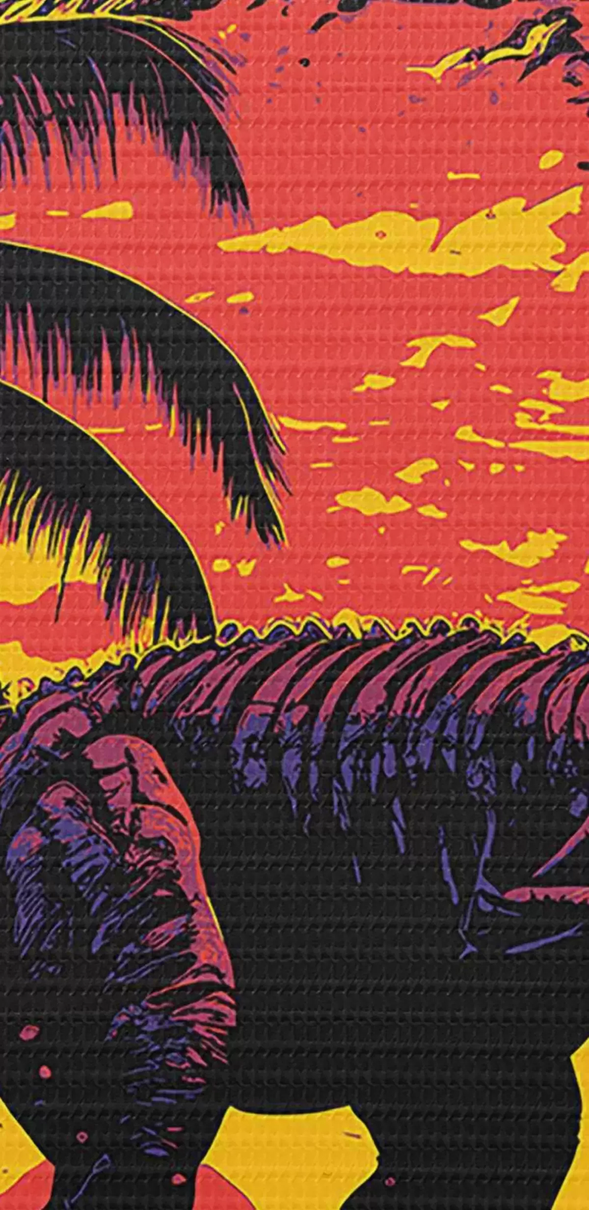 Nuotrauka Dinozauras saulėlydyje tarp palmių Nr r33894