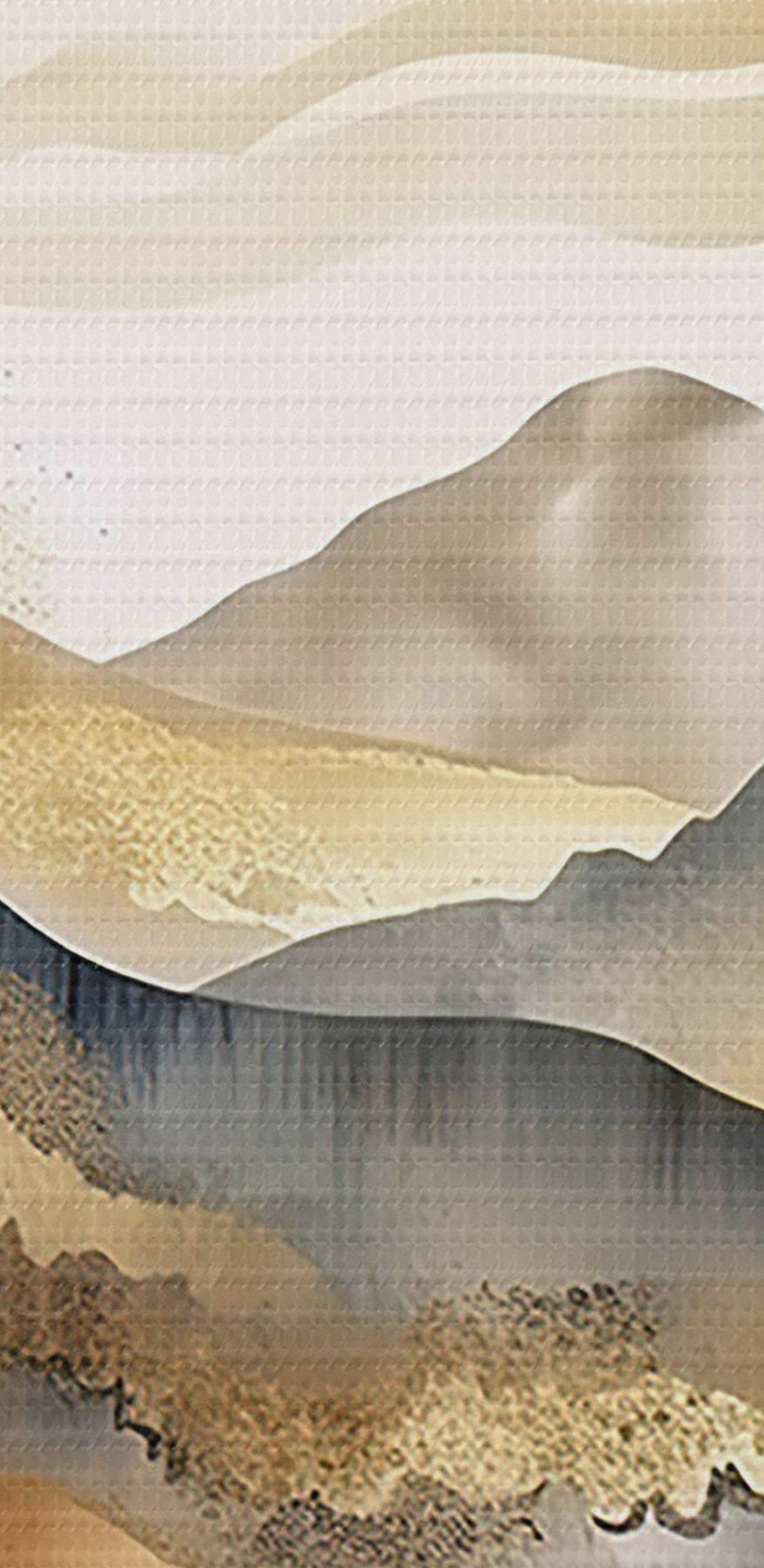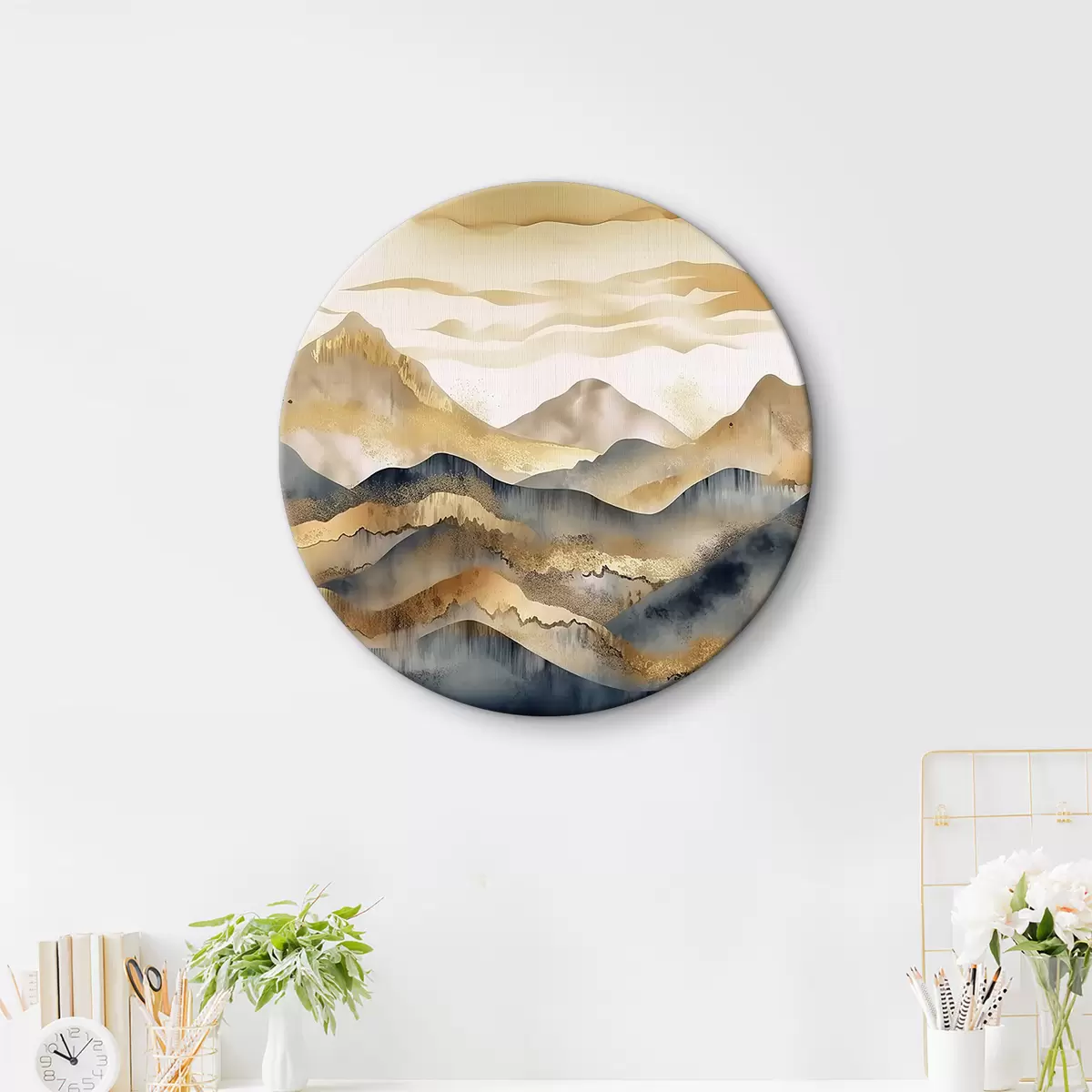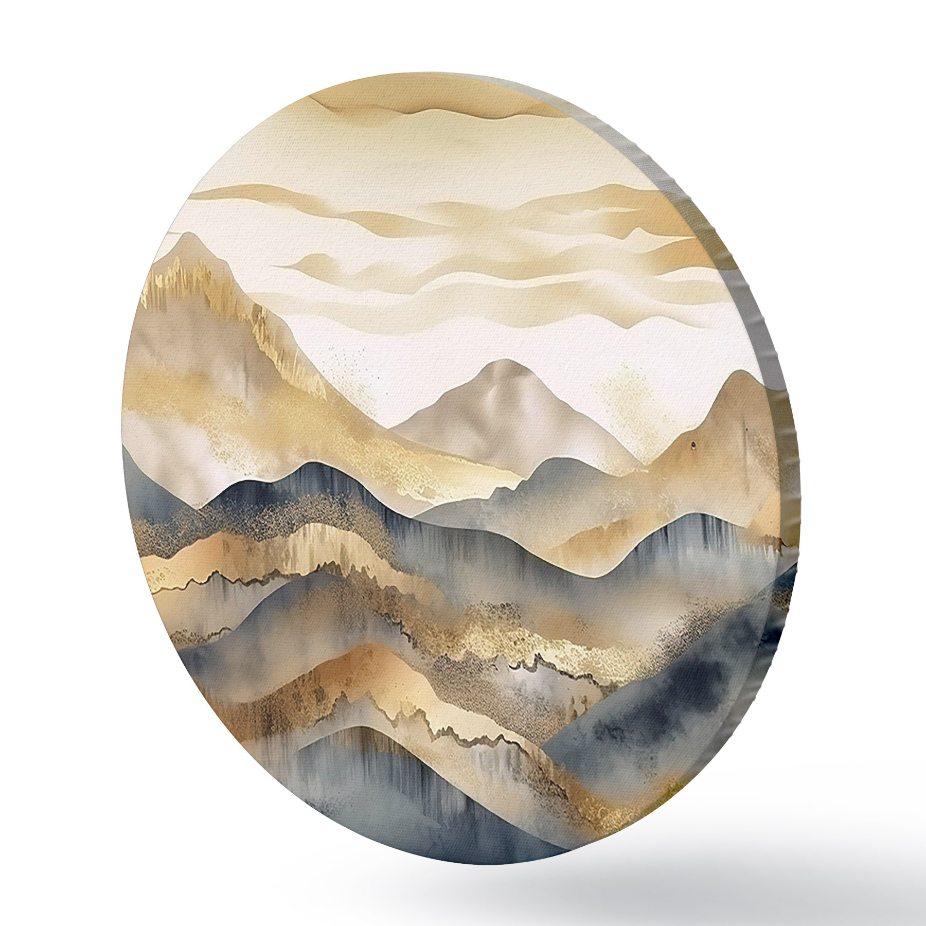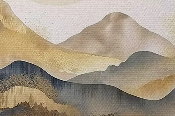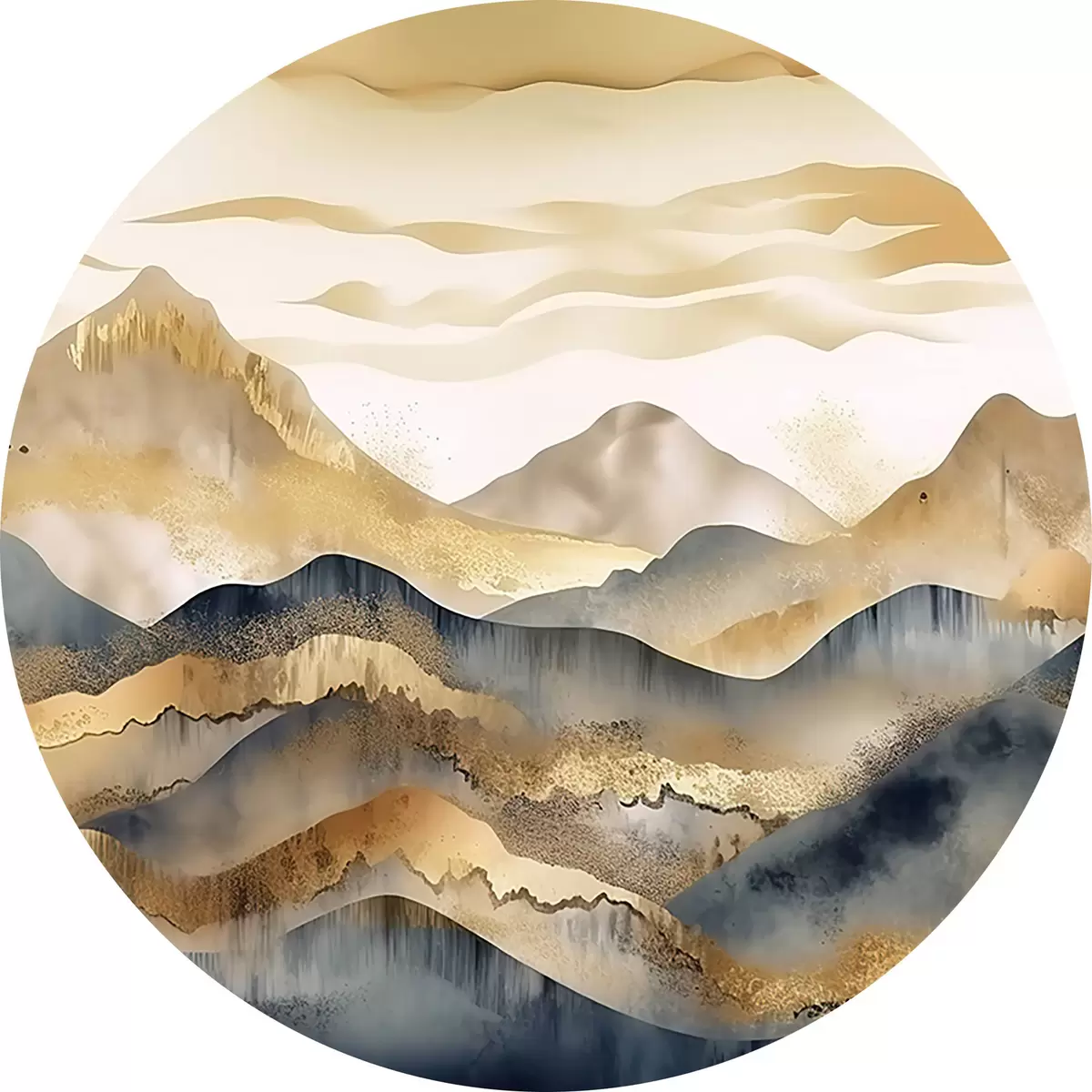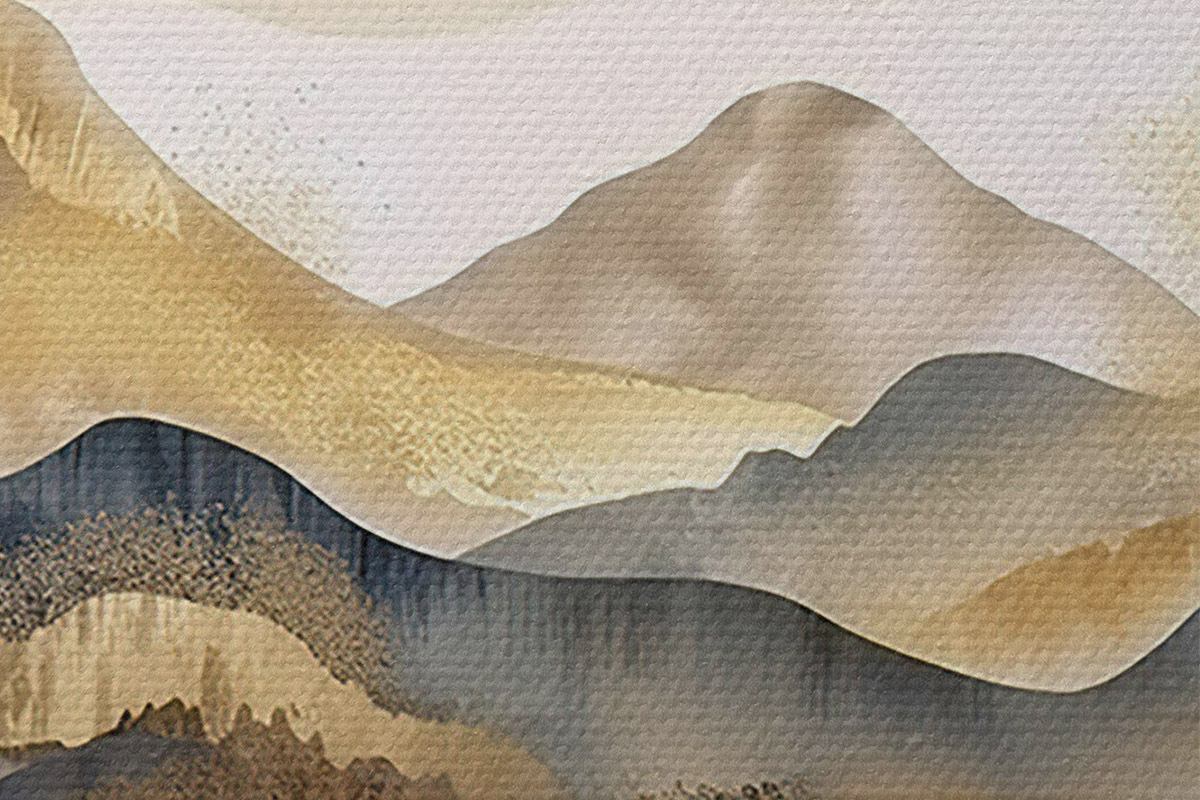 Nuotrauka Abstraktus smėlio ir pilkos spalvos kalnų fonas su auksiniais elementais baltame fone Nr r34462