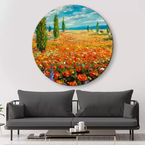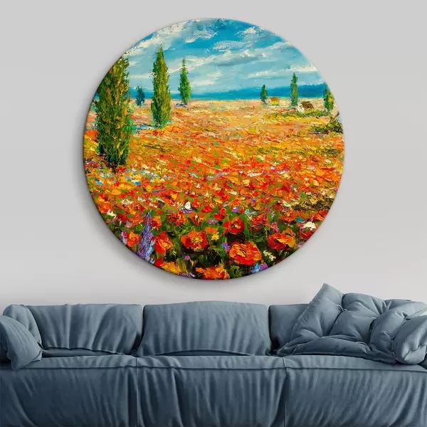 Nuotrauka Aguonų laukas mėlyno dangaus fone Nr r34956