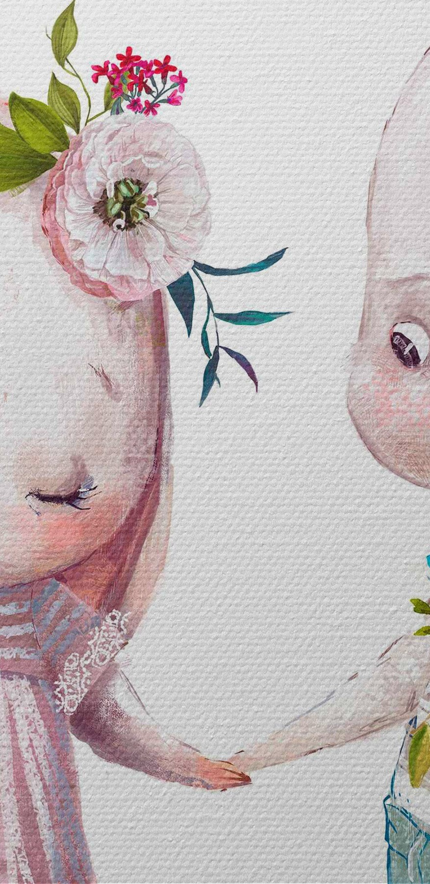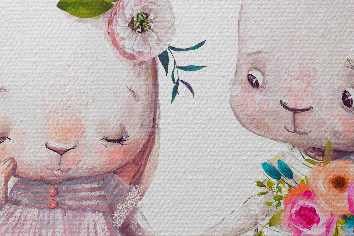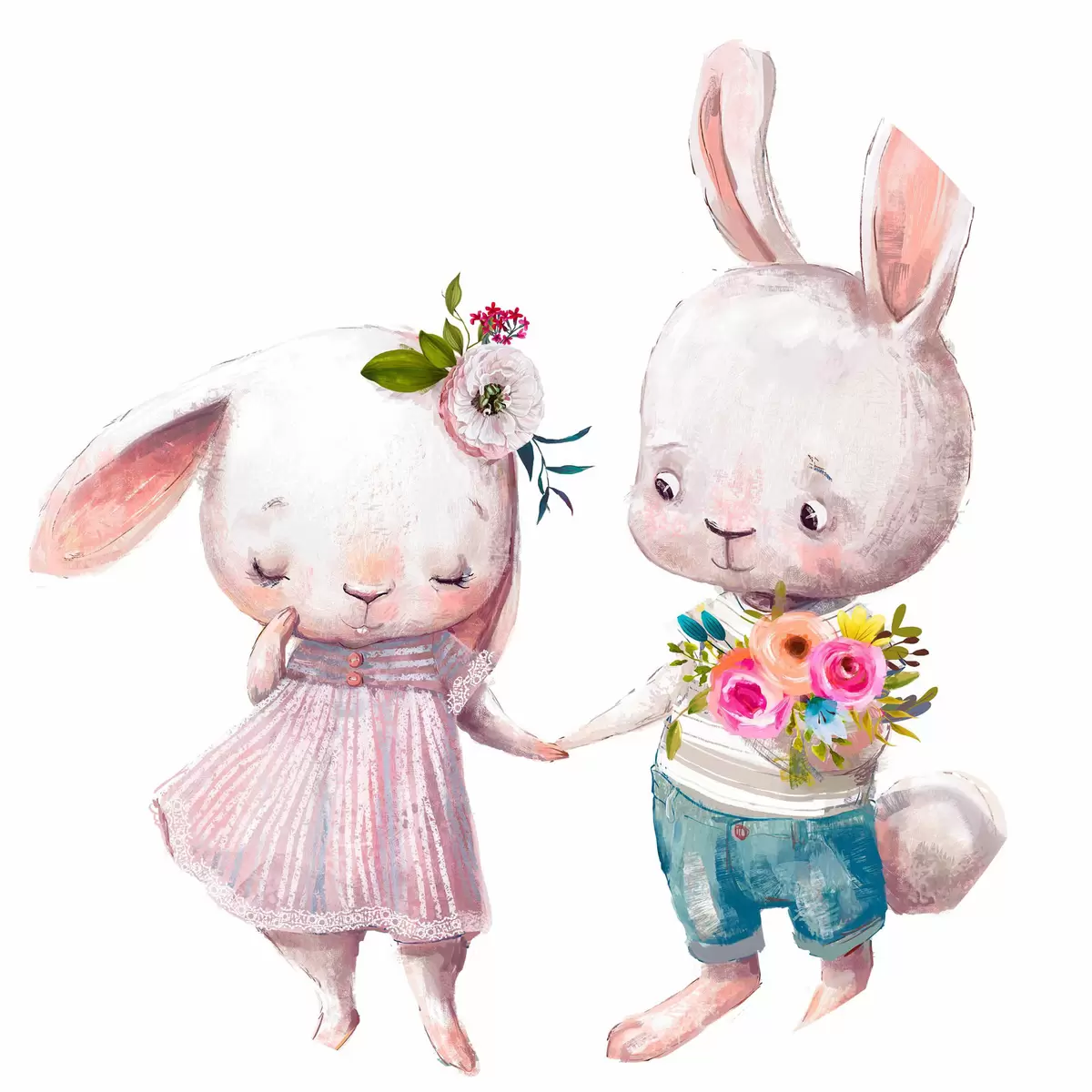 Nuotrauka Pora pasimatymų zuikučių ir gėlių Nr r35055