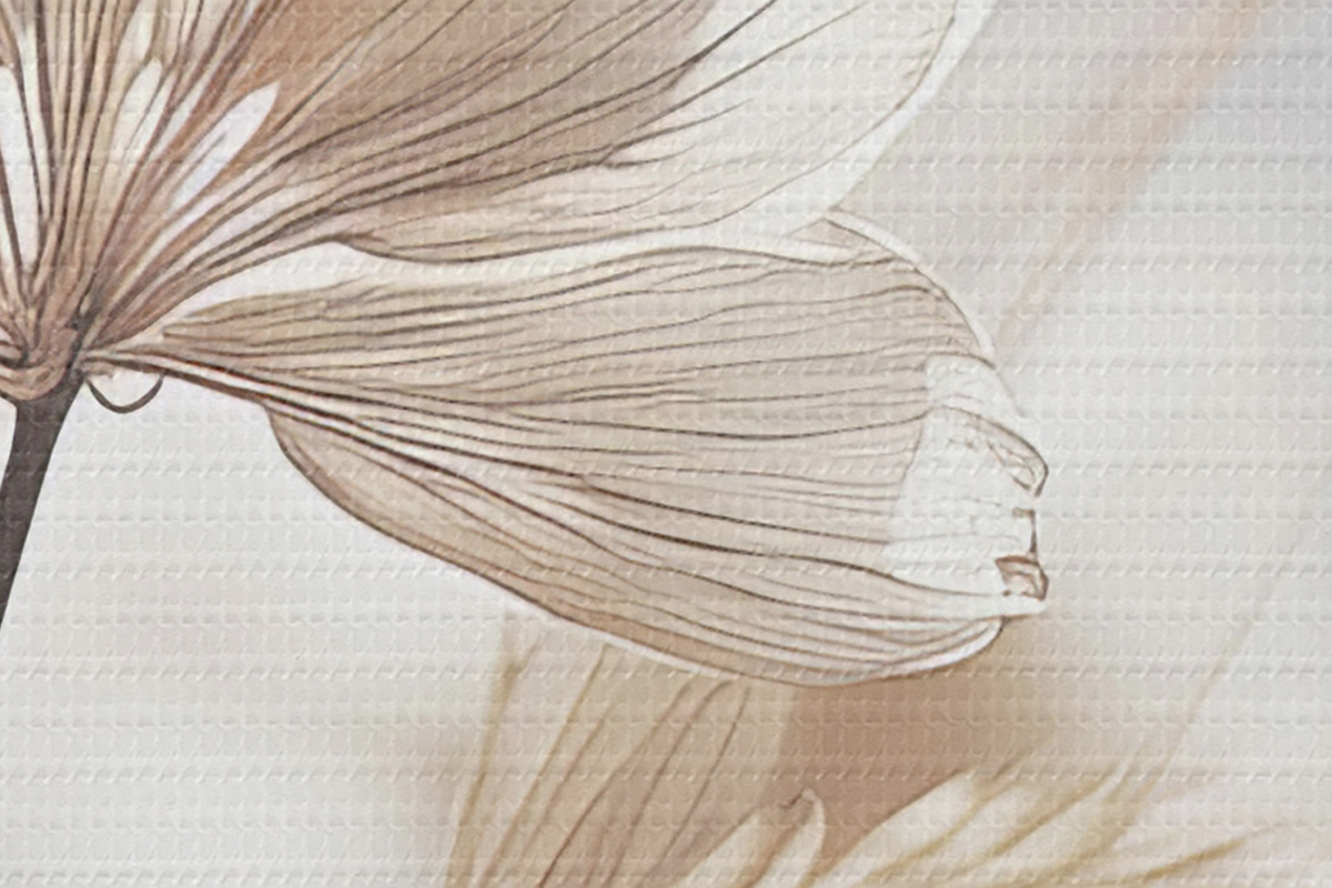 Galima užsakyti trijų rūšių medžiagą: "Economic Canvas" - tanki ir patvari medžiaga skaitmeninei spaudai, identiška dailininko drobės medžiagai, vandeniui atsparus paviršius, tikroviškas detalių atkūrimas, vidutinio grūdėtumo medžiaga. Premium Canvas - tekstūra primena dailininko drobę (susipynę smulkūs siūlai). Minkštas, detalus vaizdo atkūrimas ant matinio paviršiaus. Eco-Premium - aukštos kokybės 100 % medvilninis audinys. Dėl natūralių medvilnės pluoštų medžiaga yra patvari ir atspari nusidėvėjimui. Puikus spalvų atkūrimas ir detalumas.