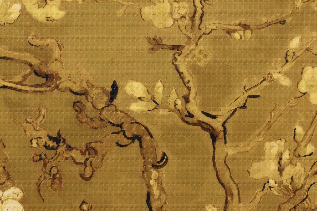 Nuotrauka Žydinčios migdolų šakos auksiniais atspalviais Nr r35609