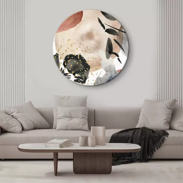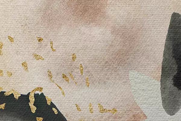 Nuotrauka Akvarelinis abstraktus plakatas su raudonomis, juodomis, smėlio ir auksinėmis dėmėmis Nr r35937