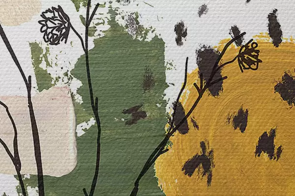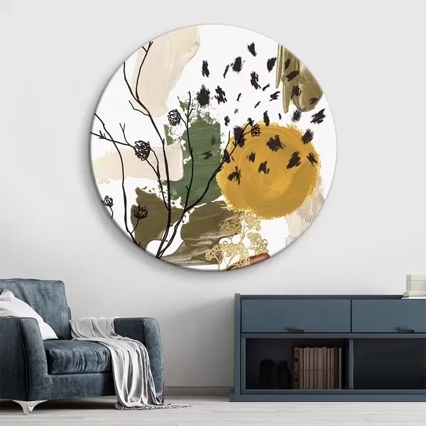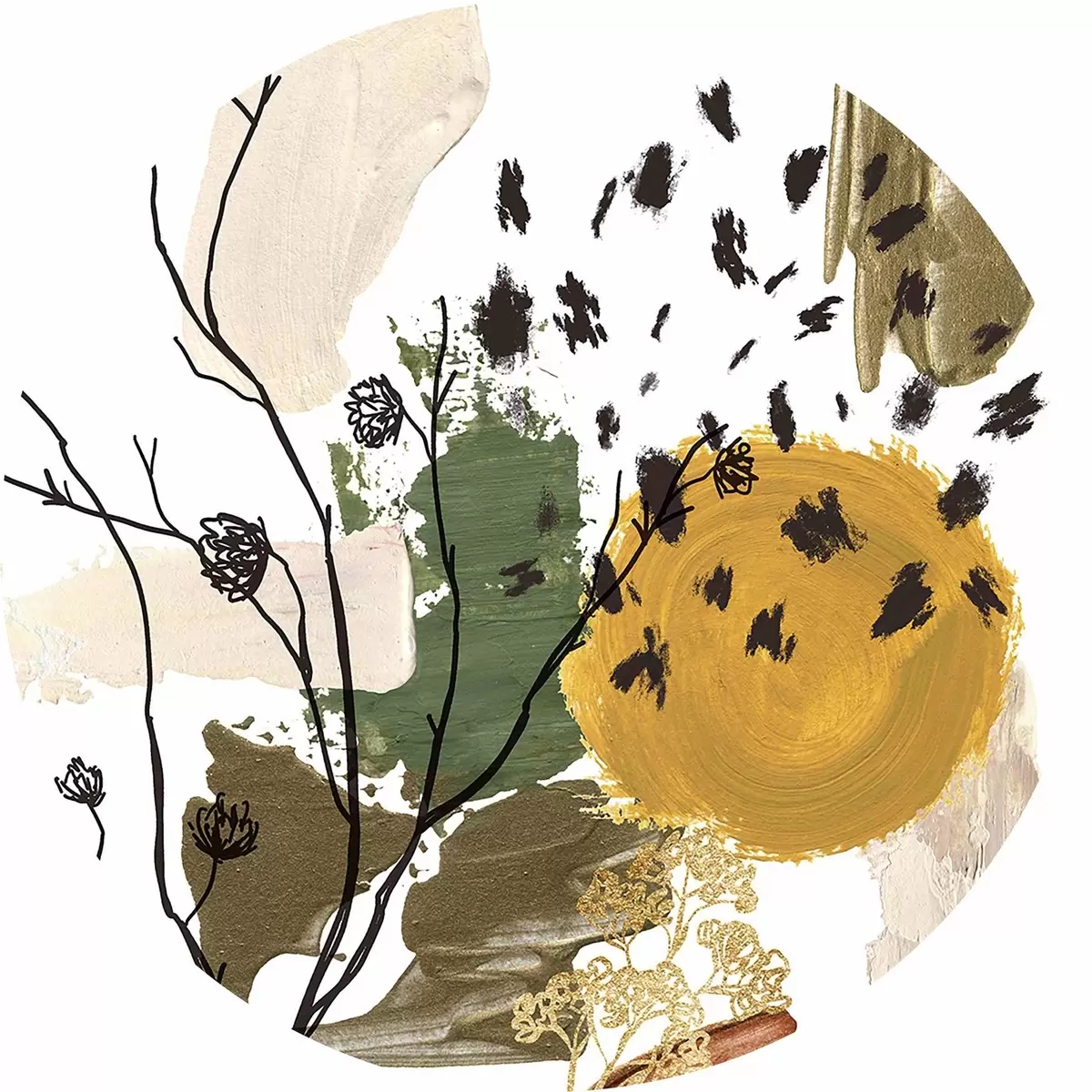 Nuotrauka Akvarelinė rudens kompozicija iš linijinių šakų, rudų, geltonų ir žalių dėmių Nr r35950