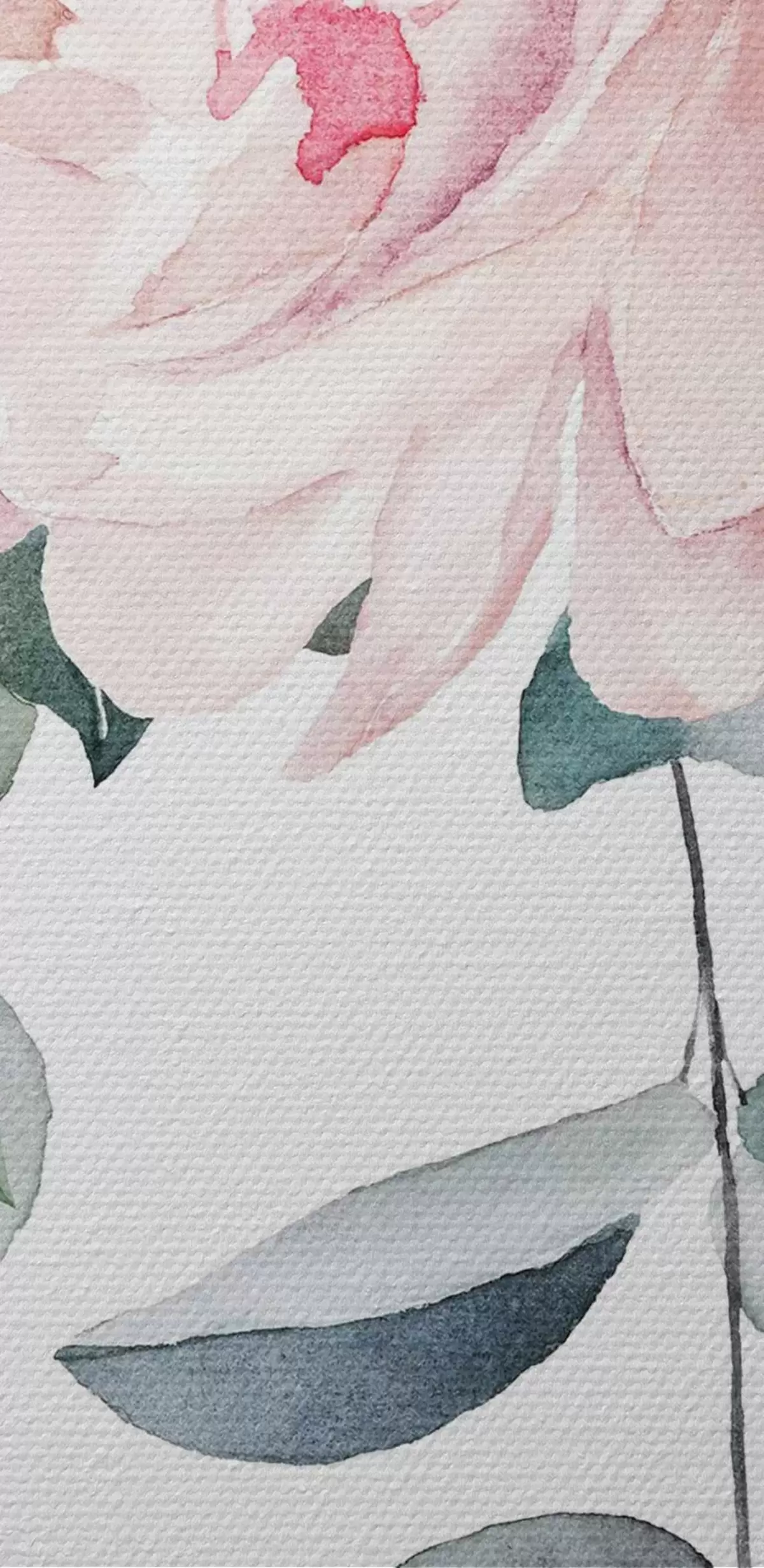 Nuotrauka Rožinė akarelės gėlė kabančių lapų fone Nr r36141