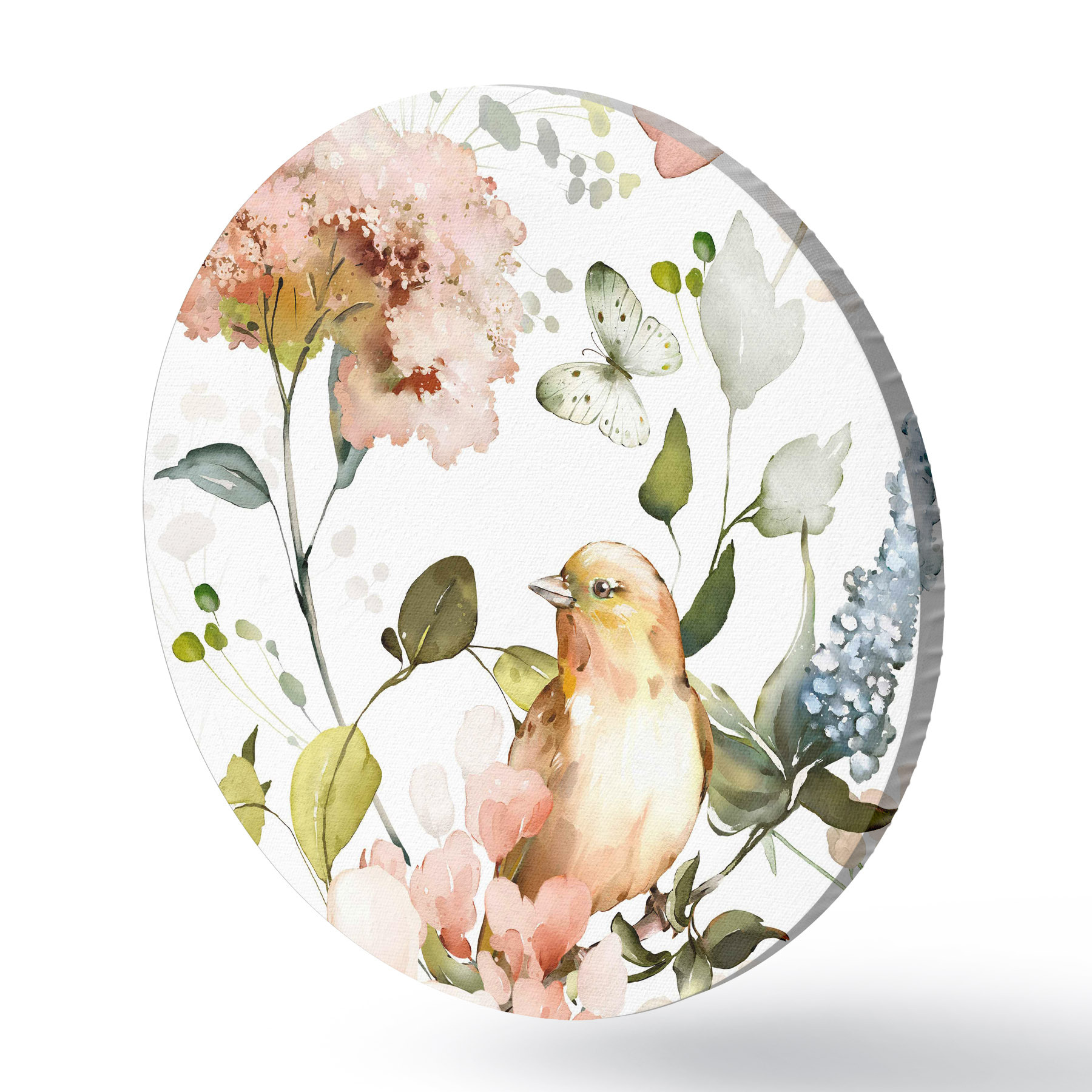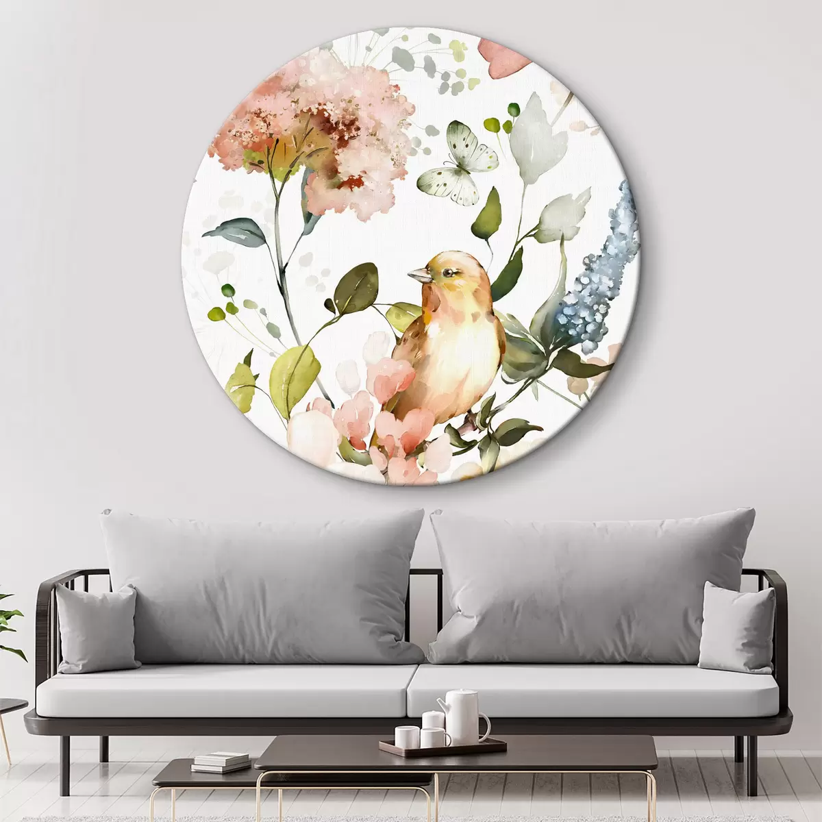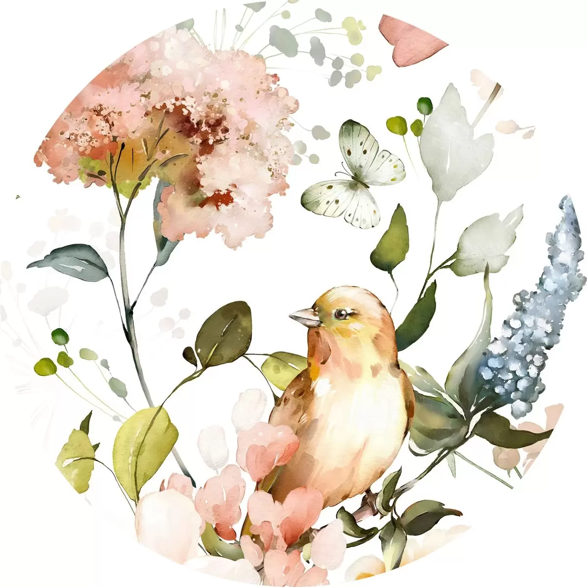 Nuotrauka Akvarelė, vaizduojanti gėles, paukščius ir drugelius baltame fone Nr r36153