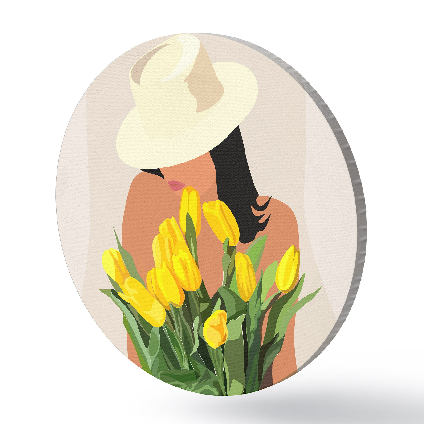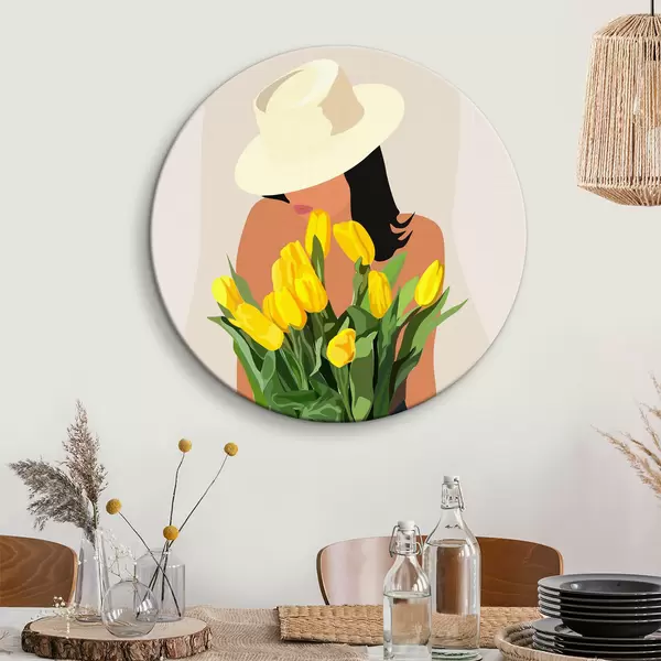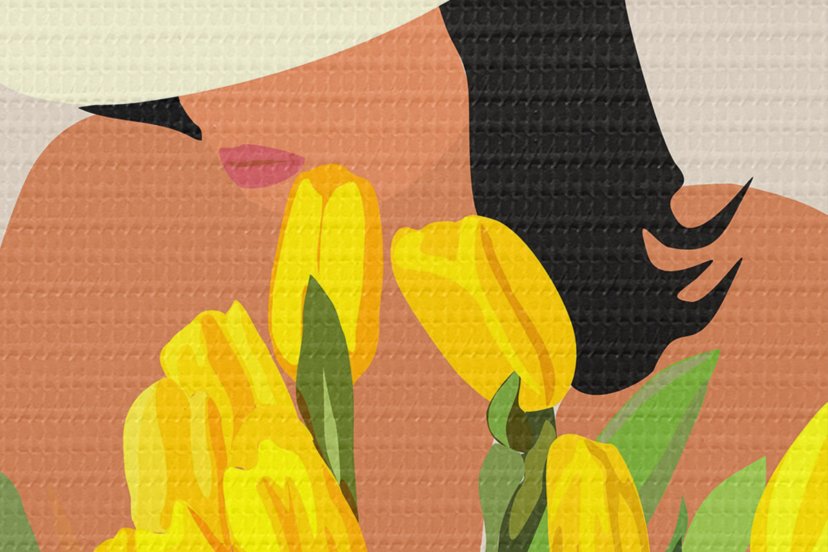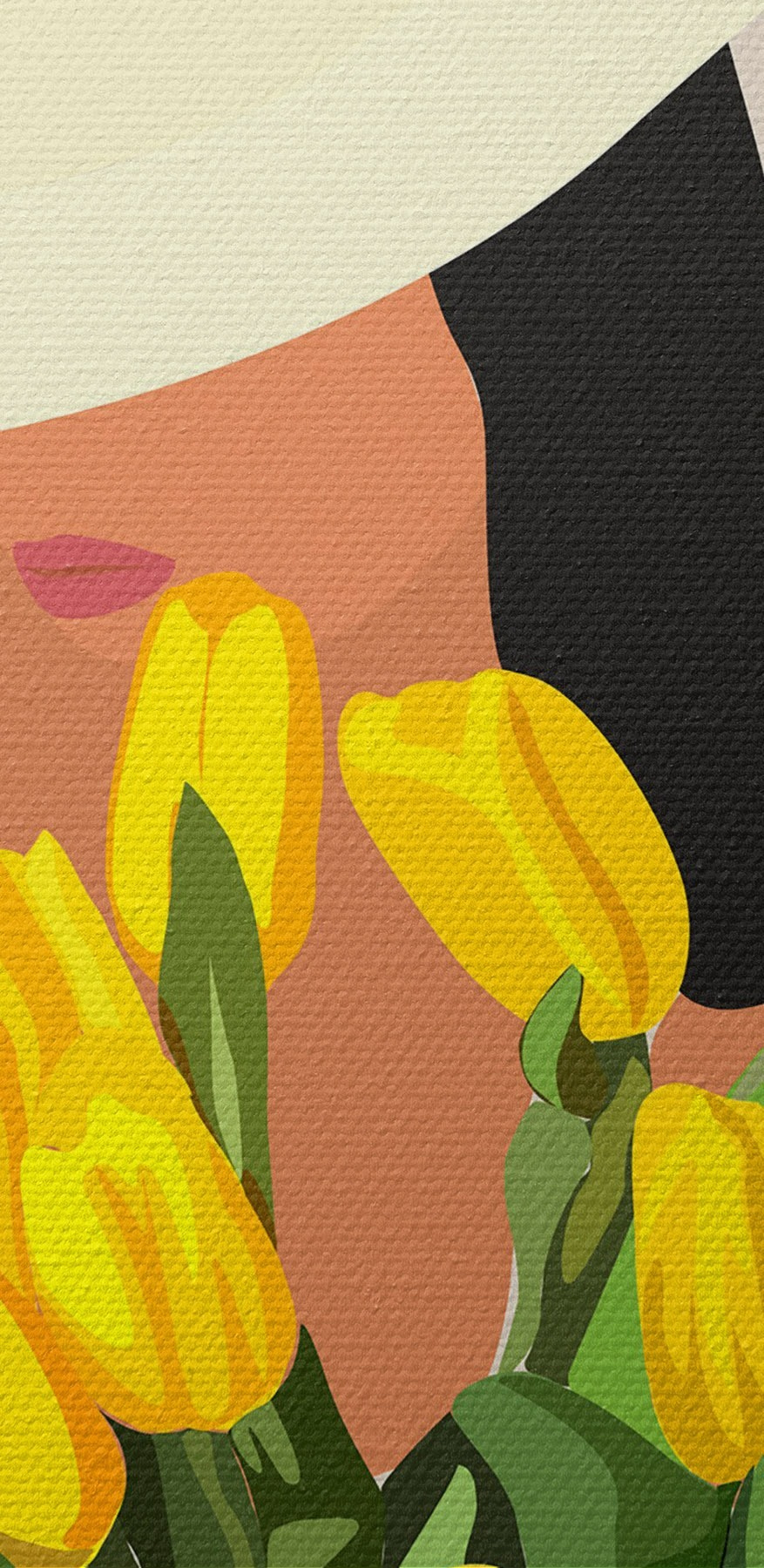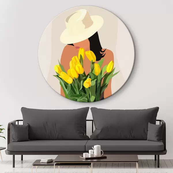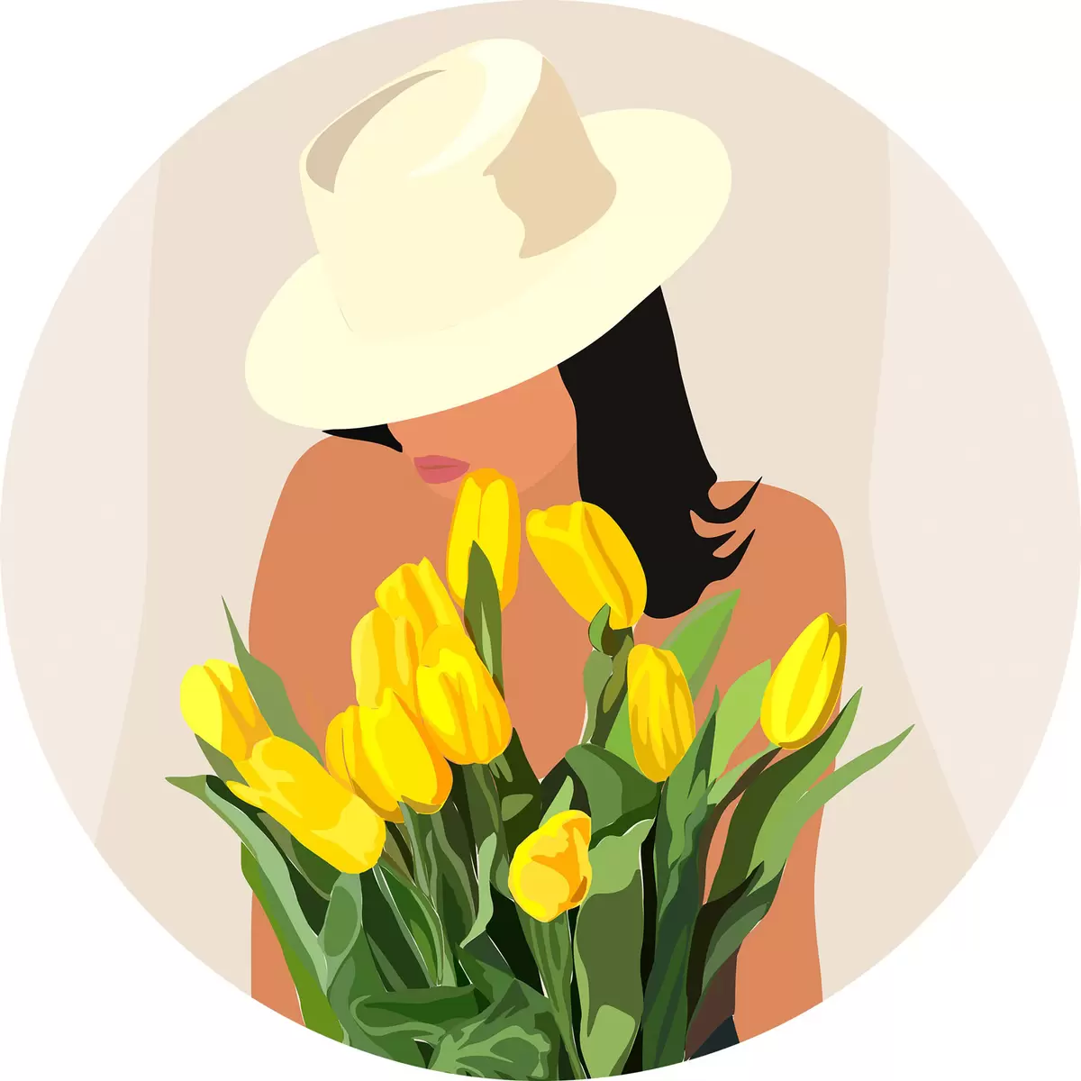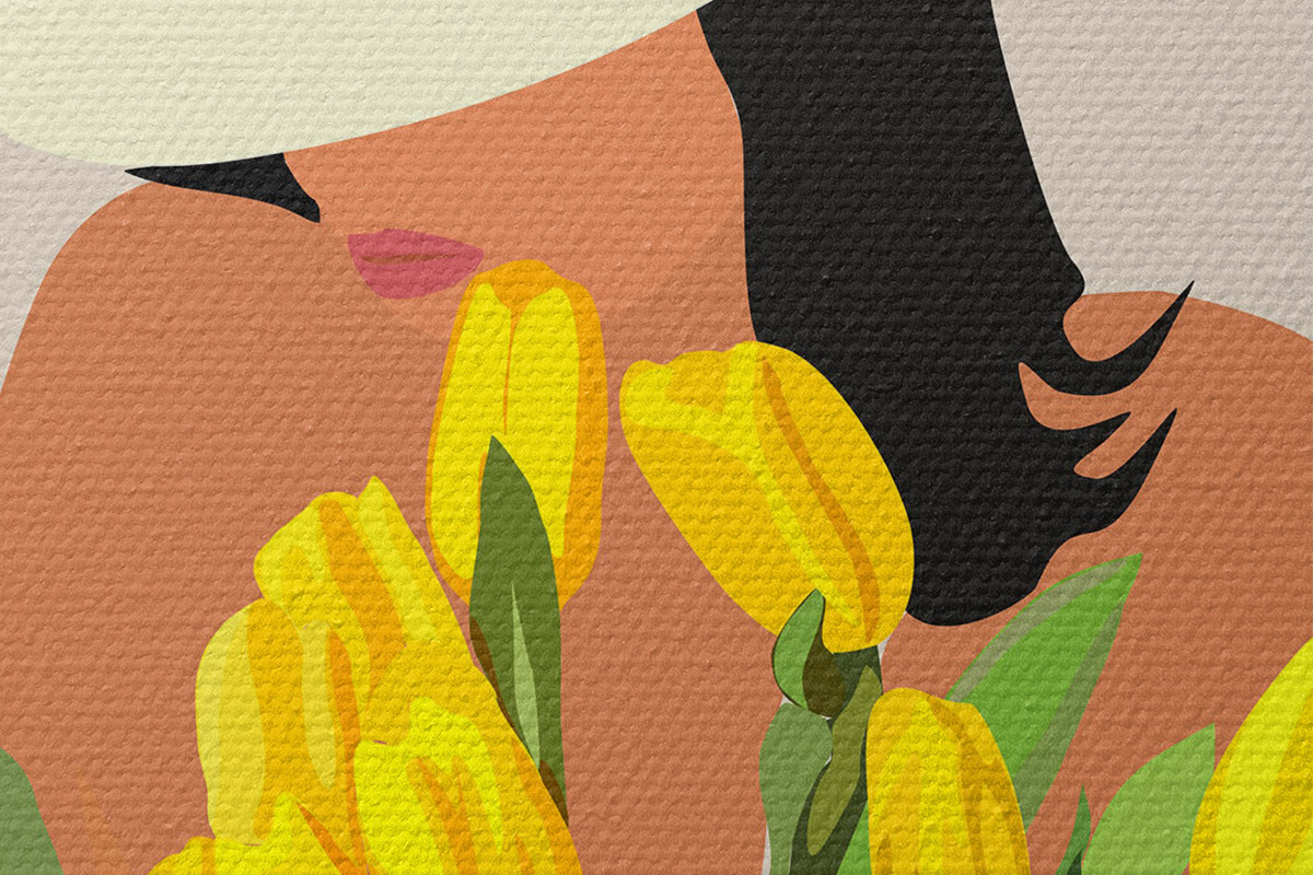 Nuotrauka Mergaitė su geltonomis gėlėmis abstraktus boho stiliaus Nr r36336