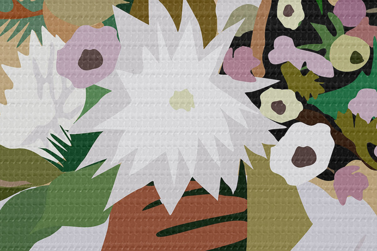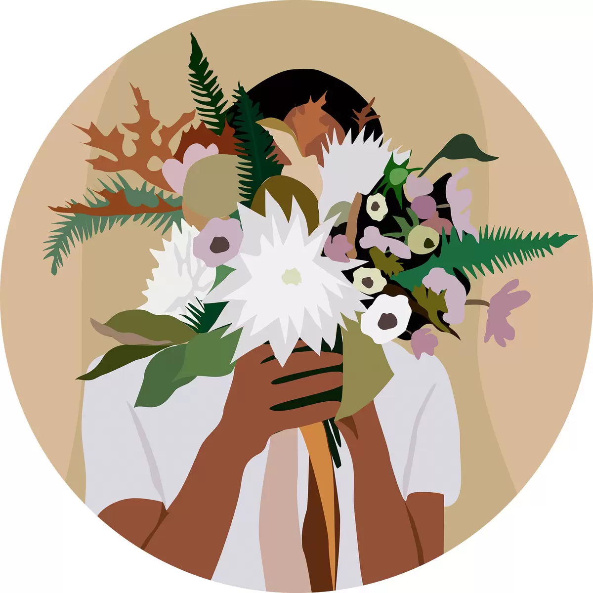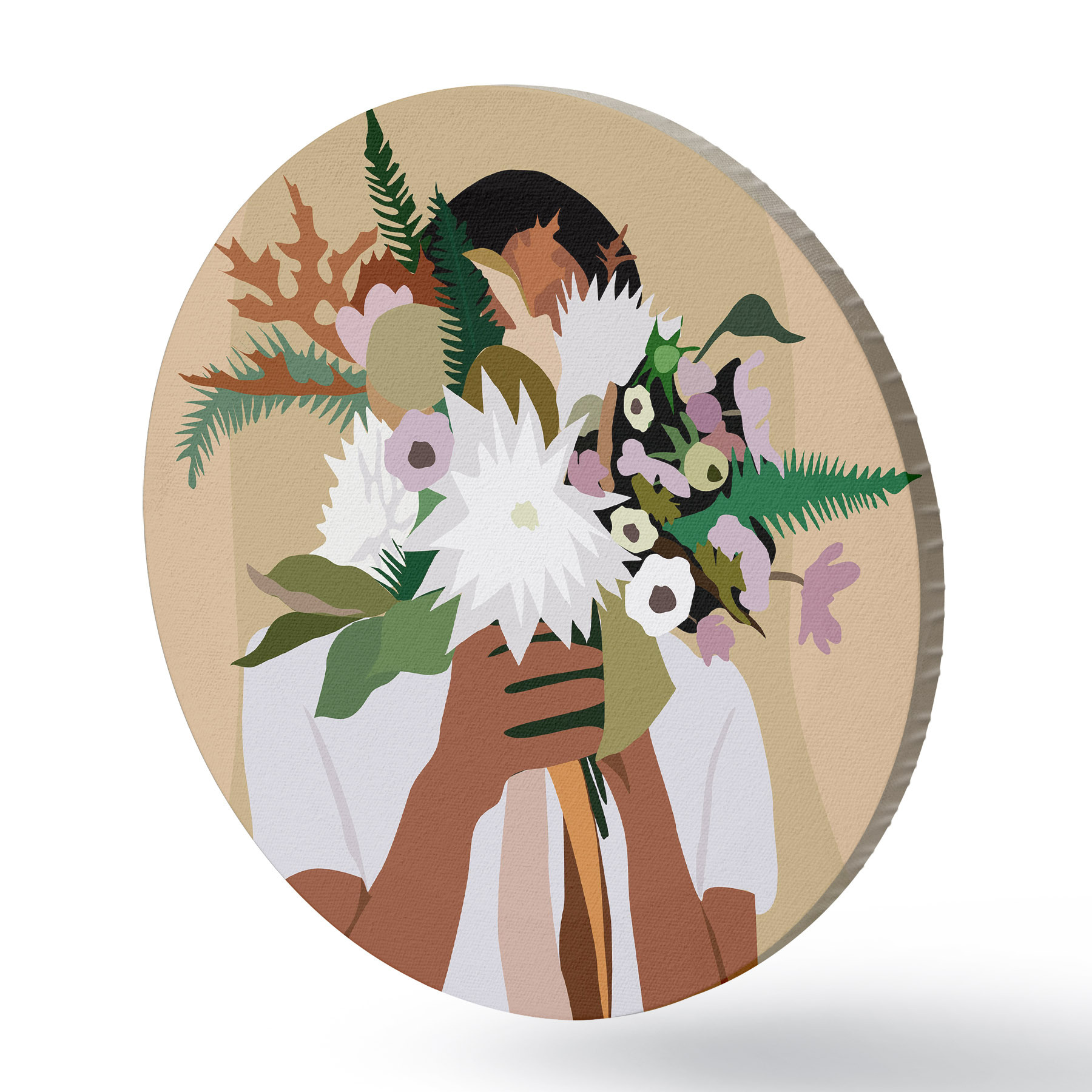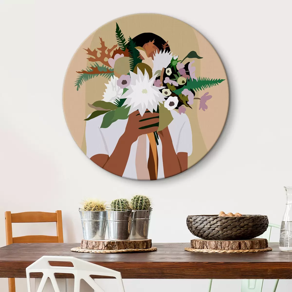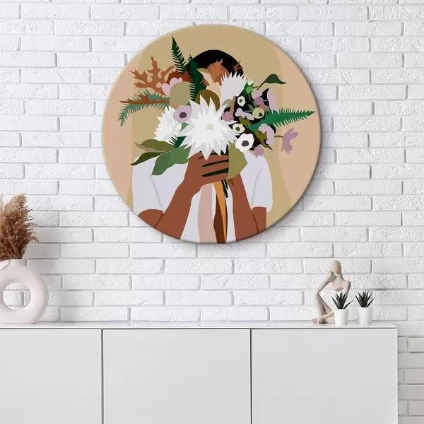 Nuotrauka Mergina su gėlių puokšte abstraktus boho stiliaus Nr r36367