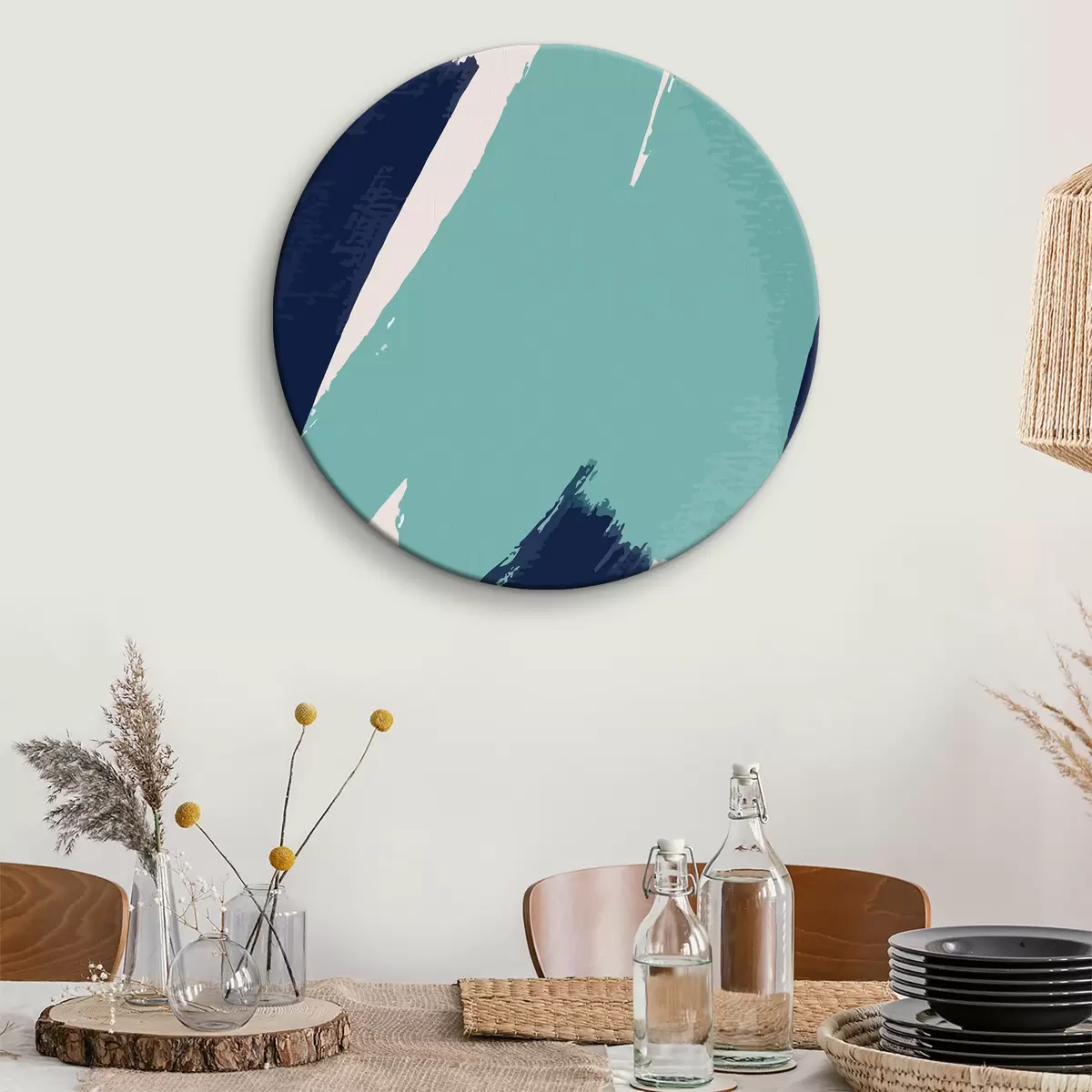 Apvalūs paveikslai Mėlynos ir turkio spalvos teptuko potėpiai r36416