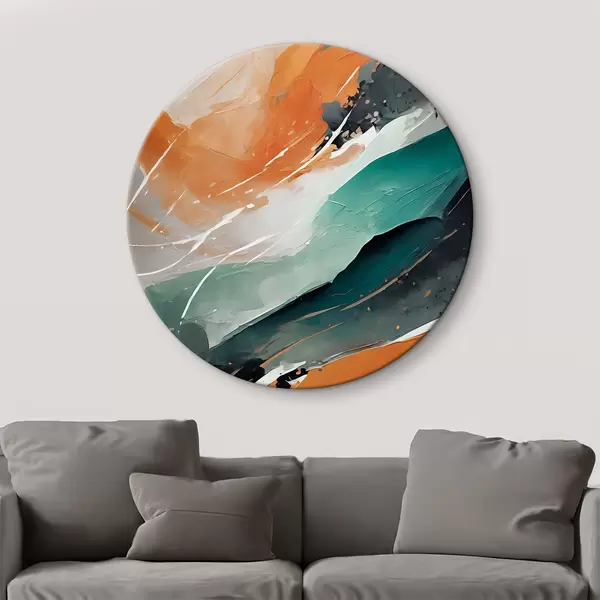 Nuotrauka Abstraktus akrilo menas, teptuko potėpis, dažų tekstūra, oranžinė, mėlyna spalvos Nr r36497
