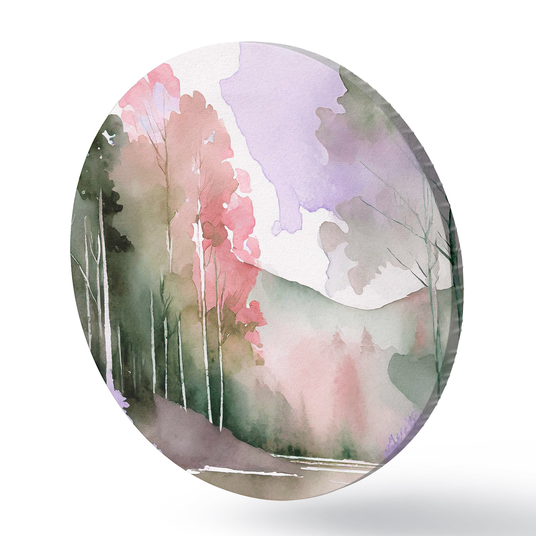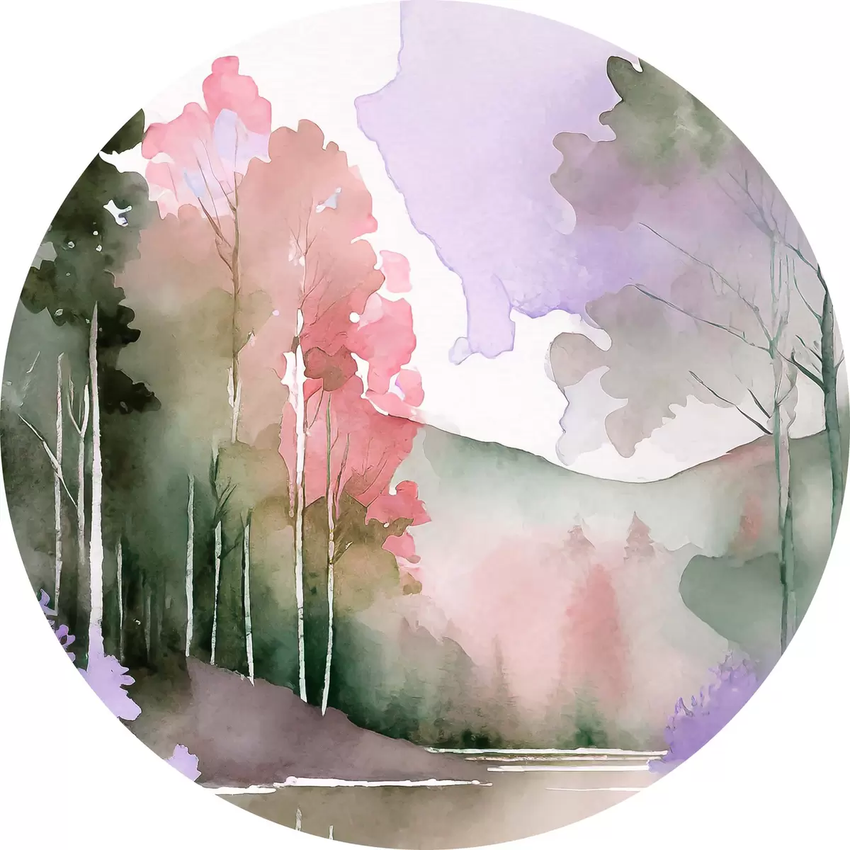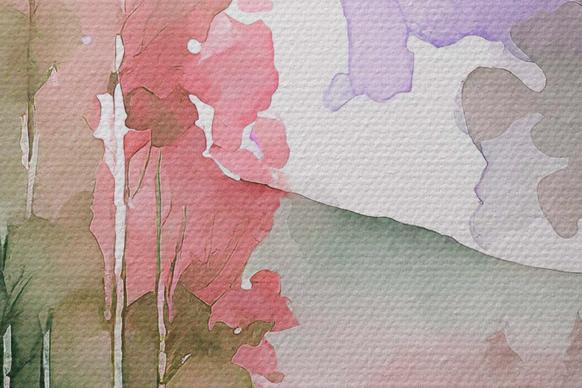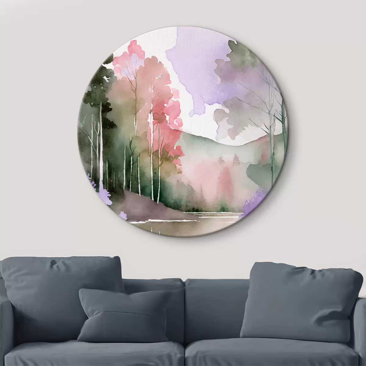 Nuotrauka Akvarelė Ežero ir miško kraštovaizdis, pavasaris, švelnios natūralios spalvos Nr r36501