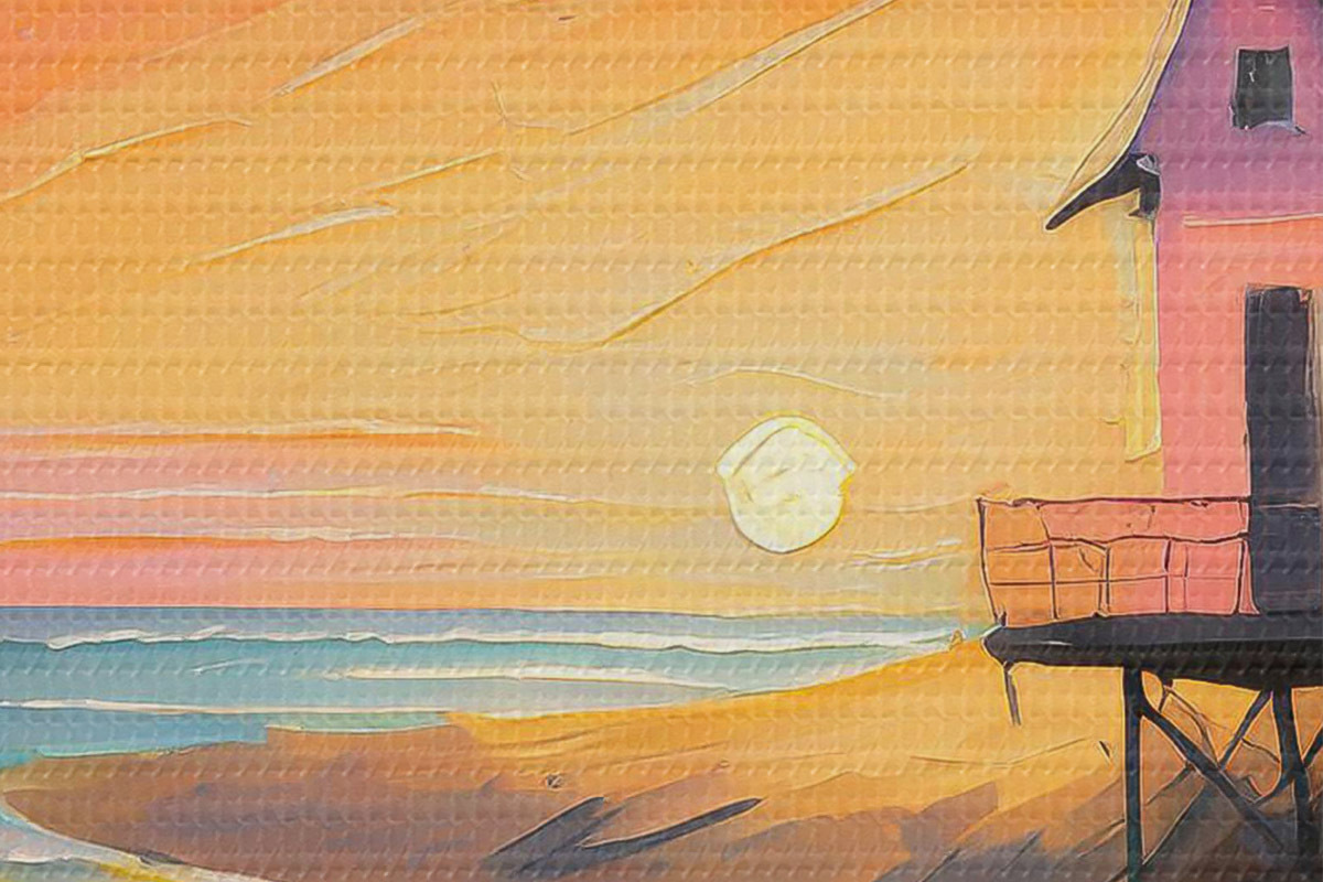 Nuotrauka Saulėlydžio spalvos pajūrio slėptuvėje Nr r36583