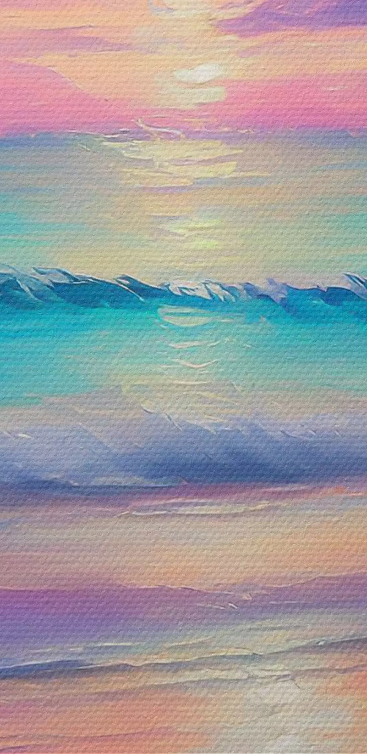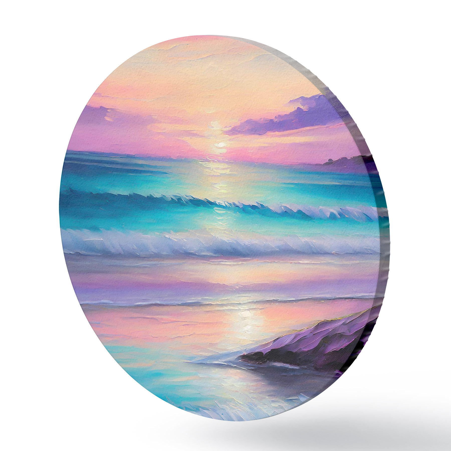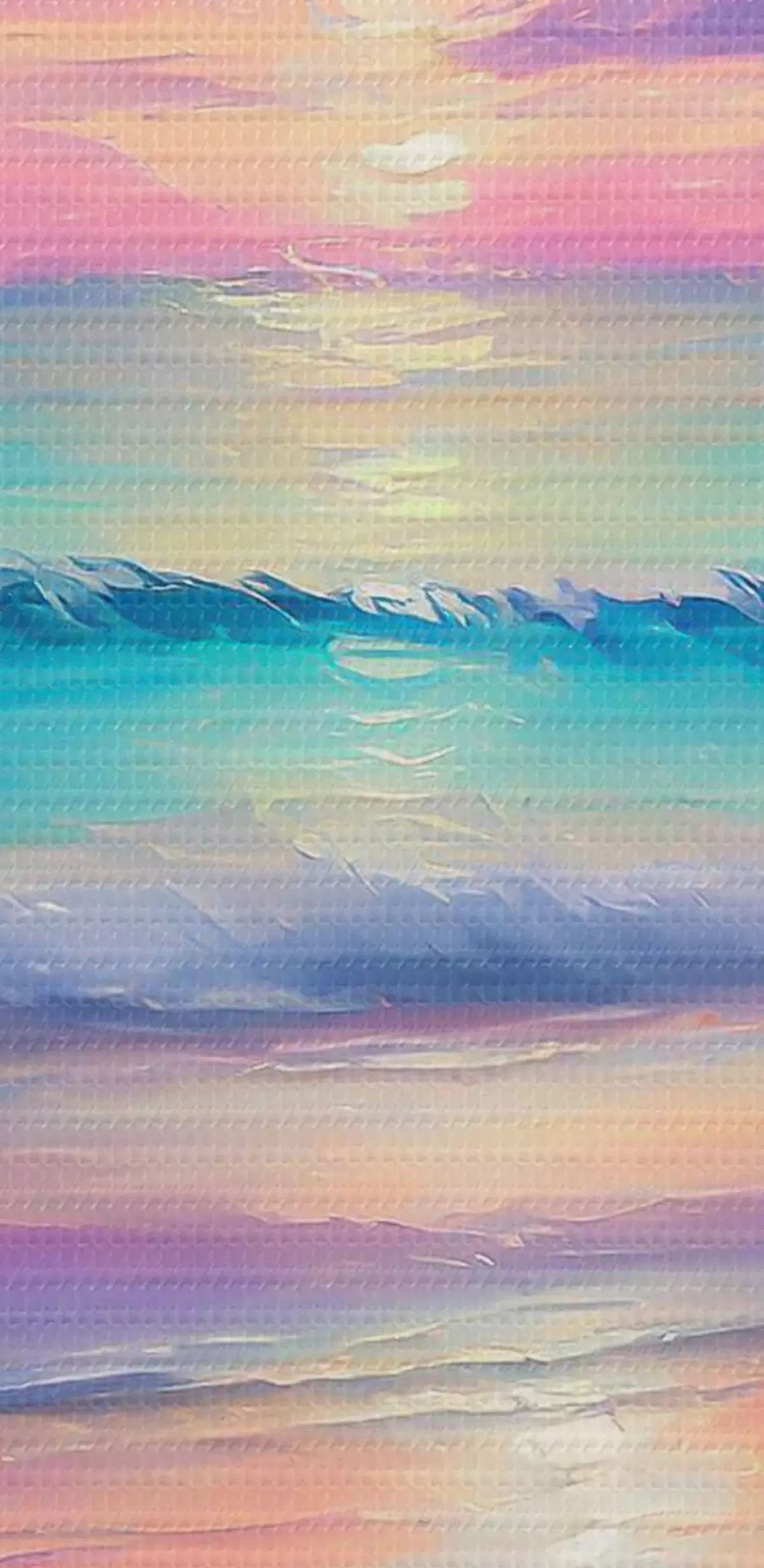 Nuotrauka Švelnus violetinis saulėlydis jūros pakrantėje, akrilo piešinys, jauki paplūdimio atmosfera Nr r36590
