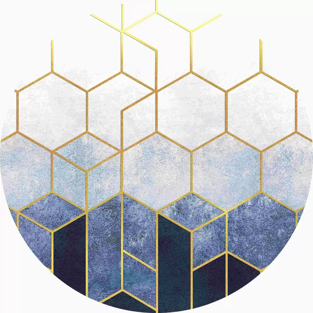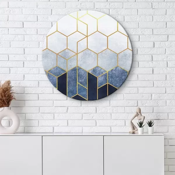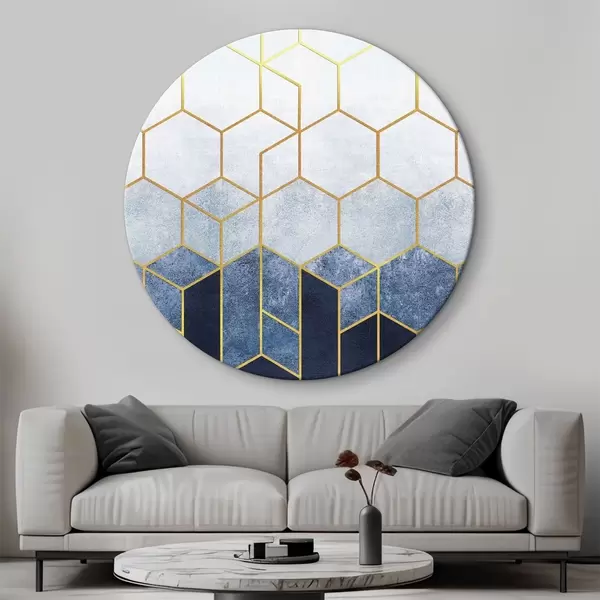 Apvalūs paveikslai Elegantiškas mėlynos ir baltos spalvos geometrinis raštas r36601