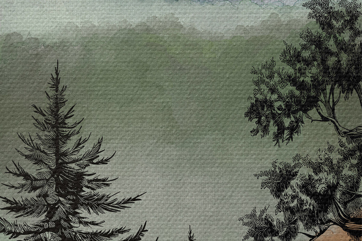 Nuotrauka Kalnų ir medžių akvarelė Nr r36604