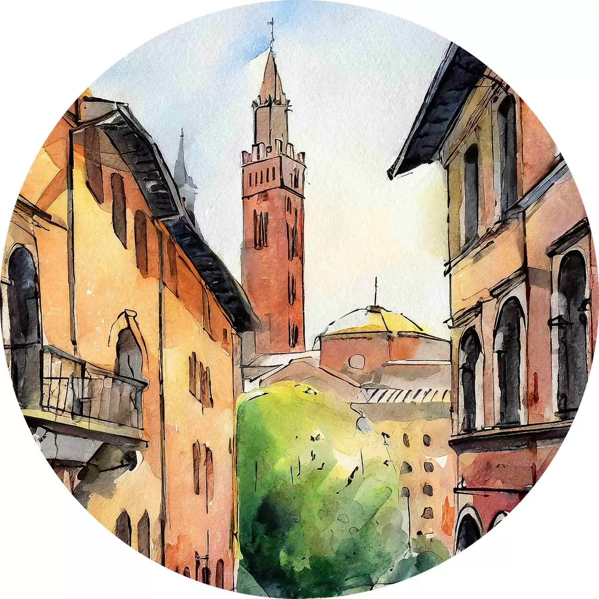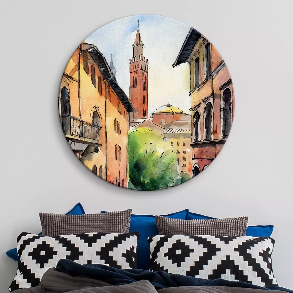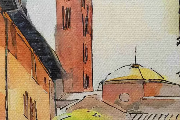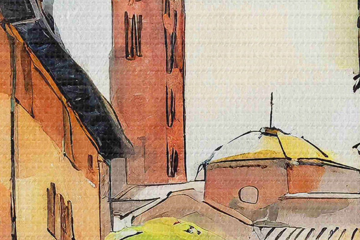 Nuotrauka Akvarele nutapytas gatvės su pastatais ir medžiais paveikslas Nr r36684
