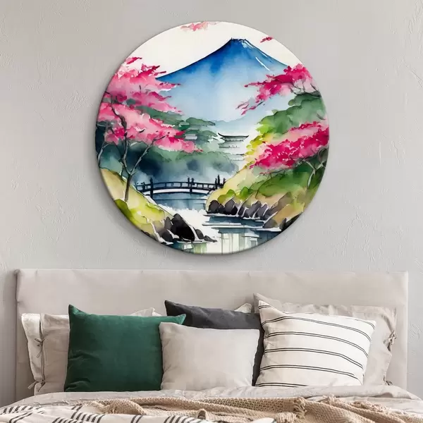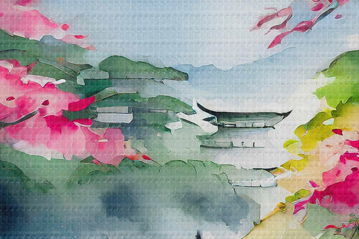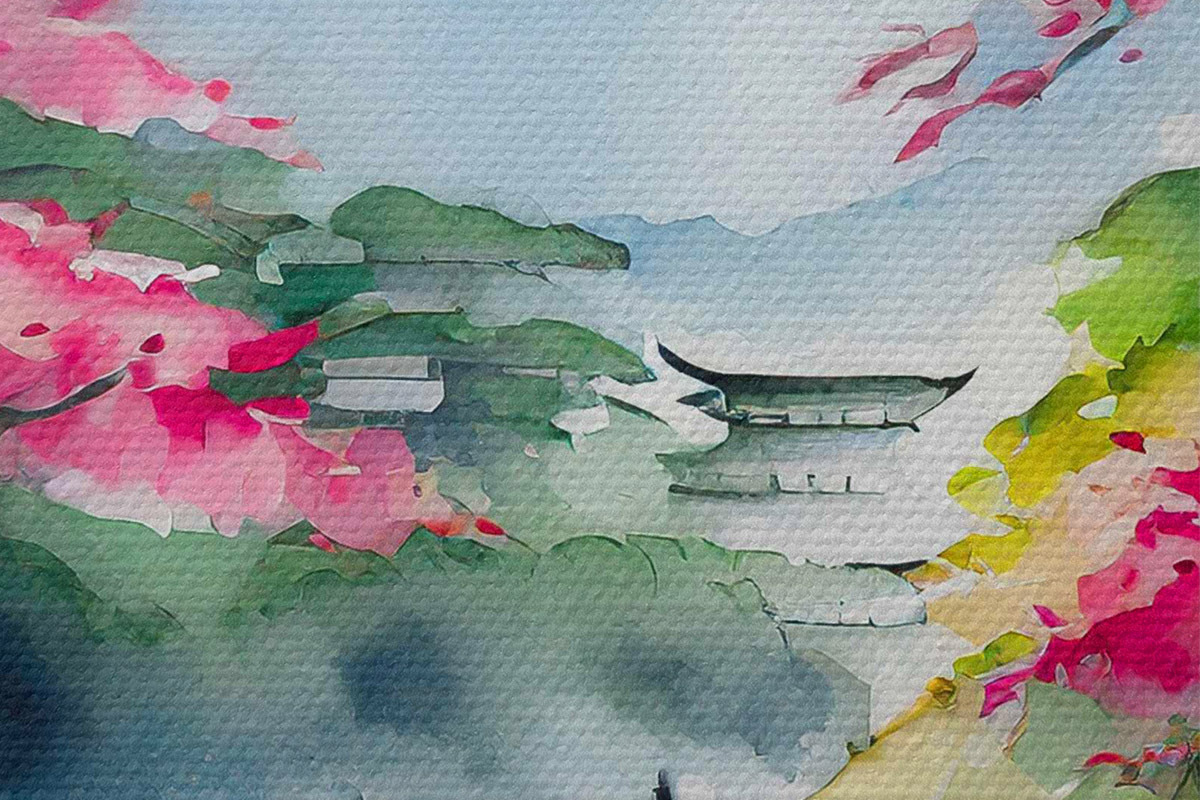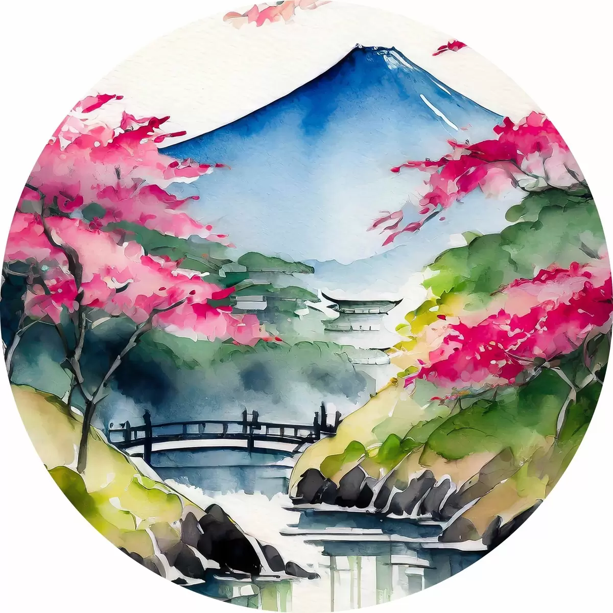 Nuotrauka Akvarelė Japonija, vyšnia, kalnai Nr r36691