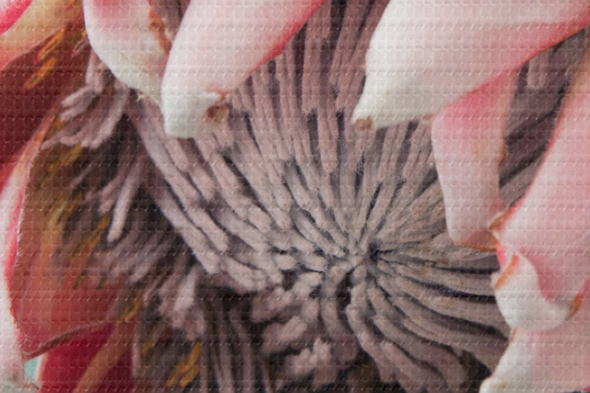 Galima užsakyti trijų rūšių medžiagą: "Economic Canvas" - tanki ir patvari medžiaga skaitmeninei spaudai, identiška dailininko drobės medžiagai, vandeniui atsparus paviršius, tikroviškas detalių atkūrimas, vidutinio grūdėtumo medžiaga. Premium Canvas - tekstūra primena dailininko drobę (susipynę smulkūs siūlai). Minkštas, detalus vaizdo atkūrimas ant matinio paviršiaus. Eco-Premium - aukštos kokybės 100 % medvilninis audinys. Dėl natūralių medvilnės pluoštų medžiaga yra patvari ir atspari nusidėvėjimui. Puikus spalvų atkūrimas ir detalumas.