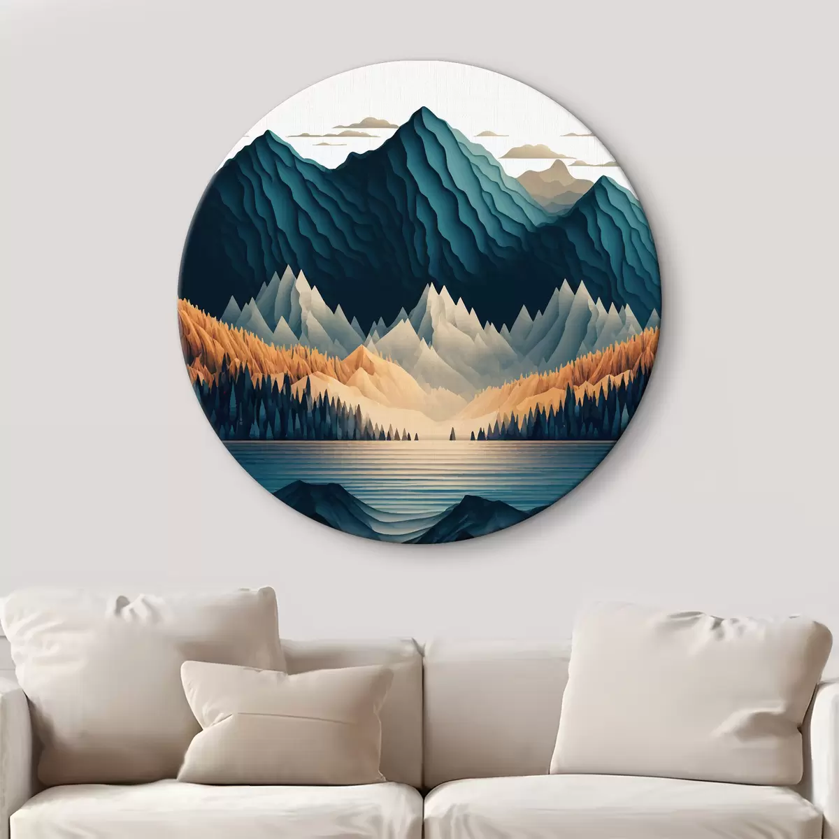 Nuotrauka Kalnų masyvas su medžiais ir ežeru Nr r36697