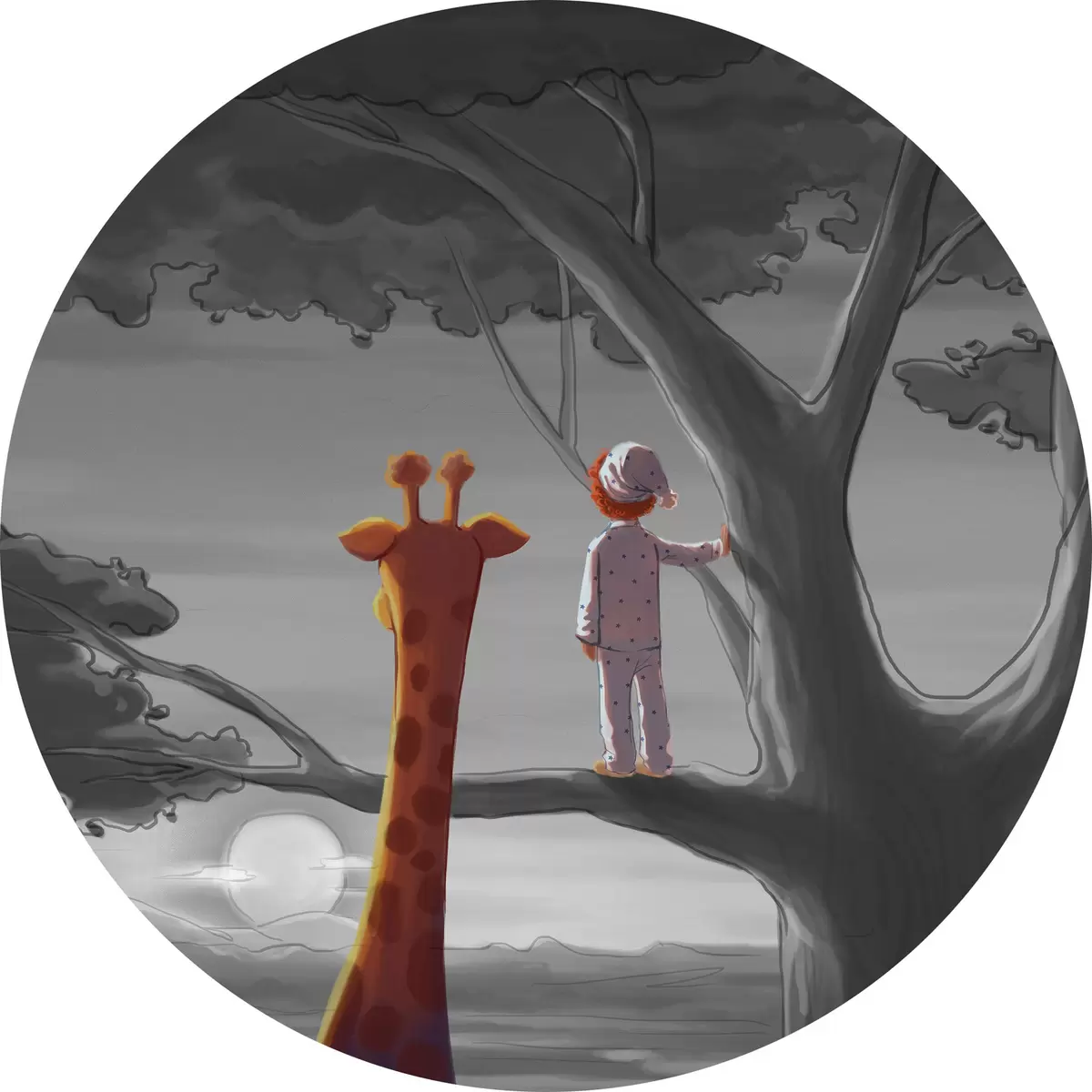 Nuotrauka Žirafa ir kūdikis stovi ant medžio Nr r36700