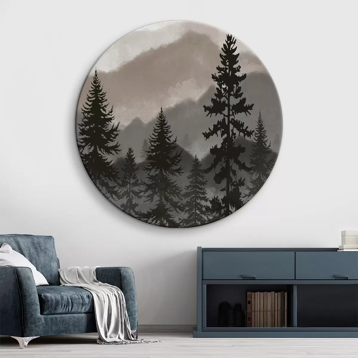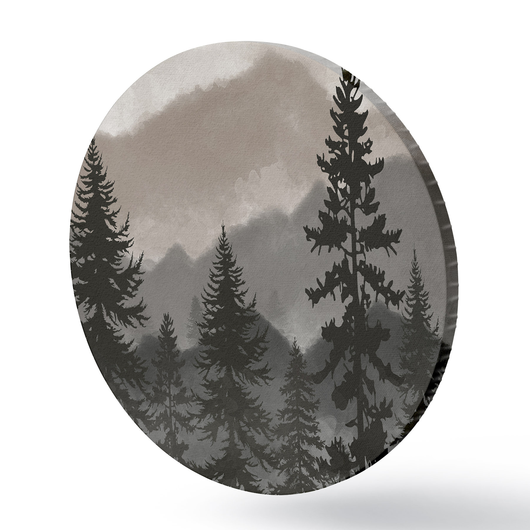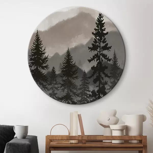 Apvalūs paveikslai Akvarele tapytas kalnų kraštovaizdis su eglėmis r37017v1