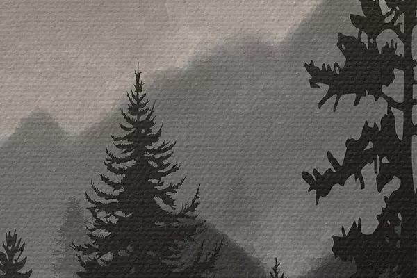 Nuotrauka Akvarele tapytas kalnų kraštovaizdis su eglėmis Nr r37017v1