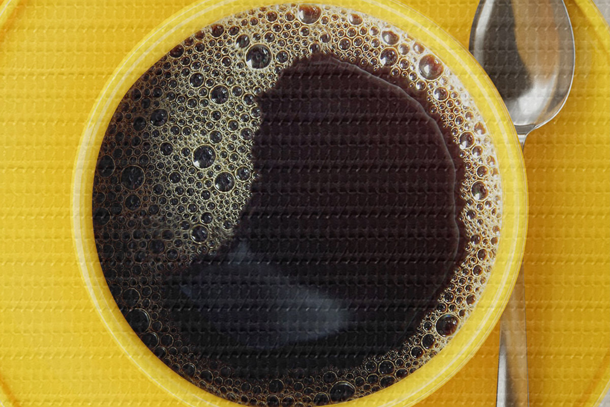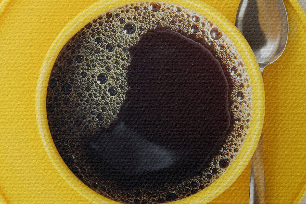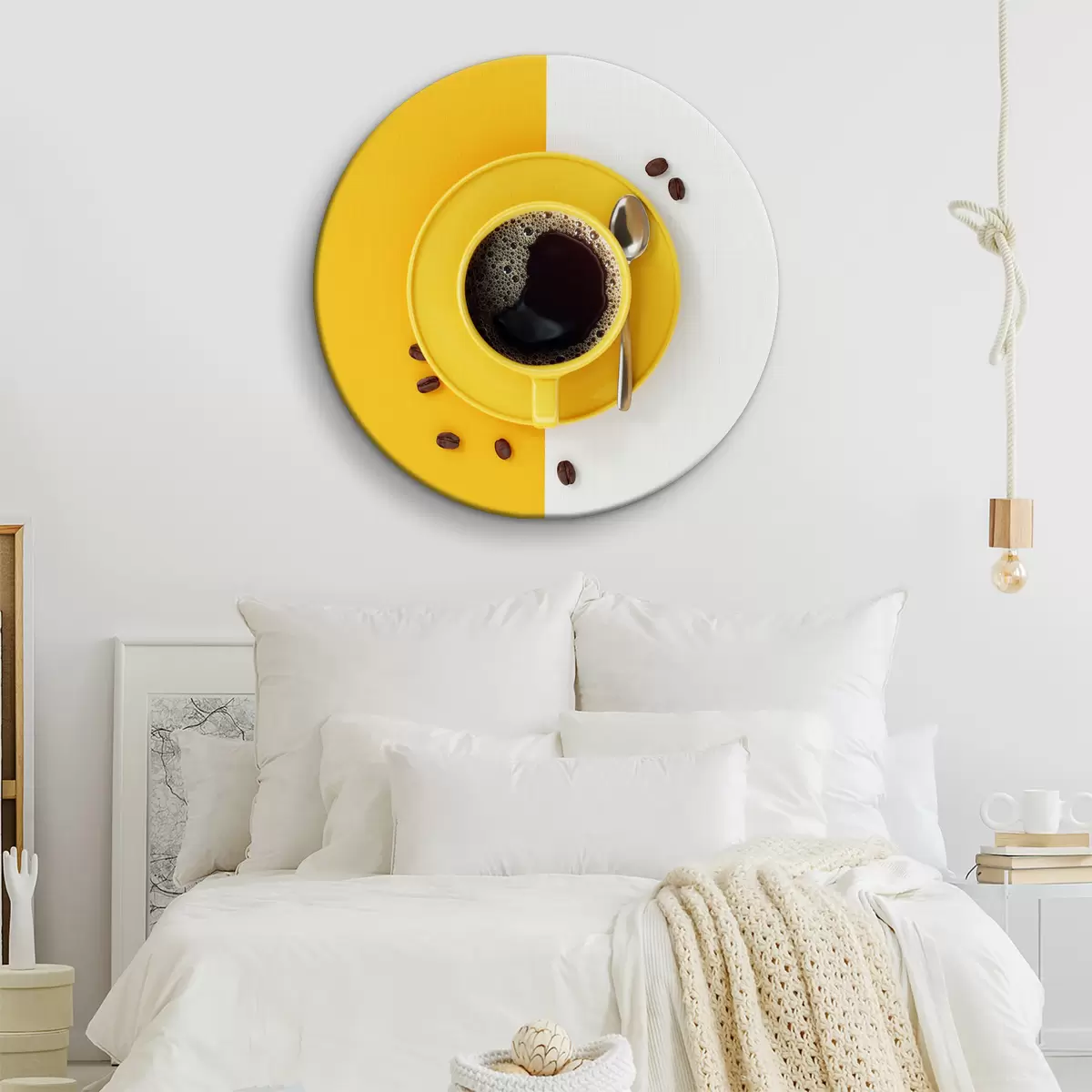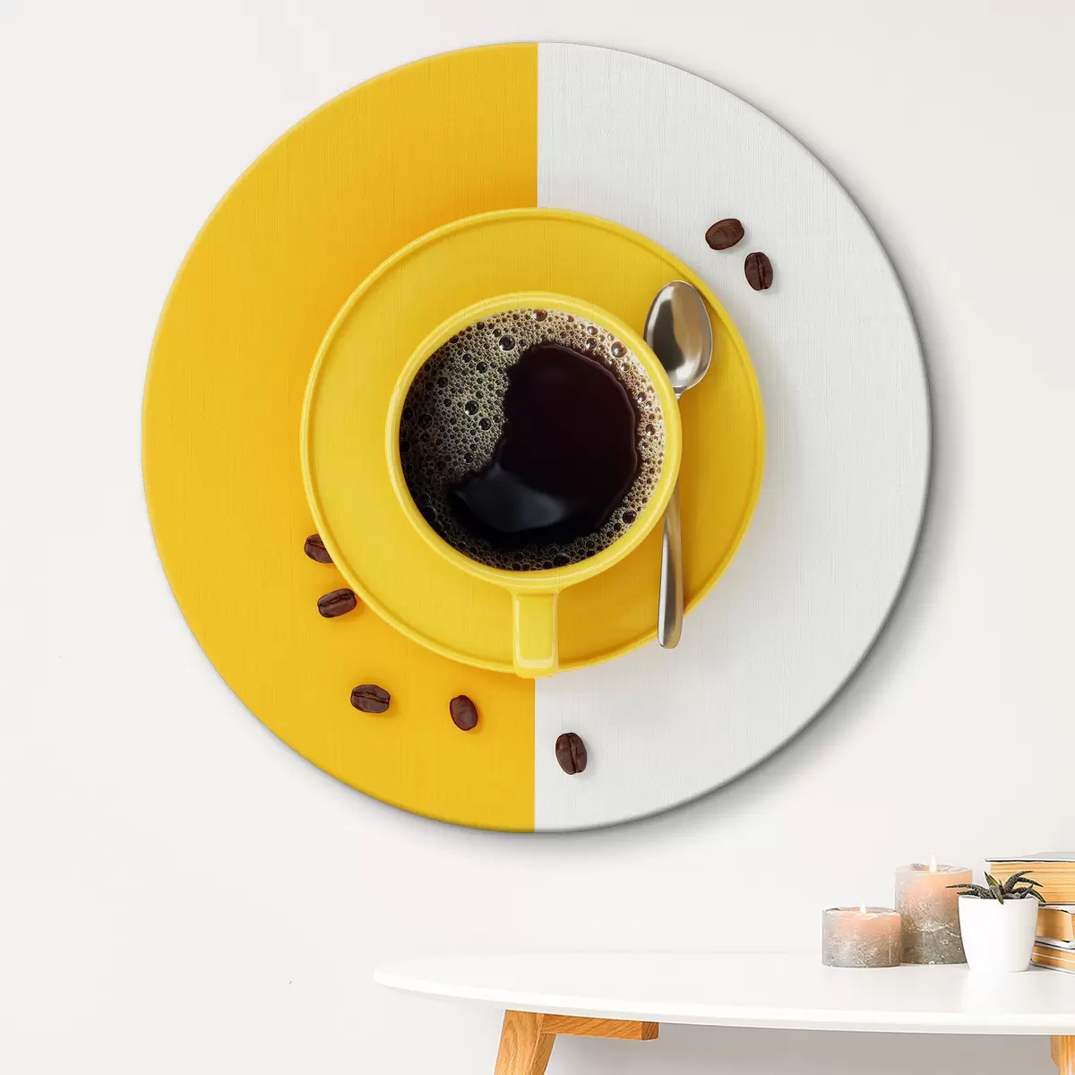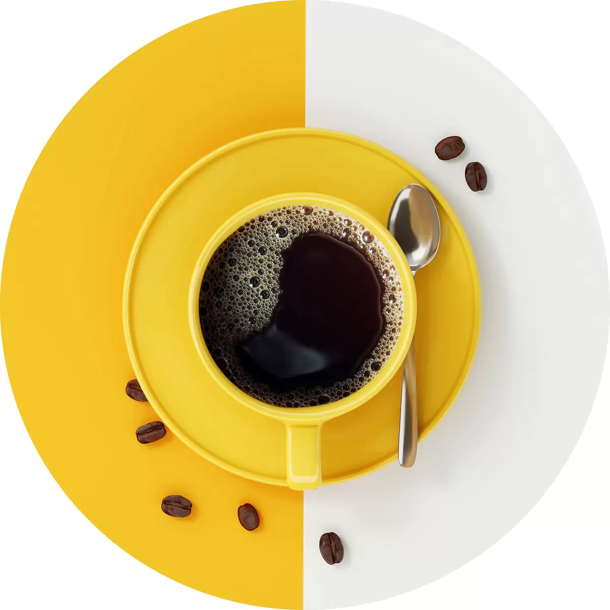 Nuotrauka Geltonas puodelis su kava ir pupelėmis Nr r37041
