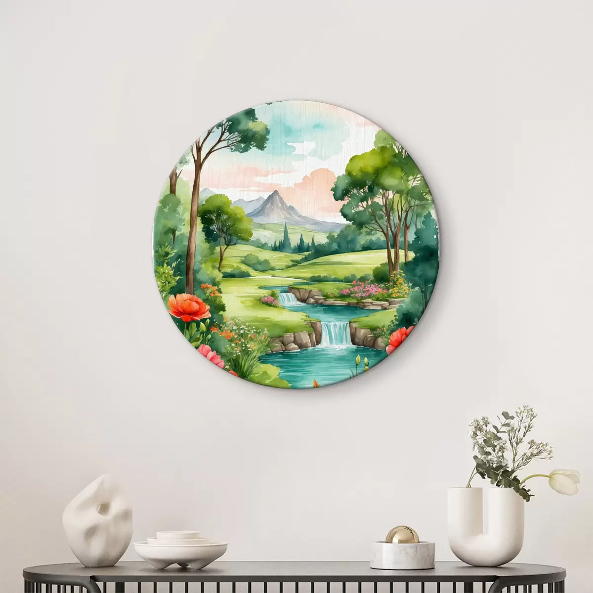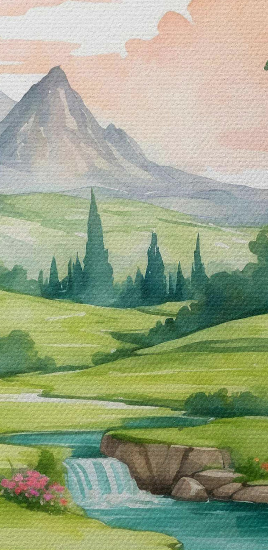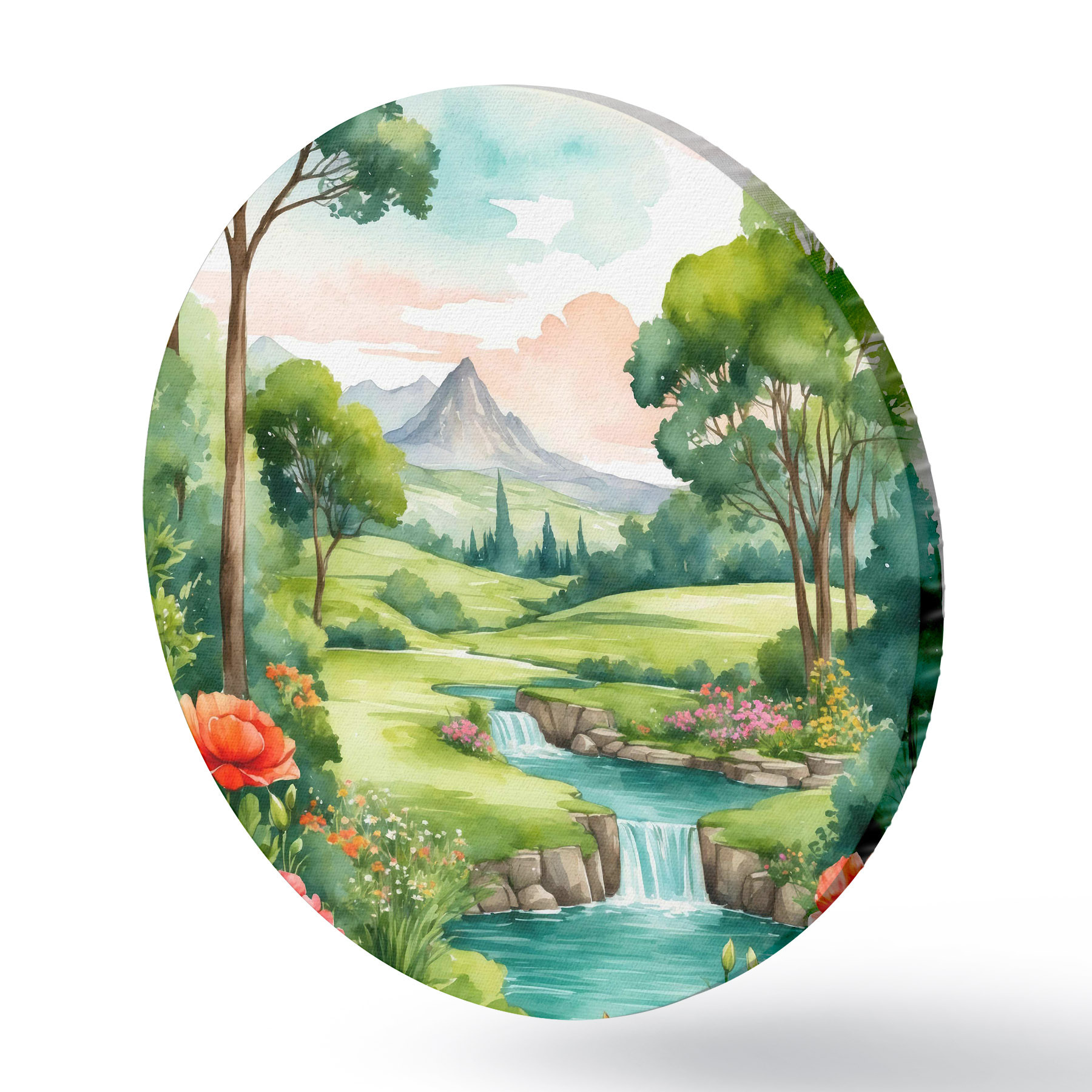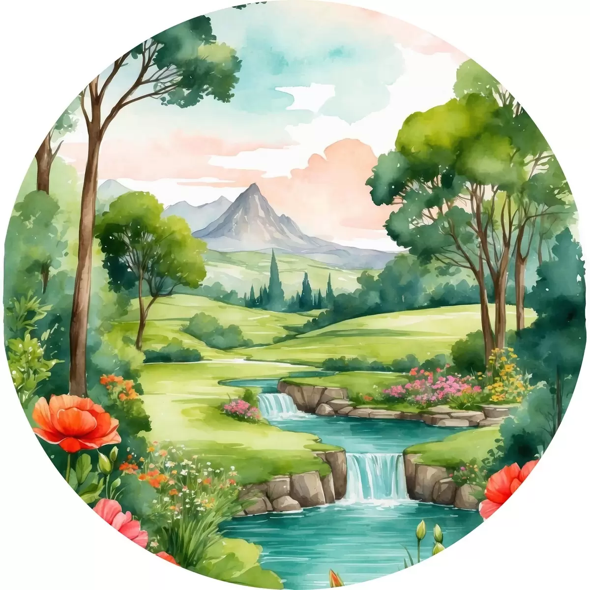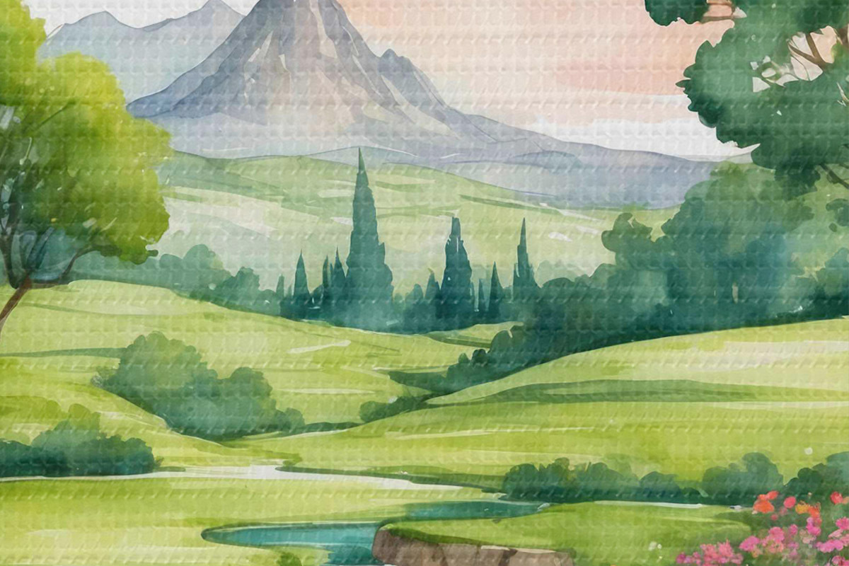 Nuotrauka Akvarelė, vaizduojanti upę ir gėles Nr r37116