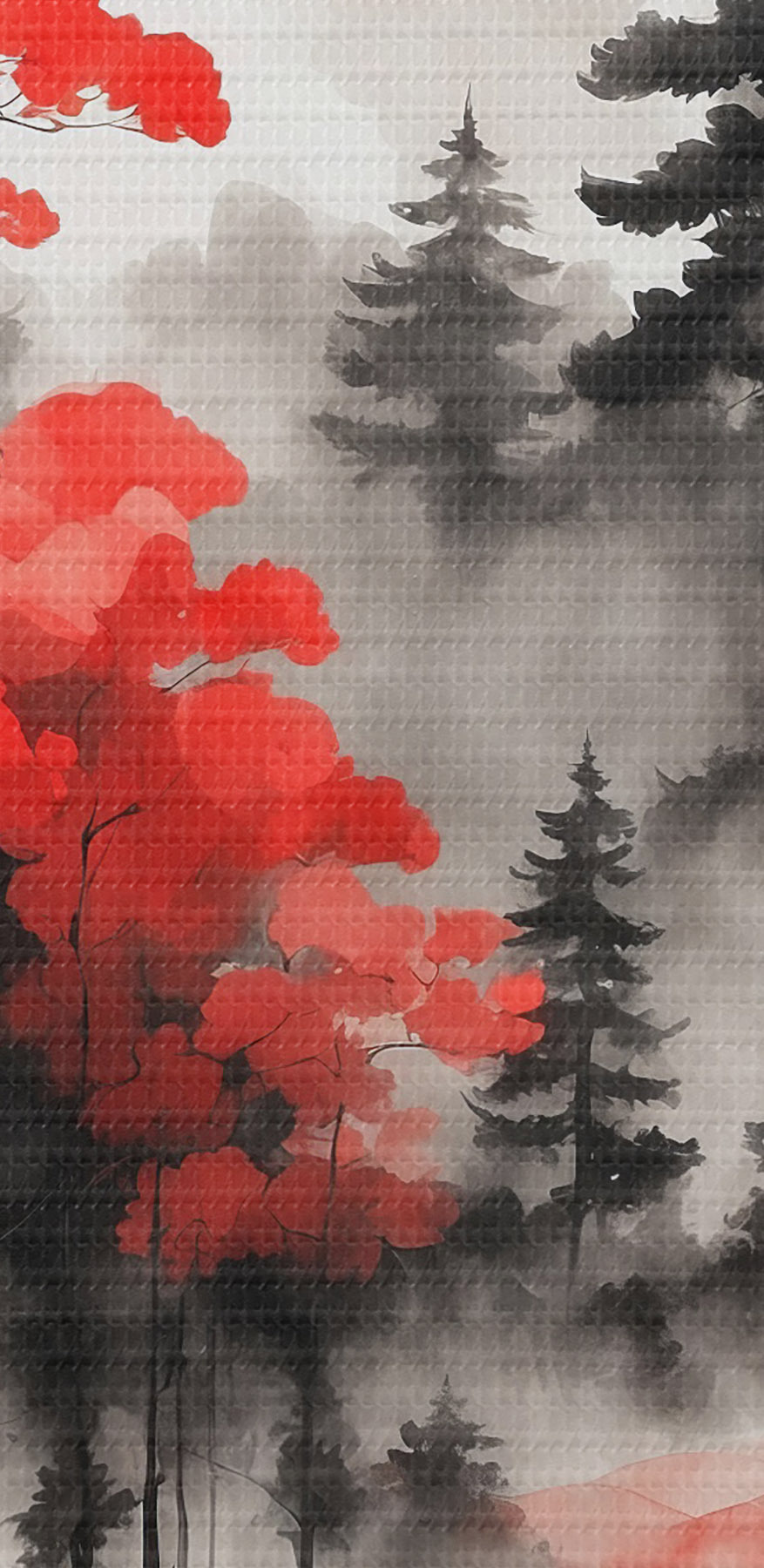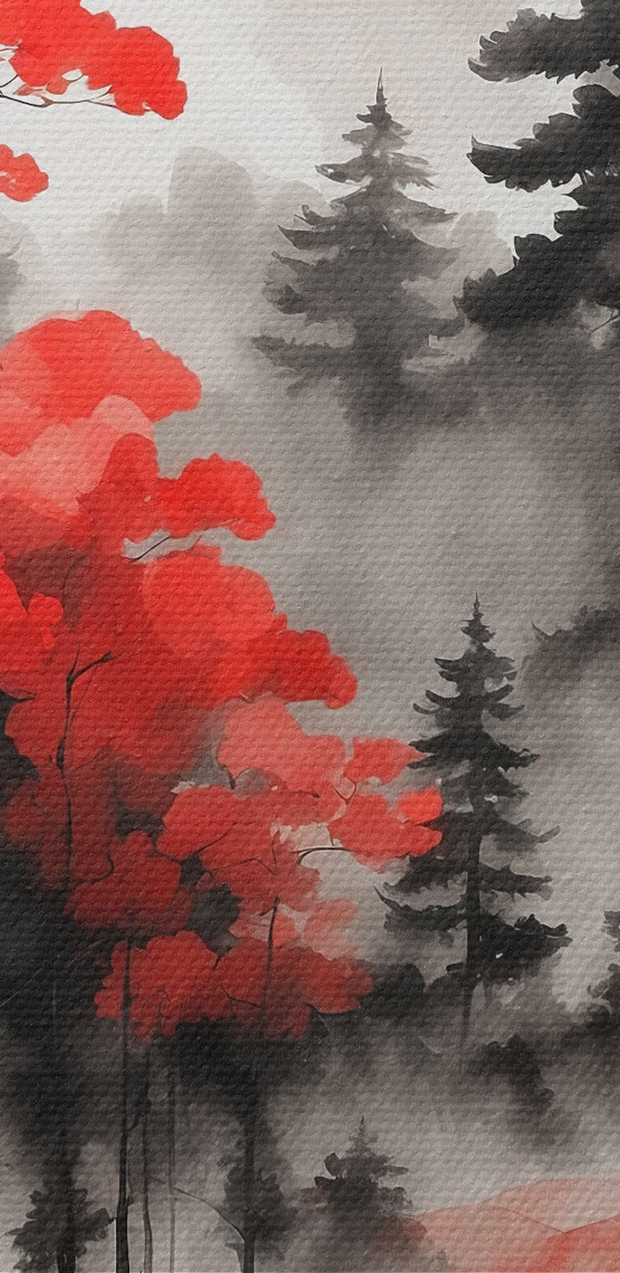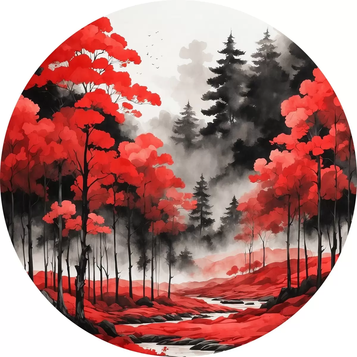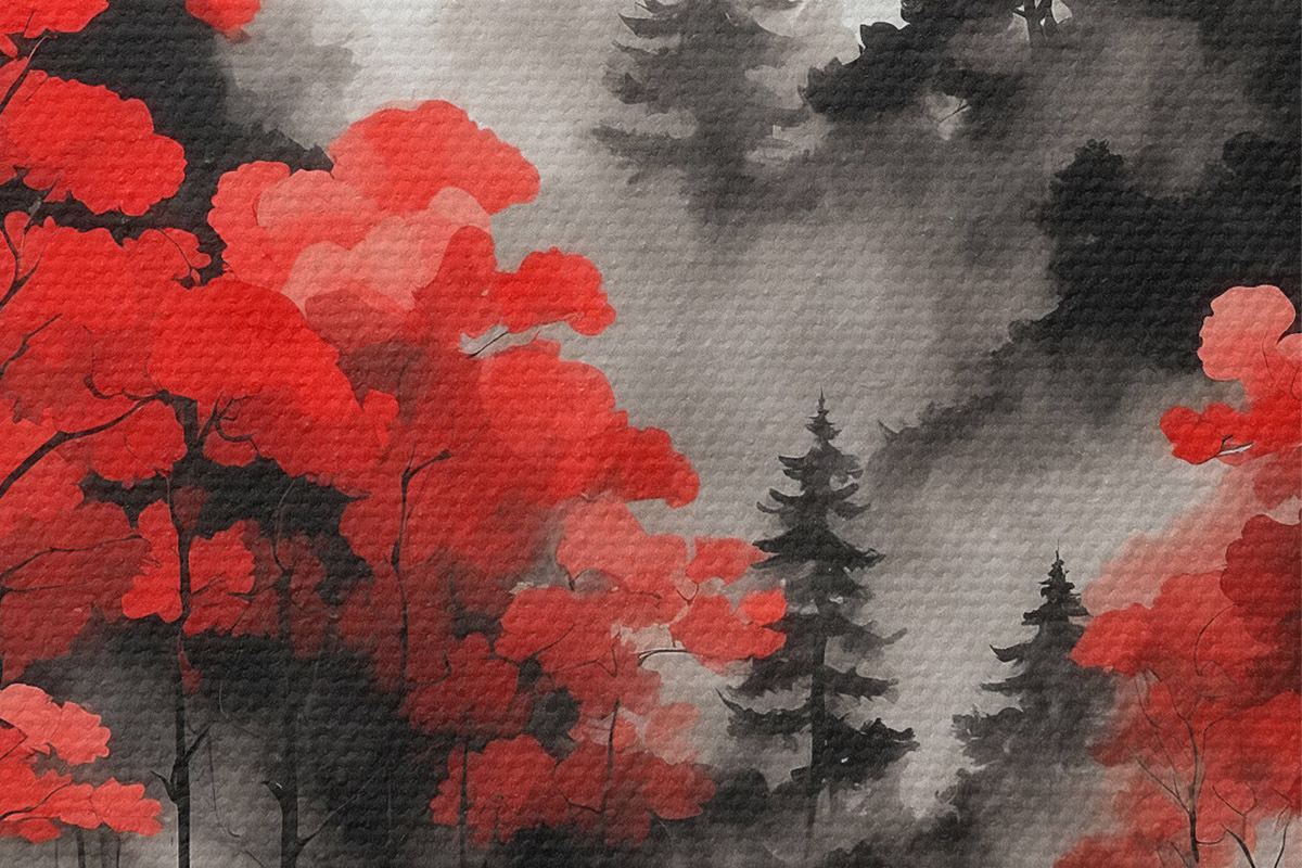 Nuotrauka Juodai raudonas miškas akvarele Nr r37122