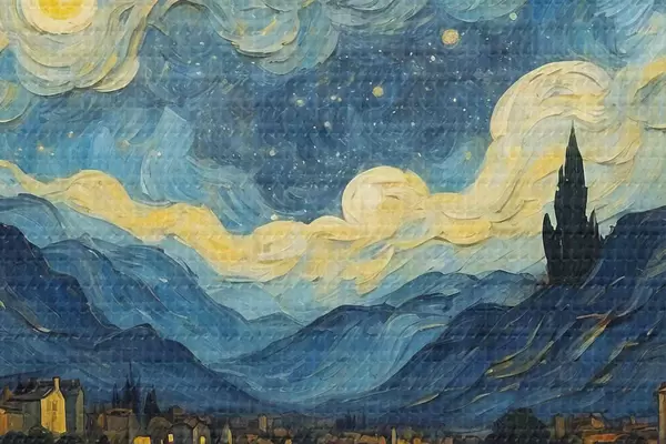 Nuotrauka Naktinis peizažas aliejiniais dažais Nr r37123