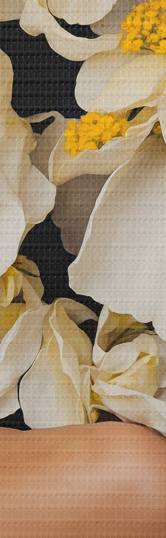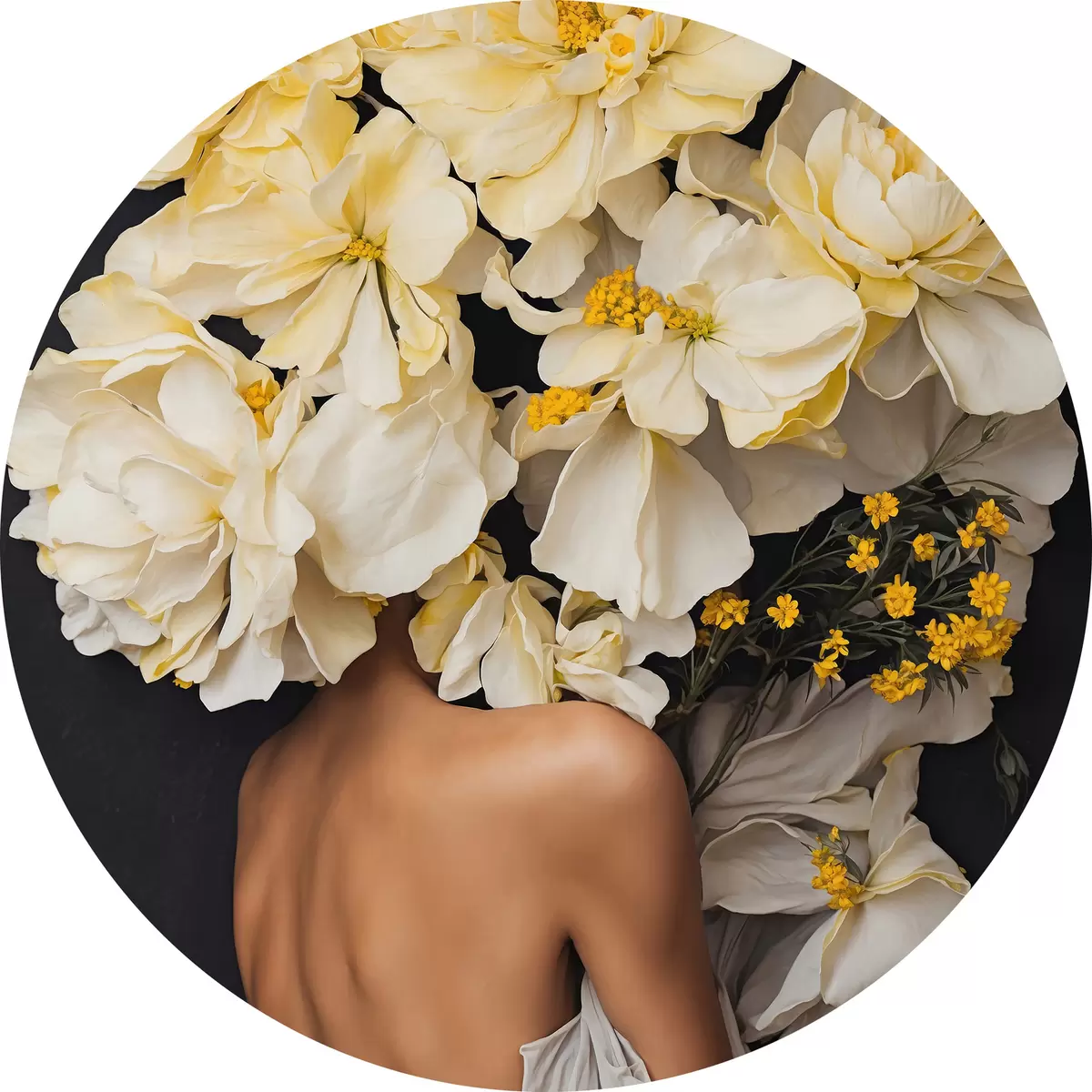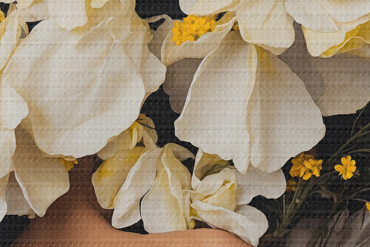 Nuotrauka Moteris su geltonomis gėlėmis juodame fone Nr r37162