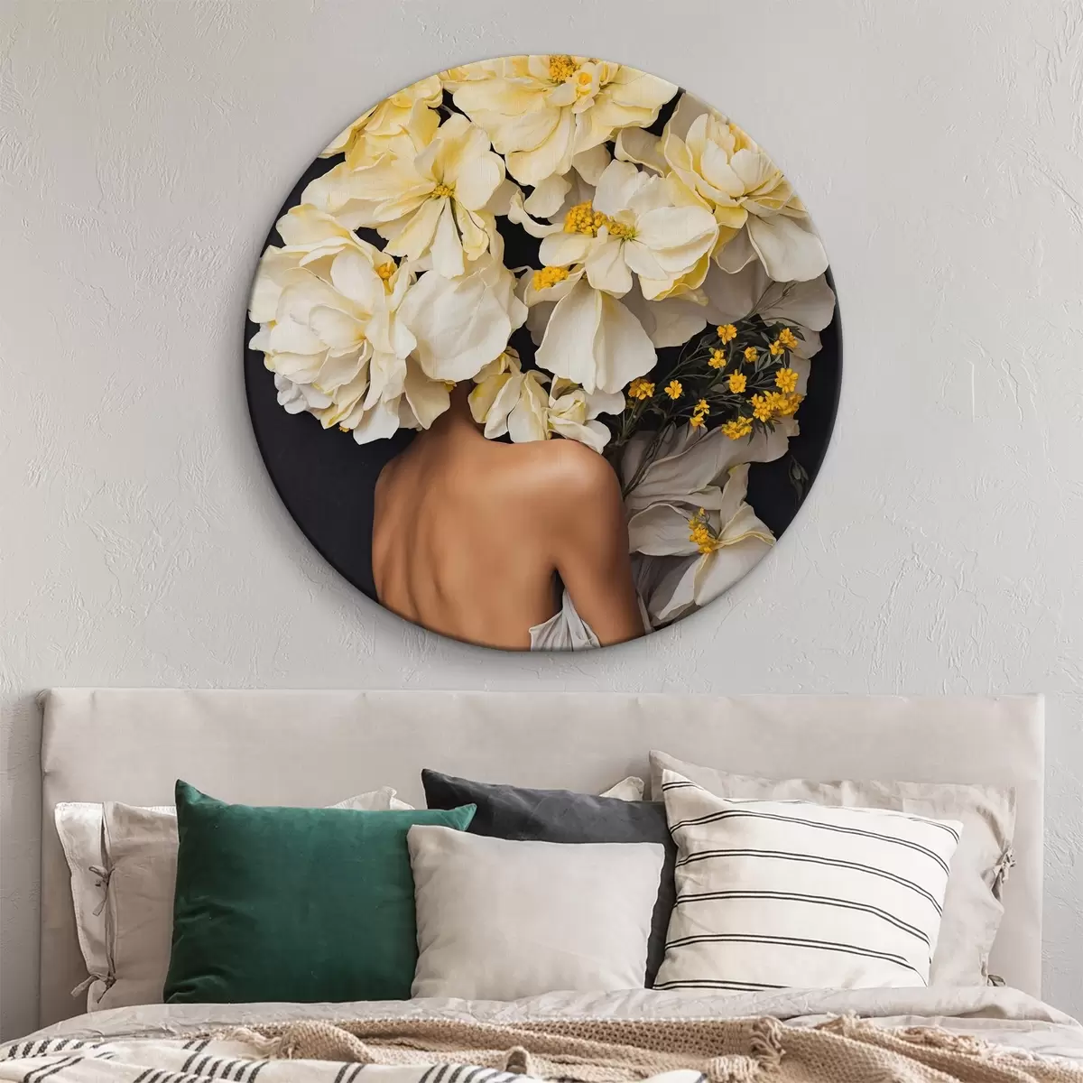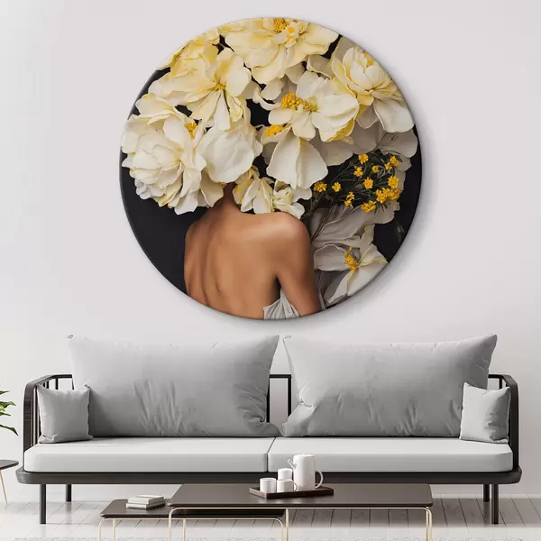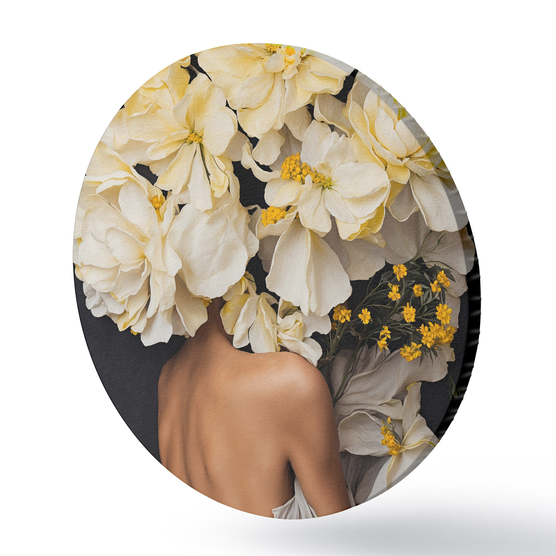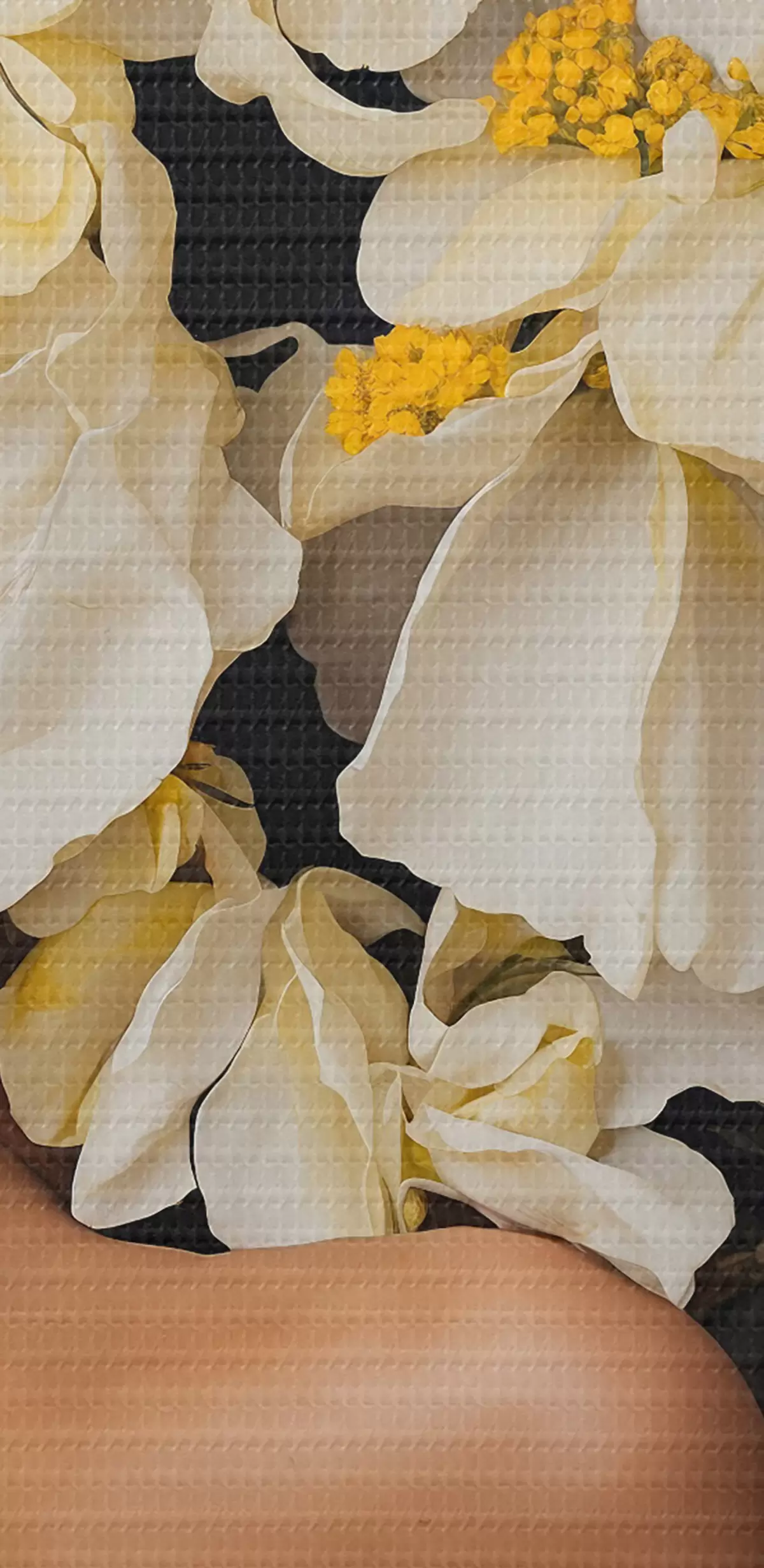 Nuotrauka Moteris su geltonomis gėlėmis juodame fone Nr r37162