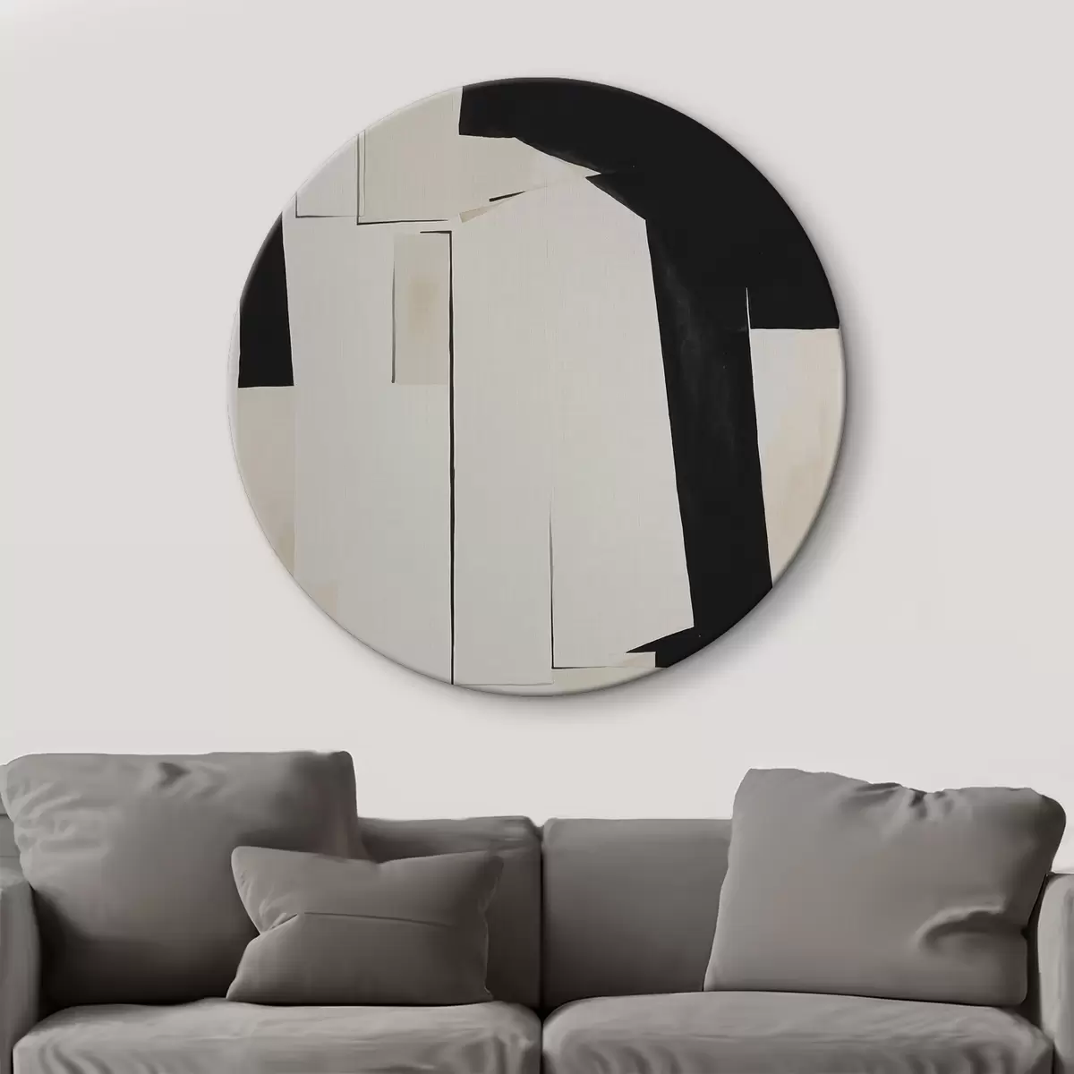 Apvalūs paveikslai Juodai balta akvarelės abstrakcija r37169