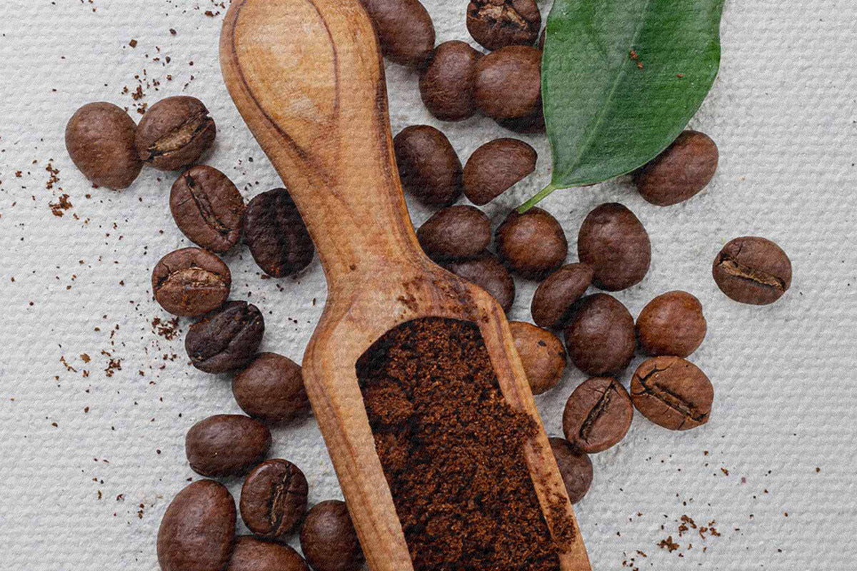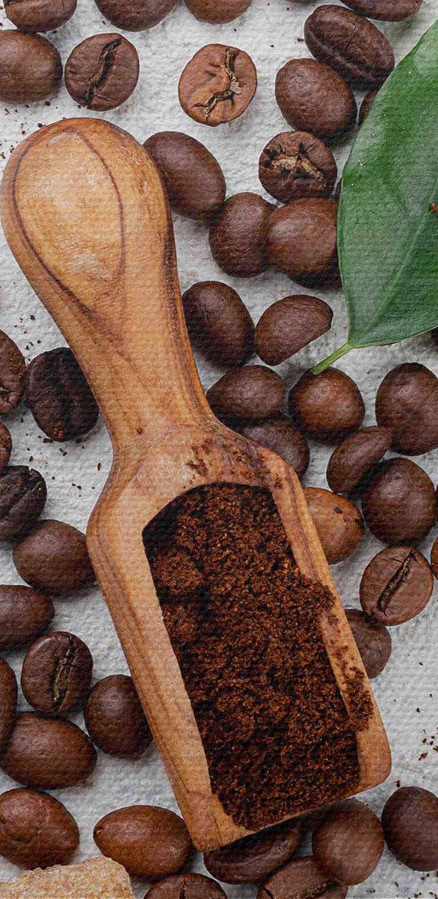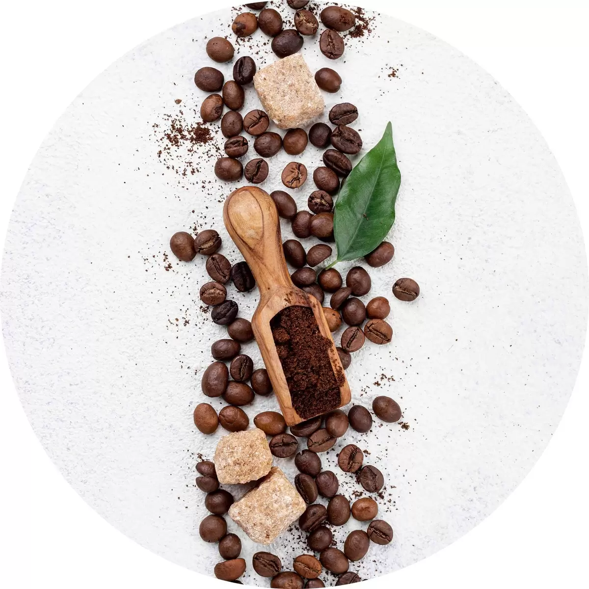 Nuotrauka Šaukštas su kavos pupelėmis ir cukrumi ant viršaus Nr r37178