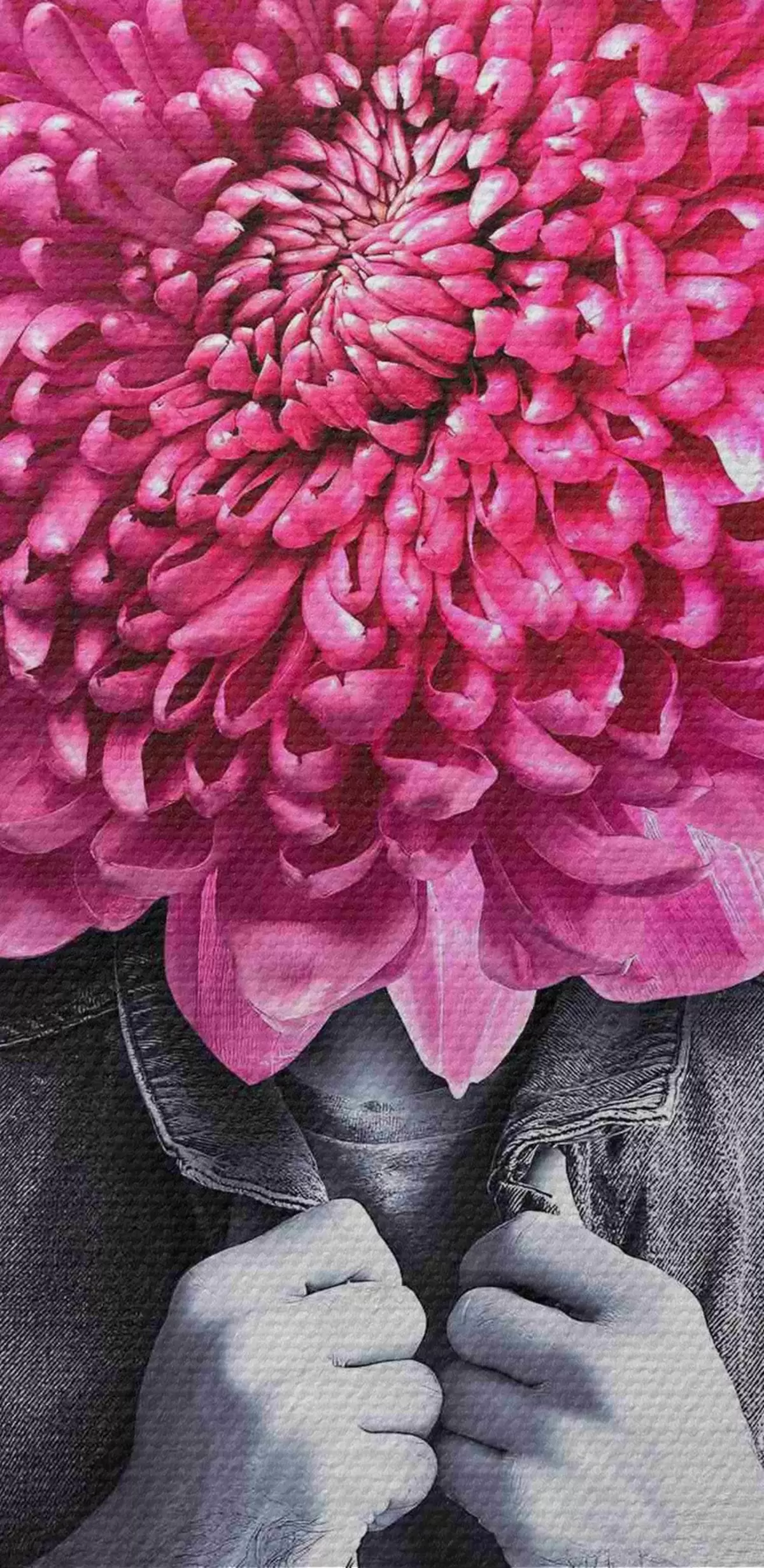 Nuotrauka Asmuo su gėlės galva Nr r37294