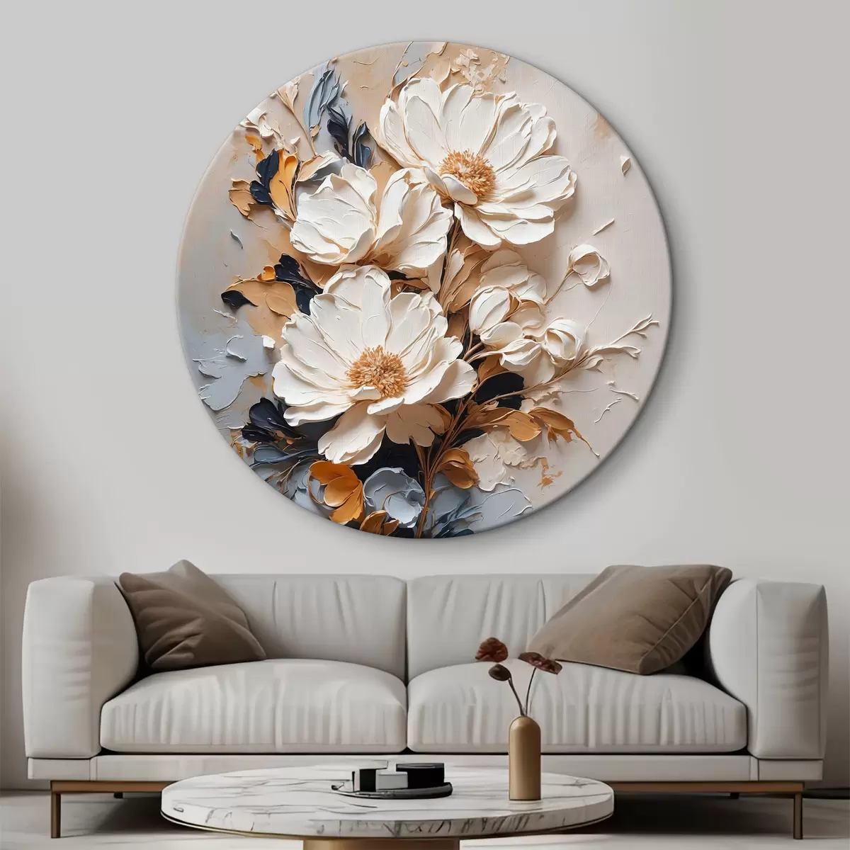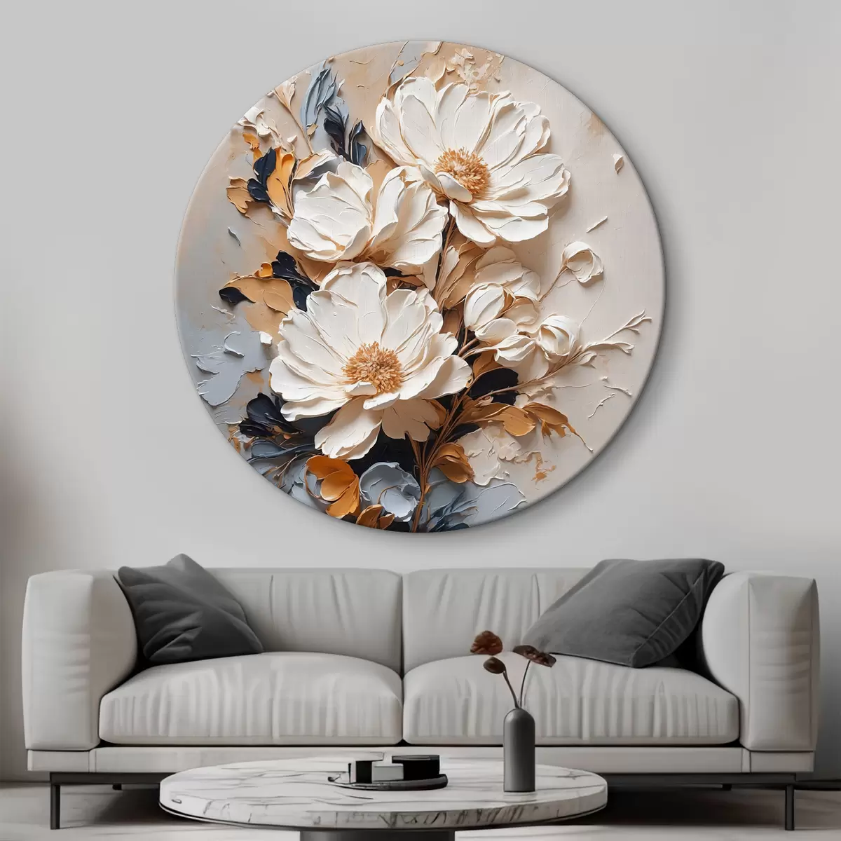 Apvalūs paveikslai Baltos gėlės aliejuje r37327