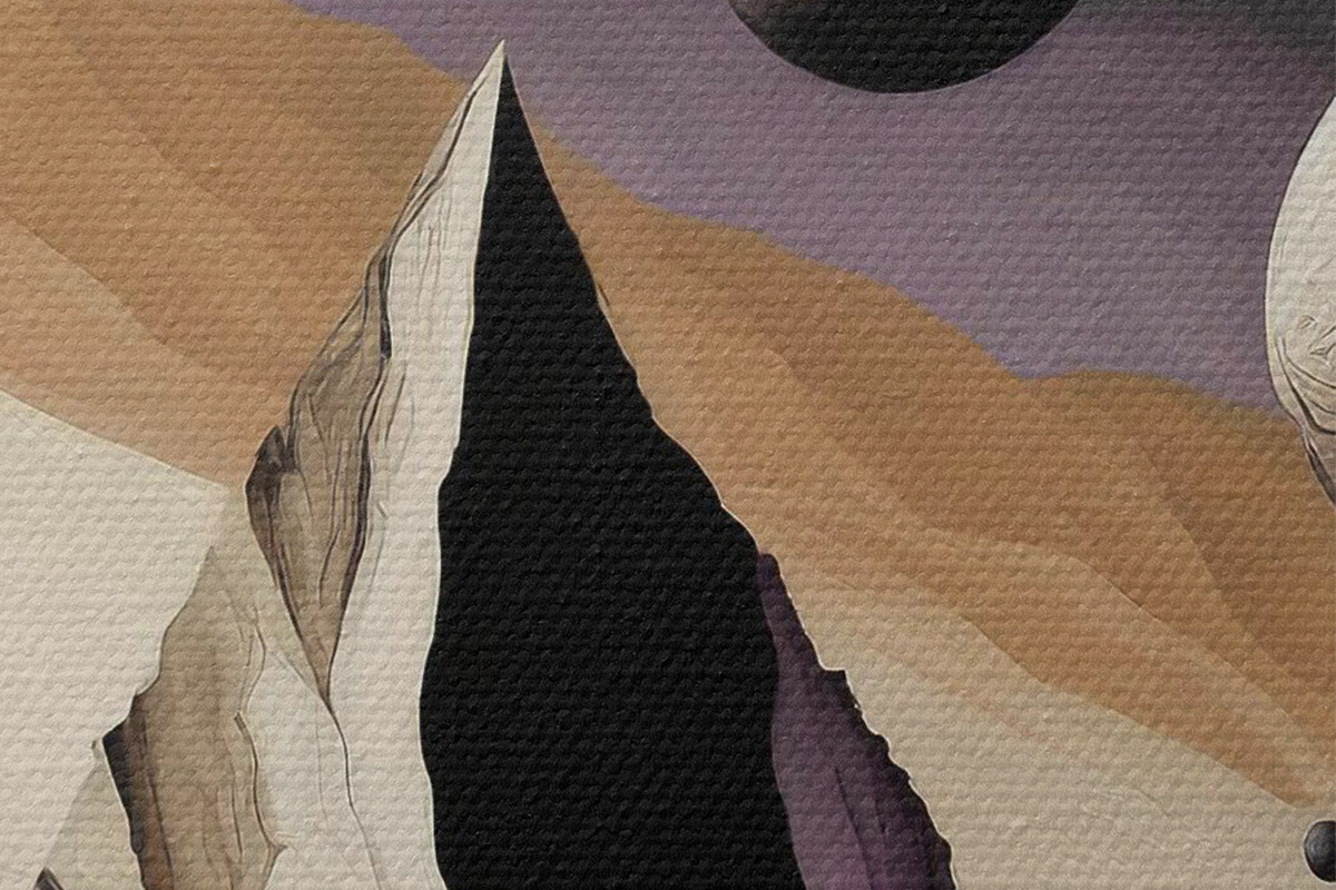 Nuotrauka Abstraktus menas, dykuma, kalnai ir uolos, violetinė ir smėlio spalvos, erdvė Nr r37362