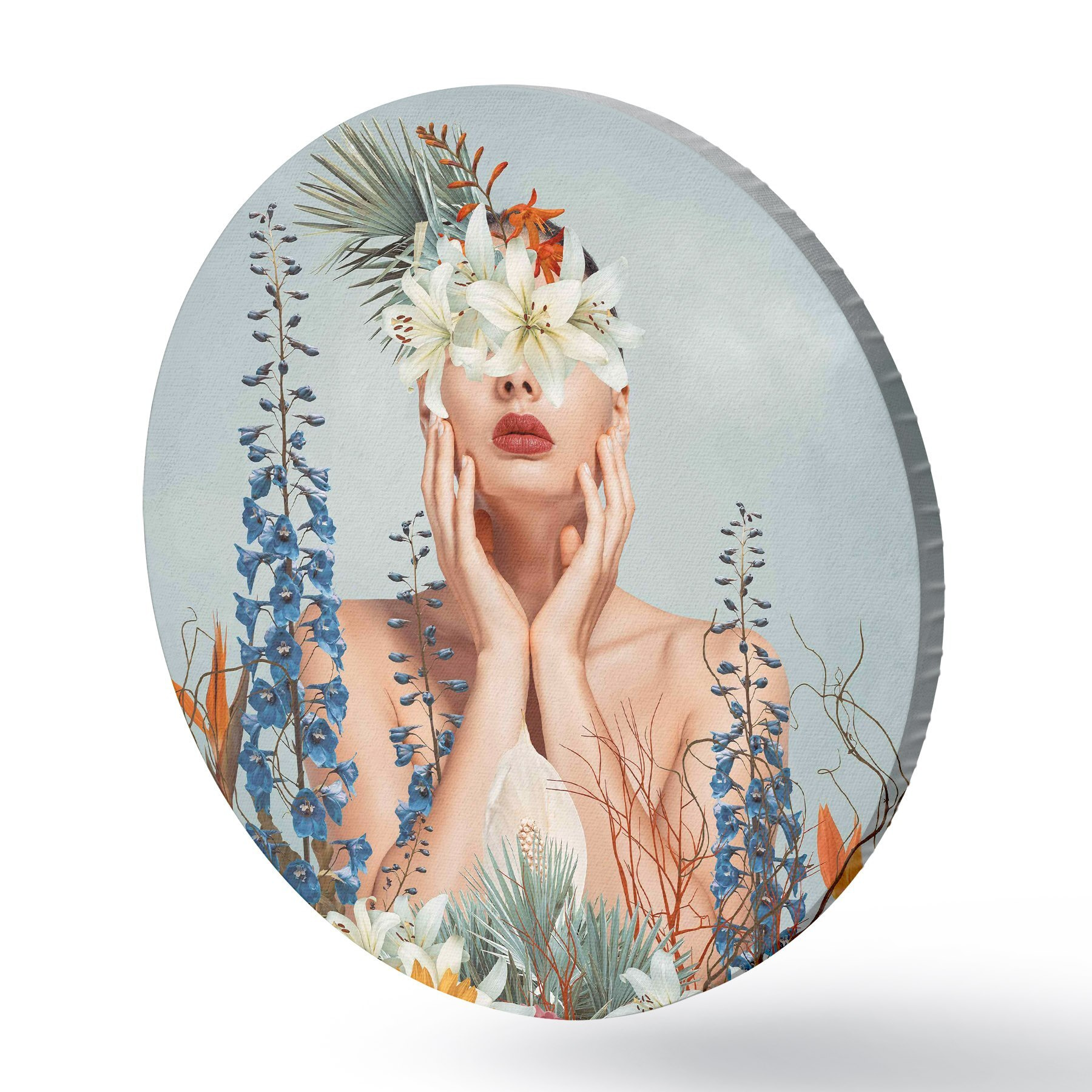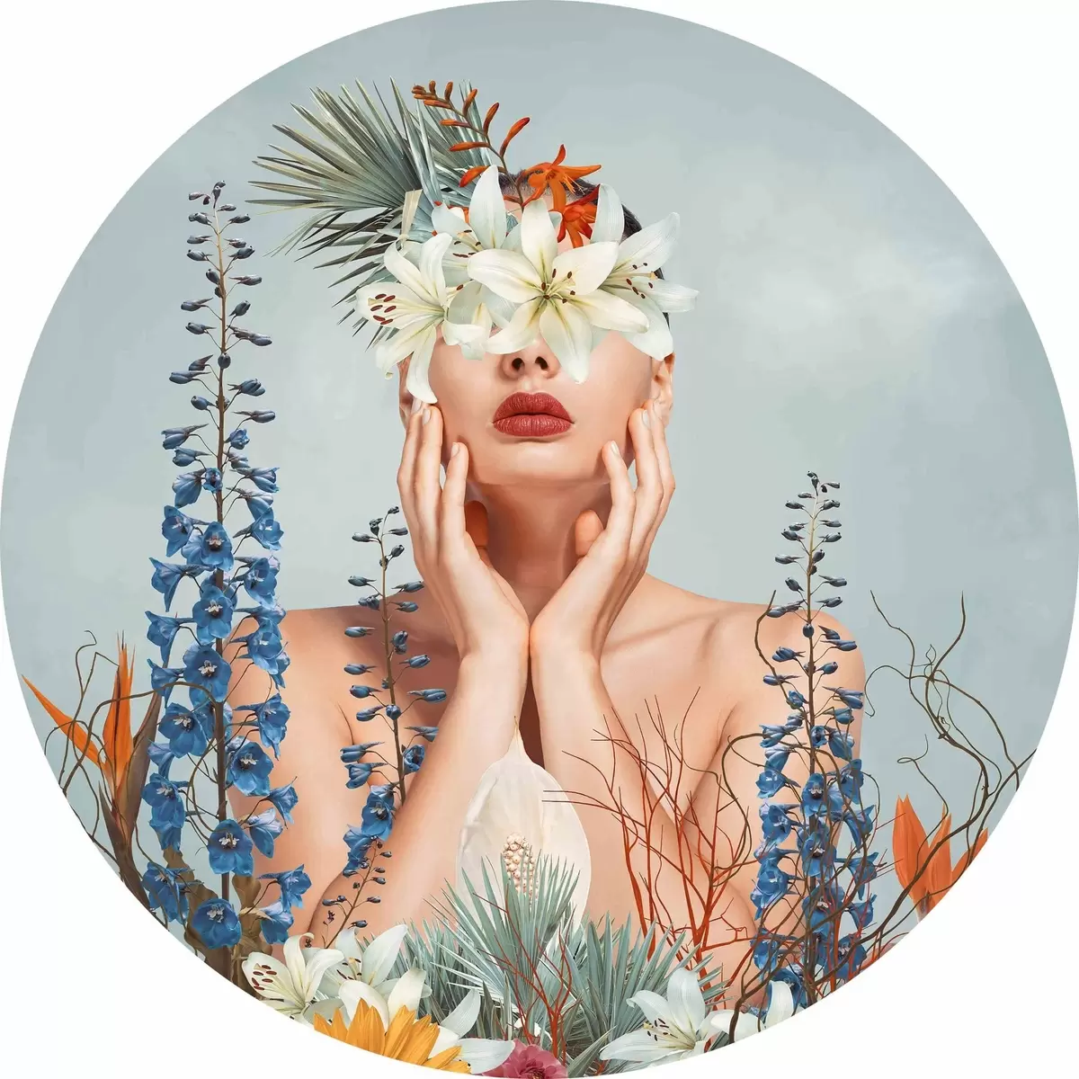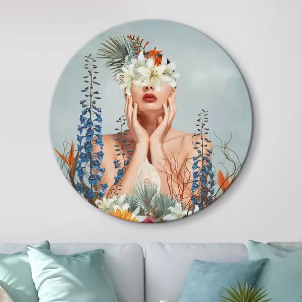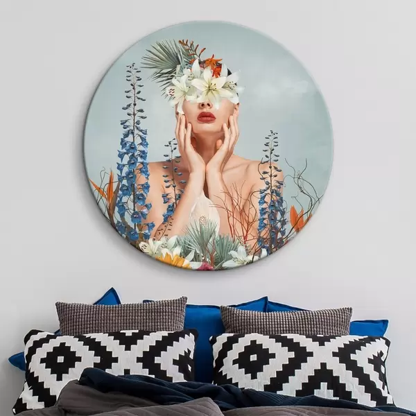 Nuotrauka Moteris su gėlėmis aplink veidą Nr r37477