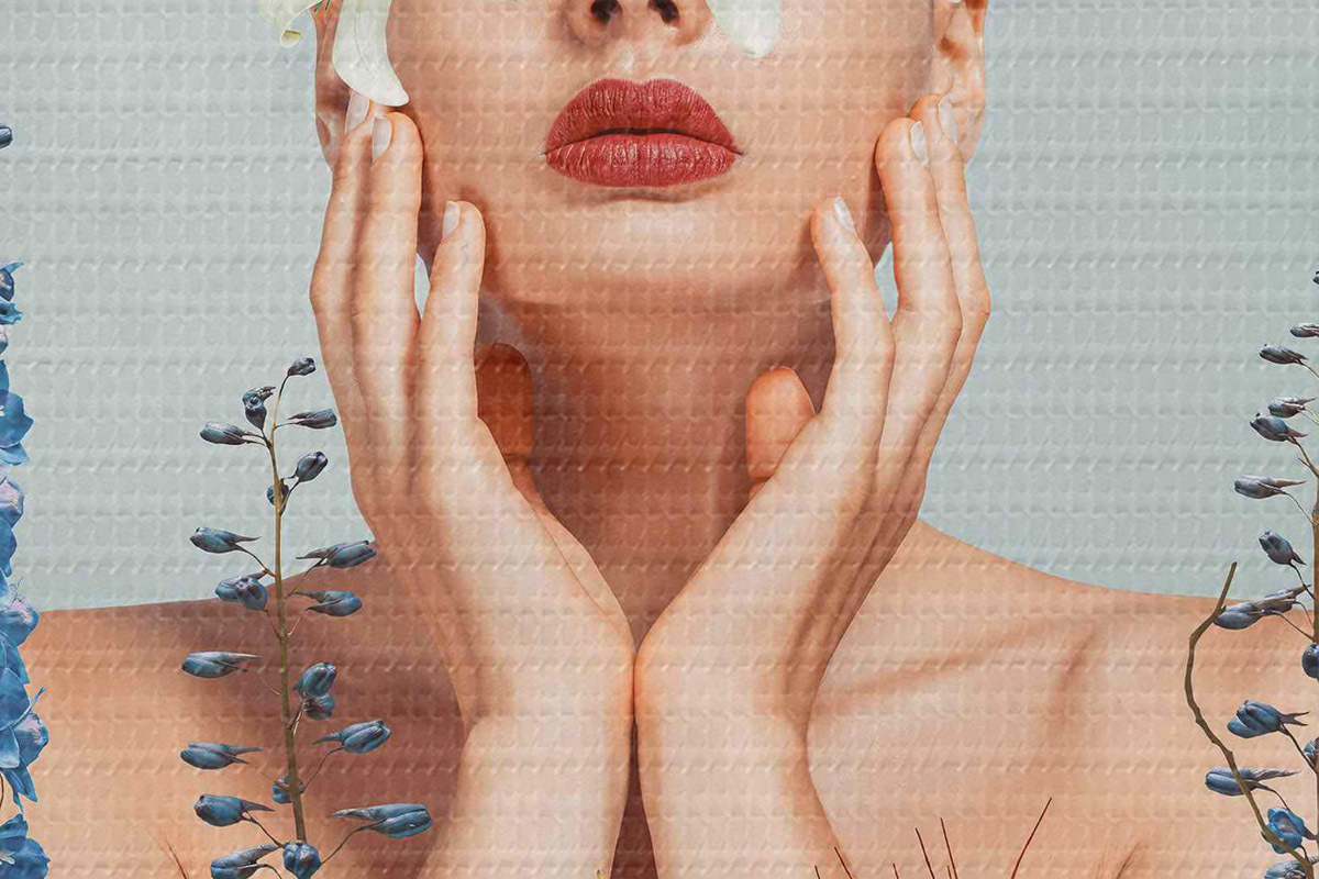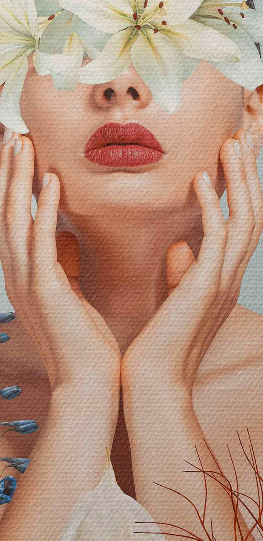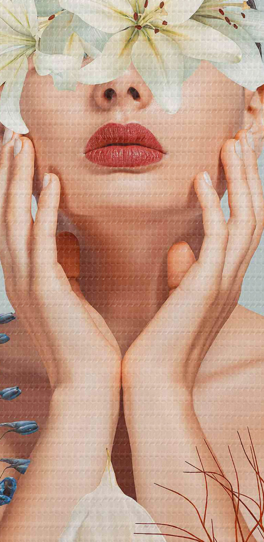 Nuotrauka Moteris su gėlėmis aplink veidą Nr r37477