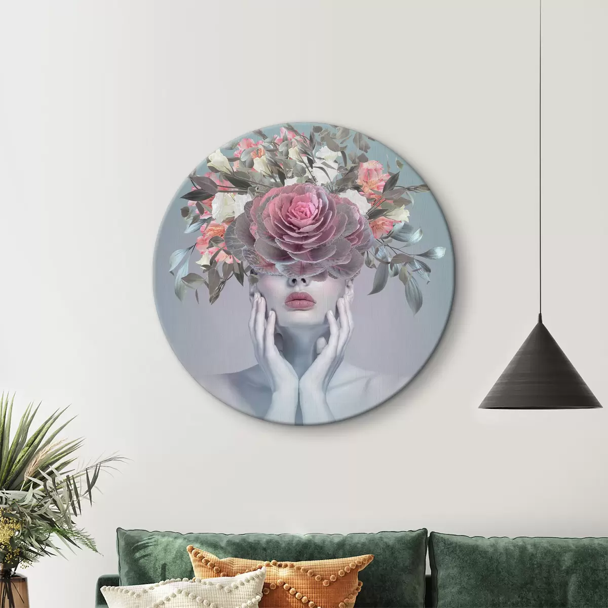 Apvalūs paveikslai Moteris su gėlėmis ant galvos r37479