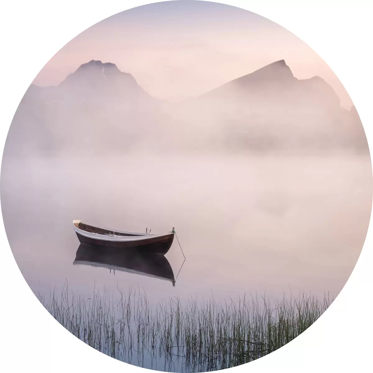 Nuotrauka Valtis ežere su žole ir kalnais fone Nr r37622