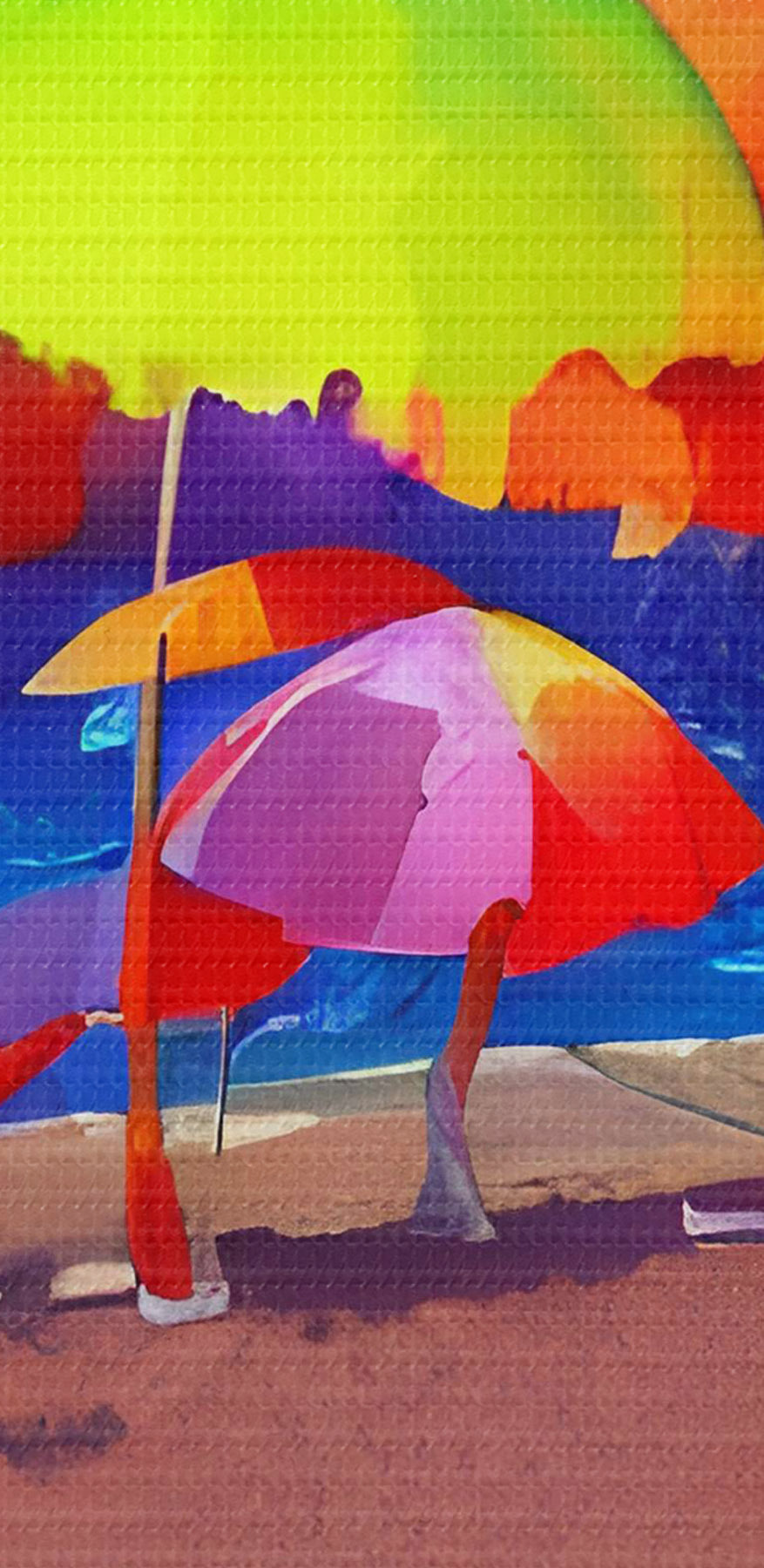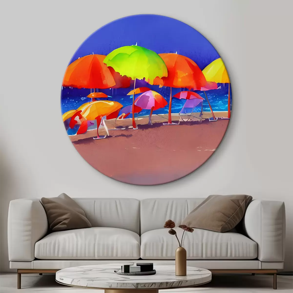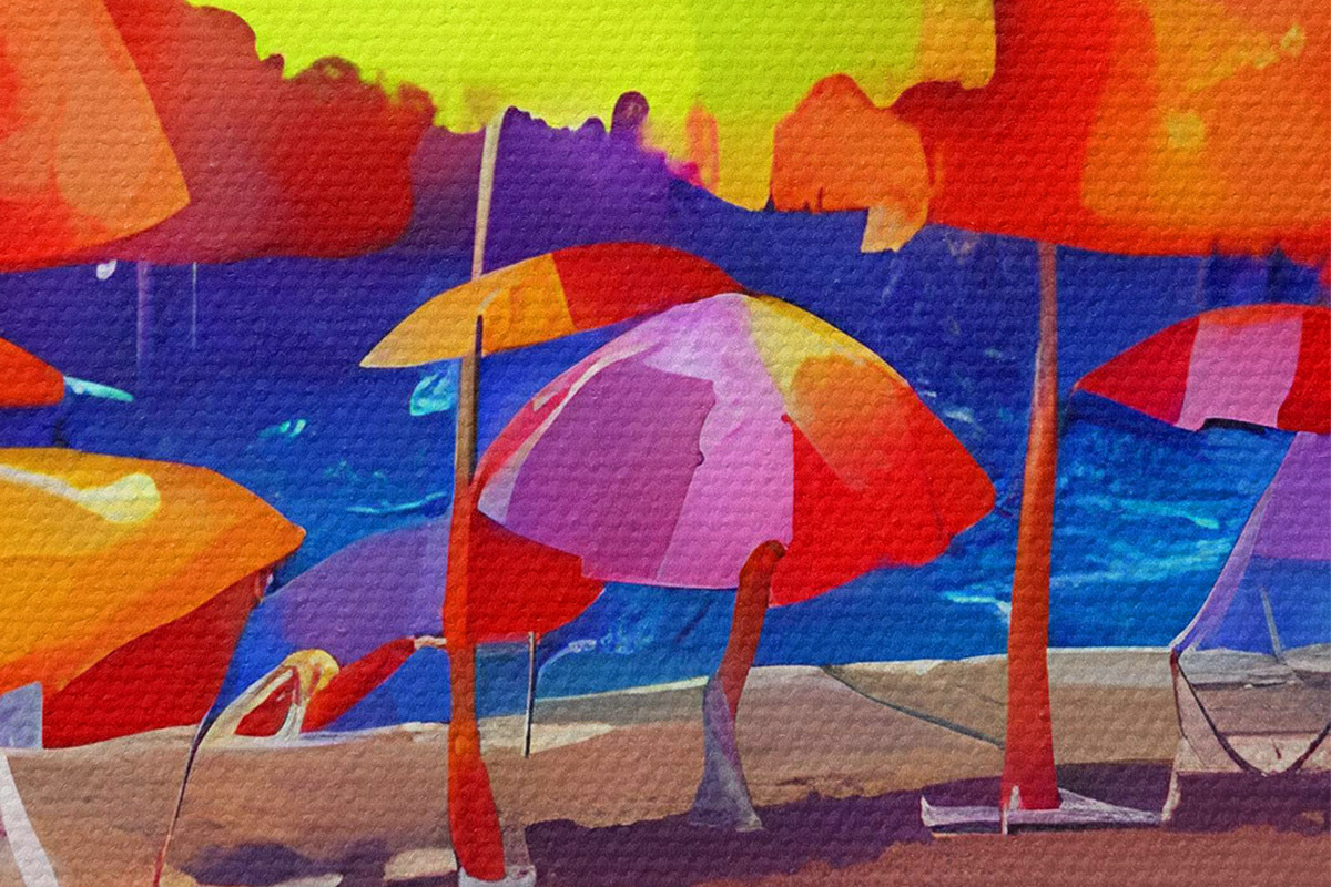 Nuotrauka Spalvingų skėčių grupė paplūdimyje Nr r37626