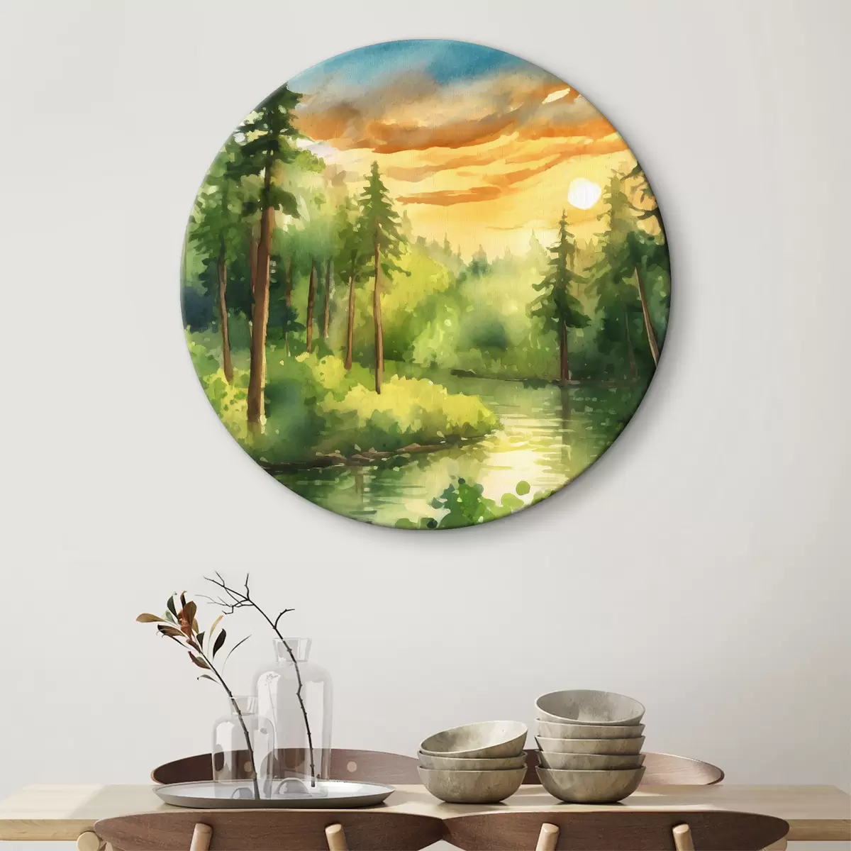 Apvalūs paveikslai Ramus miškas prie ramios upės r37950