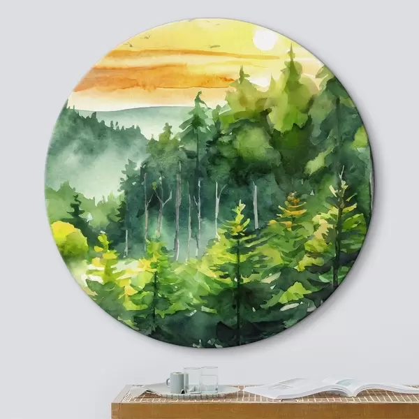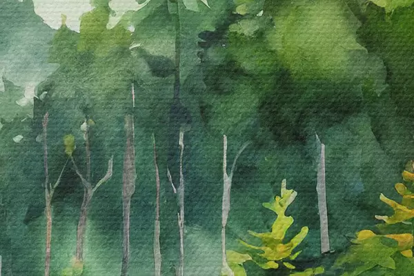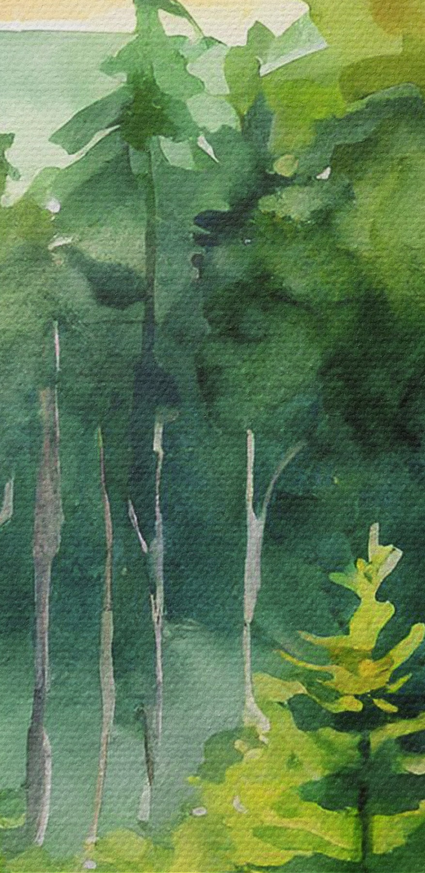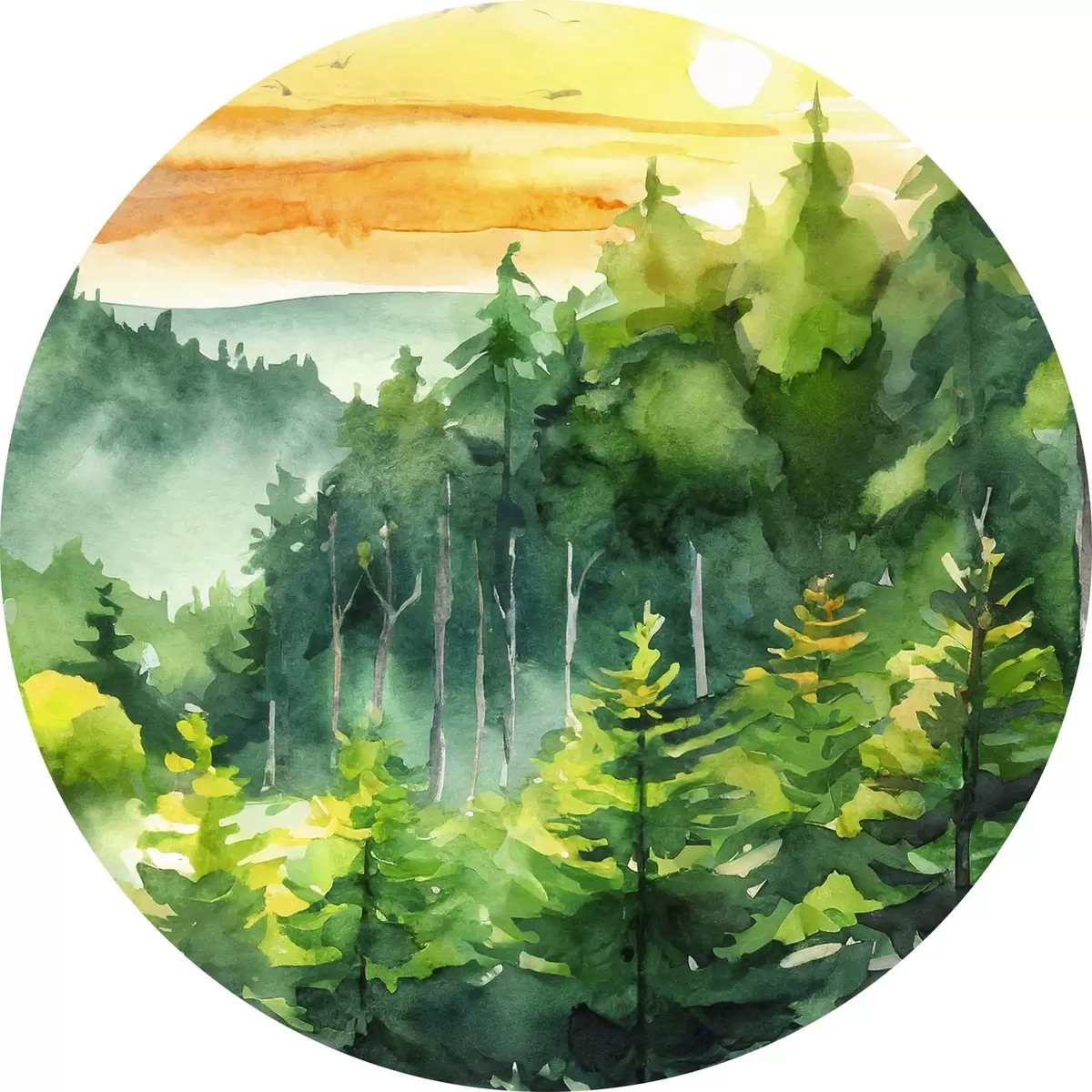 Nuotrauka Miško kraštovaizdis, saulėlydžio dangus, akvarelė, žaluma, pušys, gamta Nr r37952