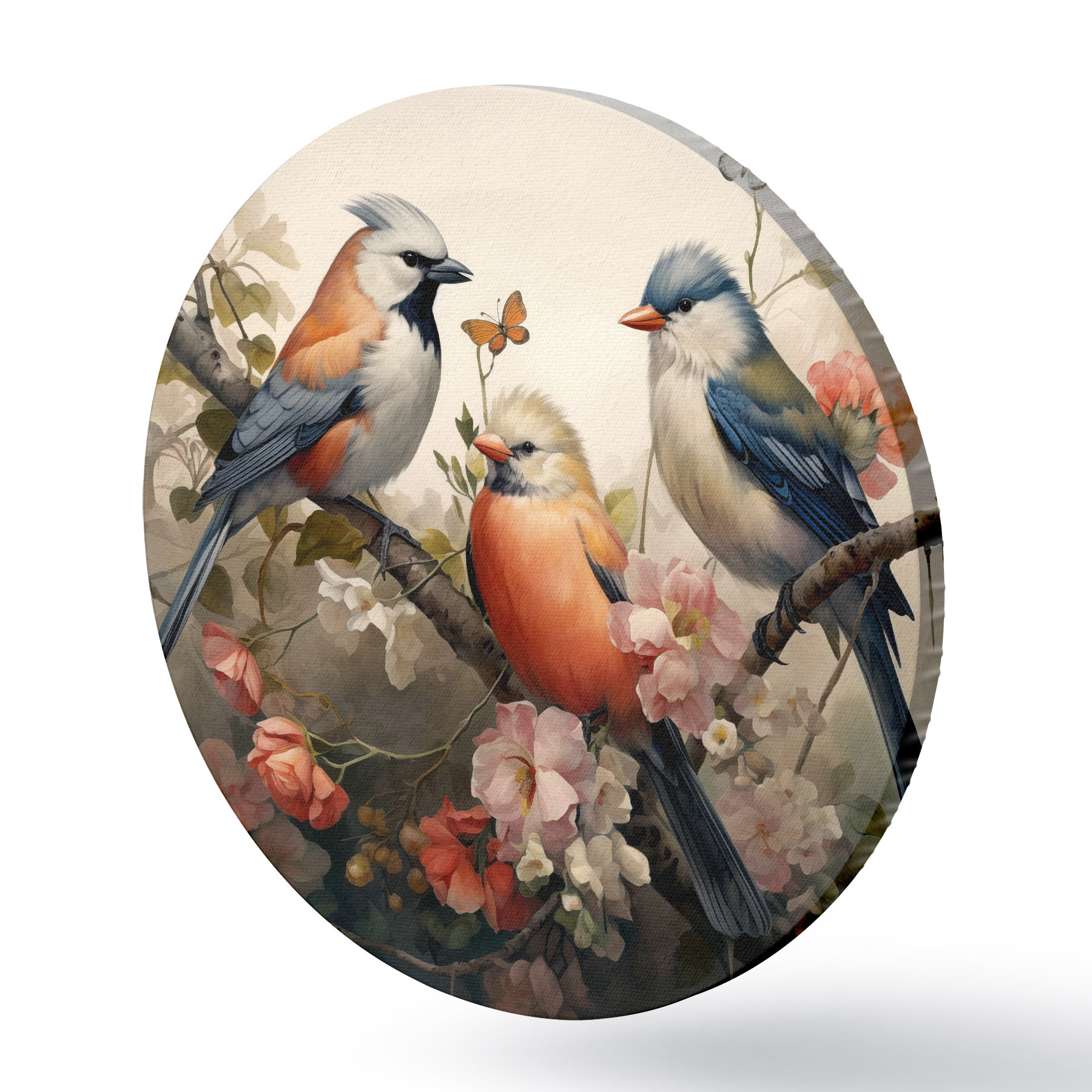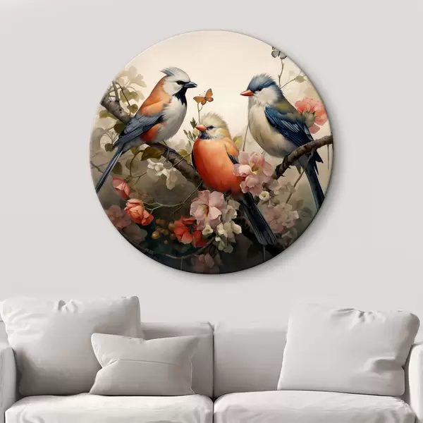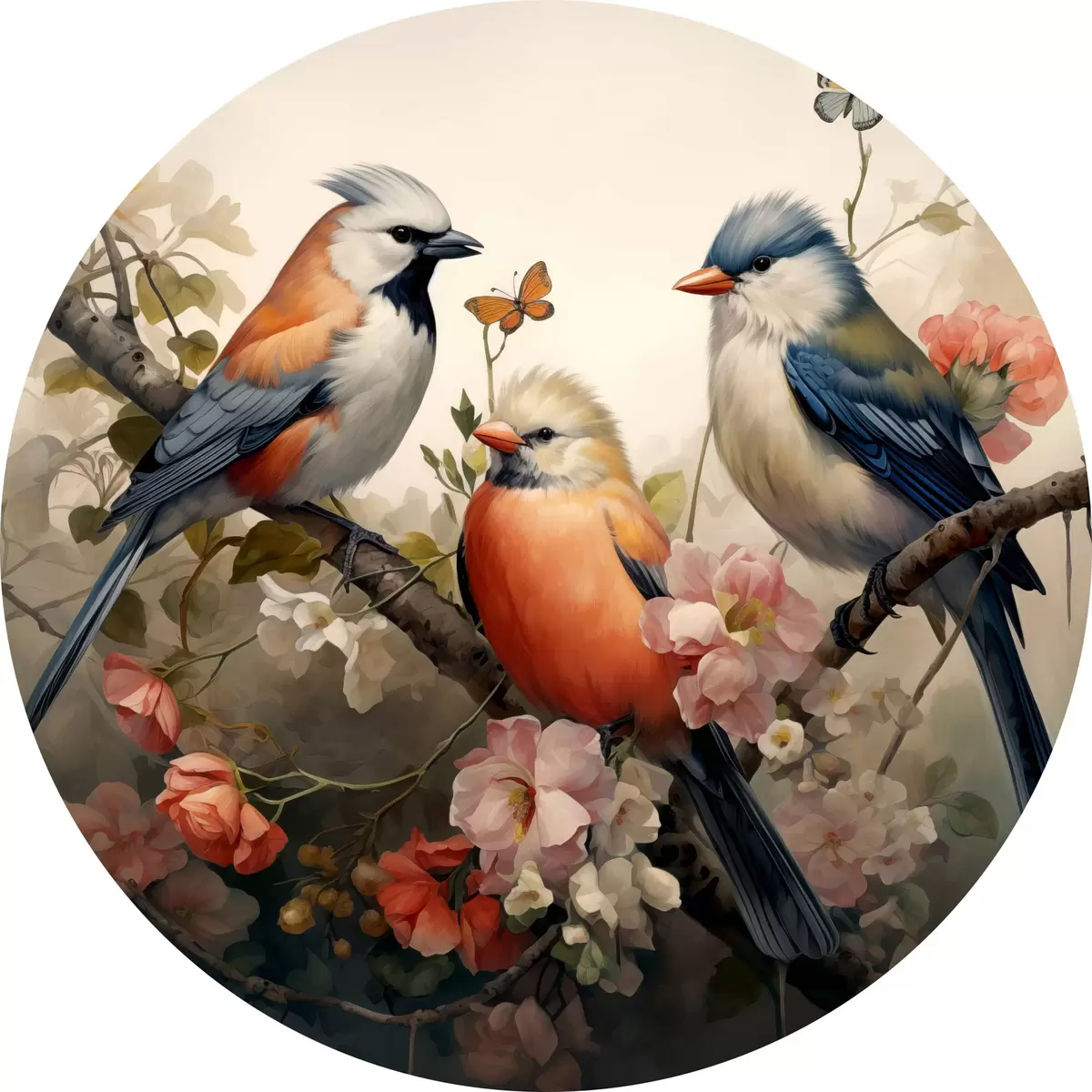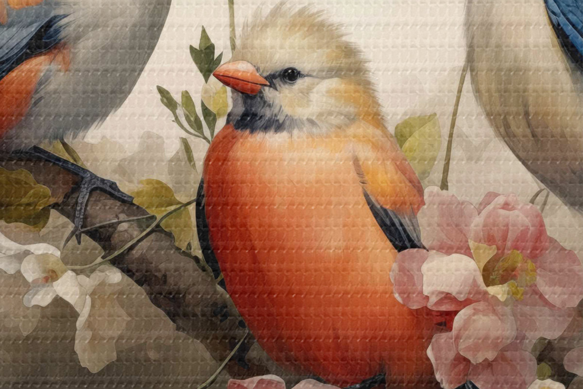 Nuotrauka Paukščių grupė ant šakos su gėlėmis Nr r38103