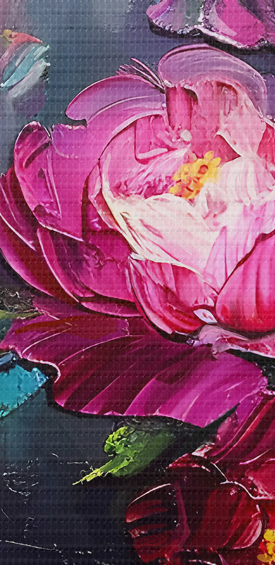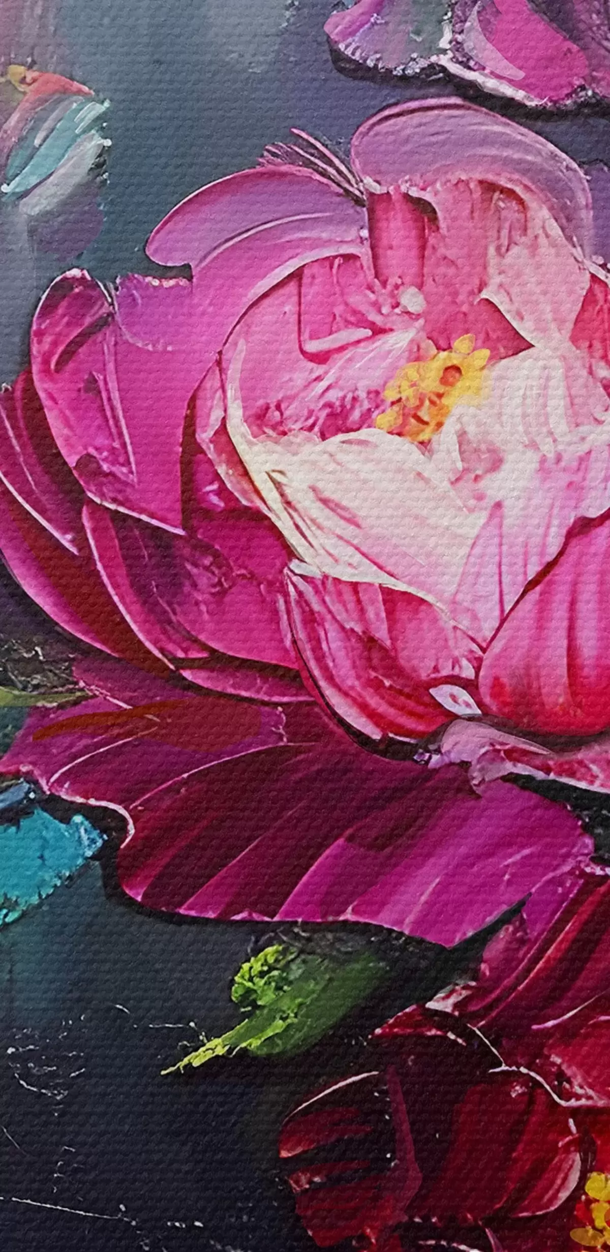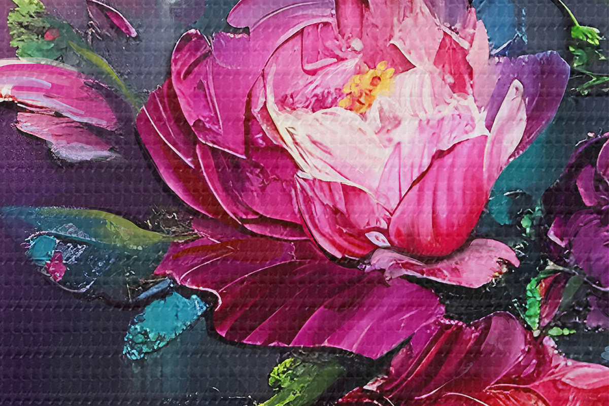 Nuotrauka Piešiamas rožes, žydinčias gėles aliejinės tapybos stiliumi, tamsiai violetiniame fone Nr r38108