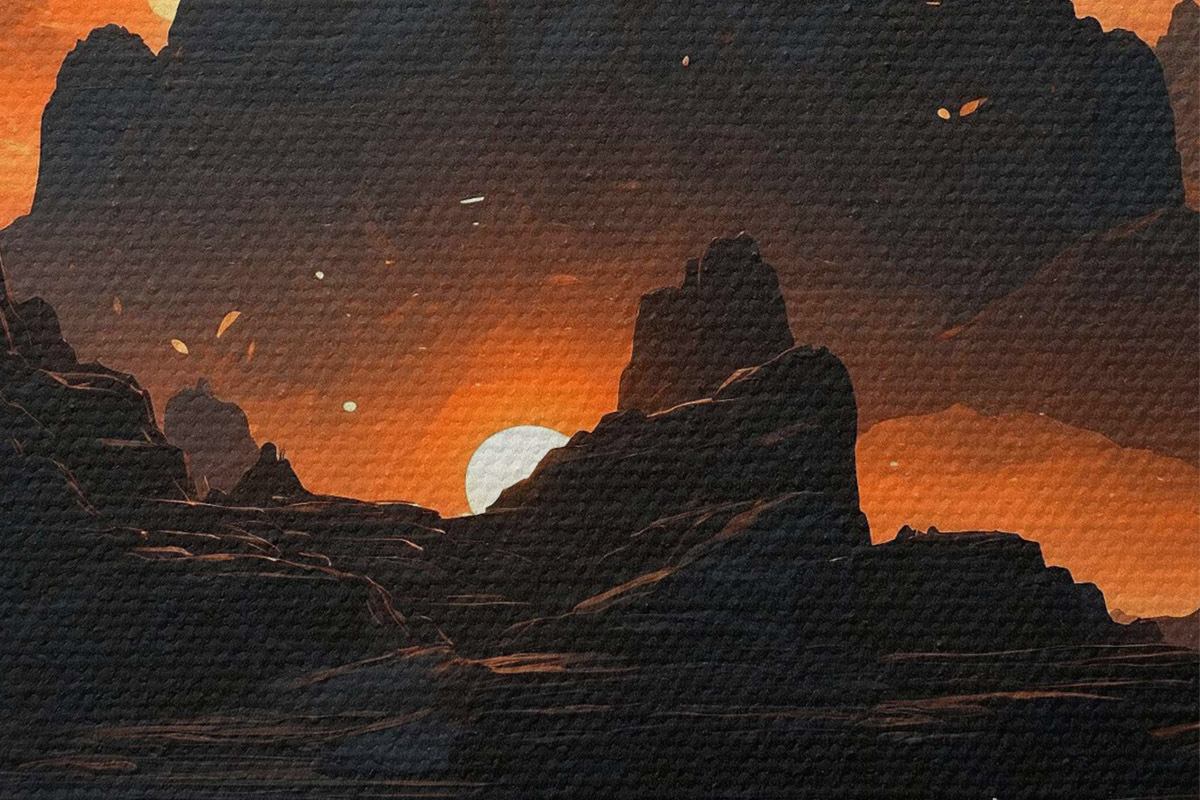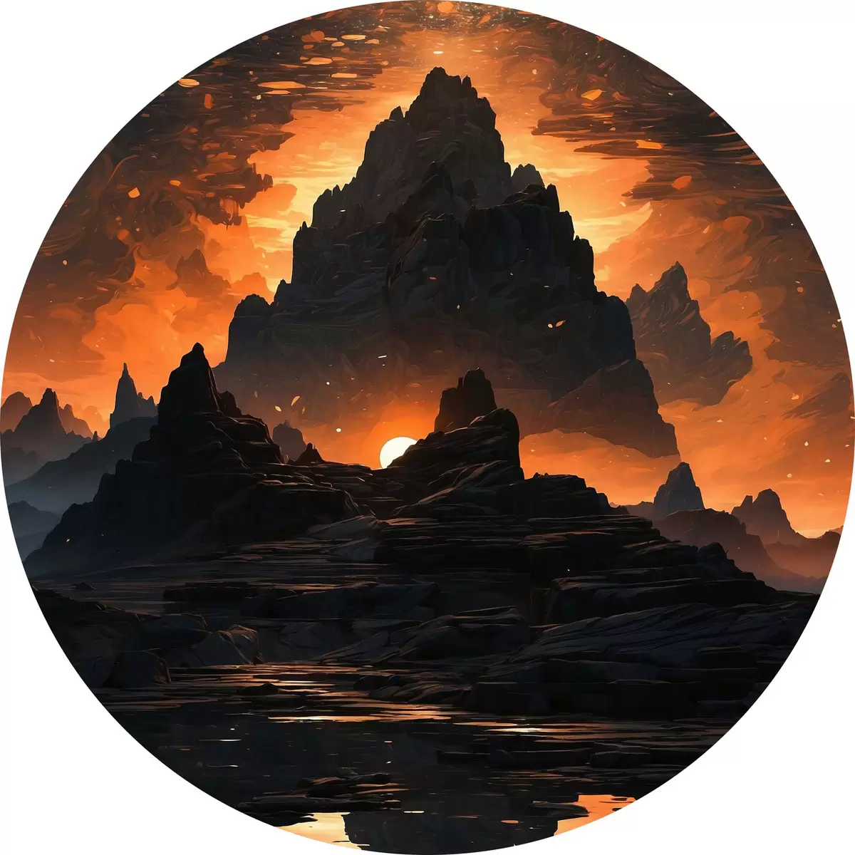 Nuotrauka Kalnų masyvas ir už jo besileidžianti saulė Nr r38120
