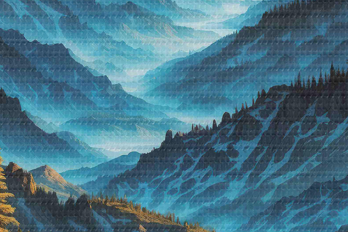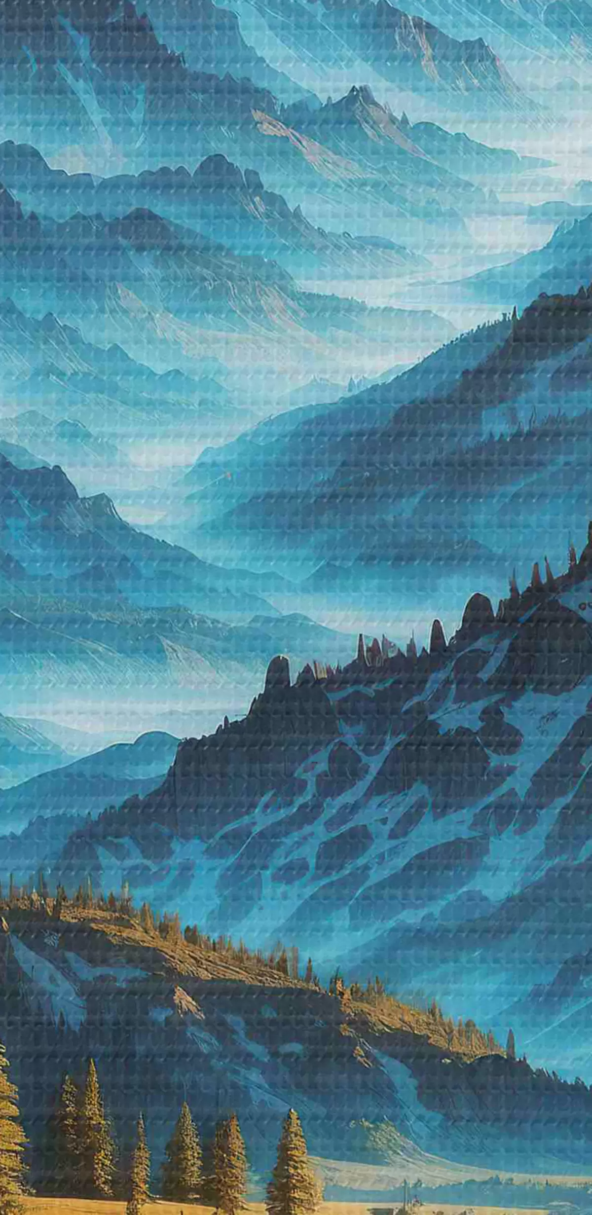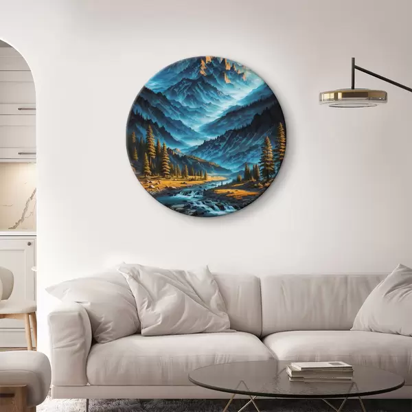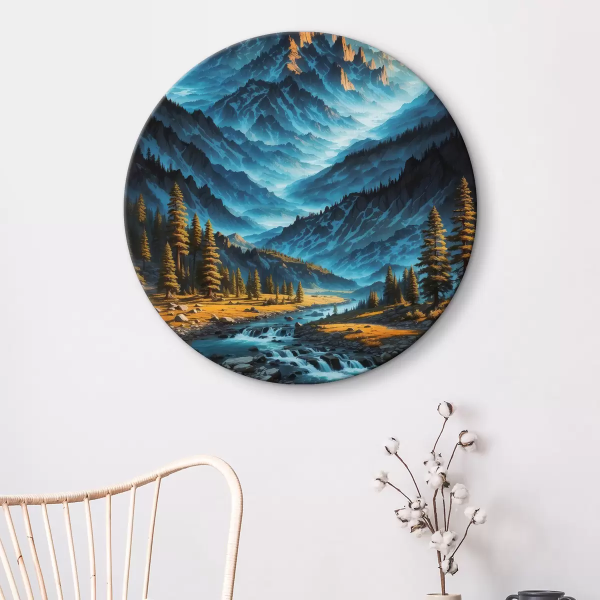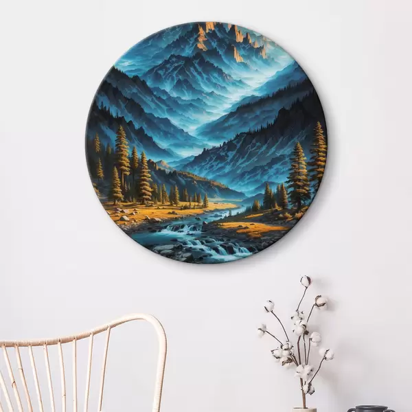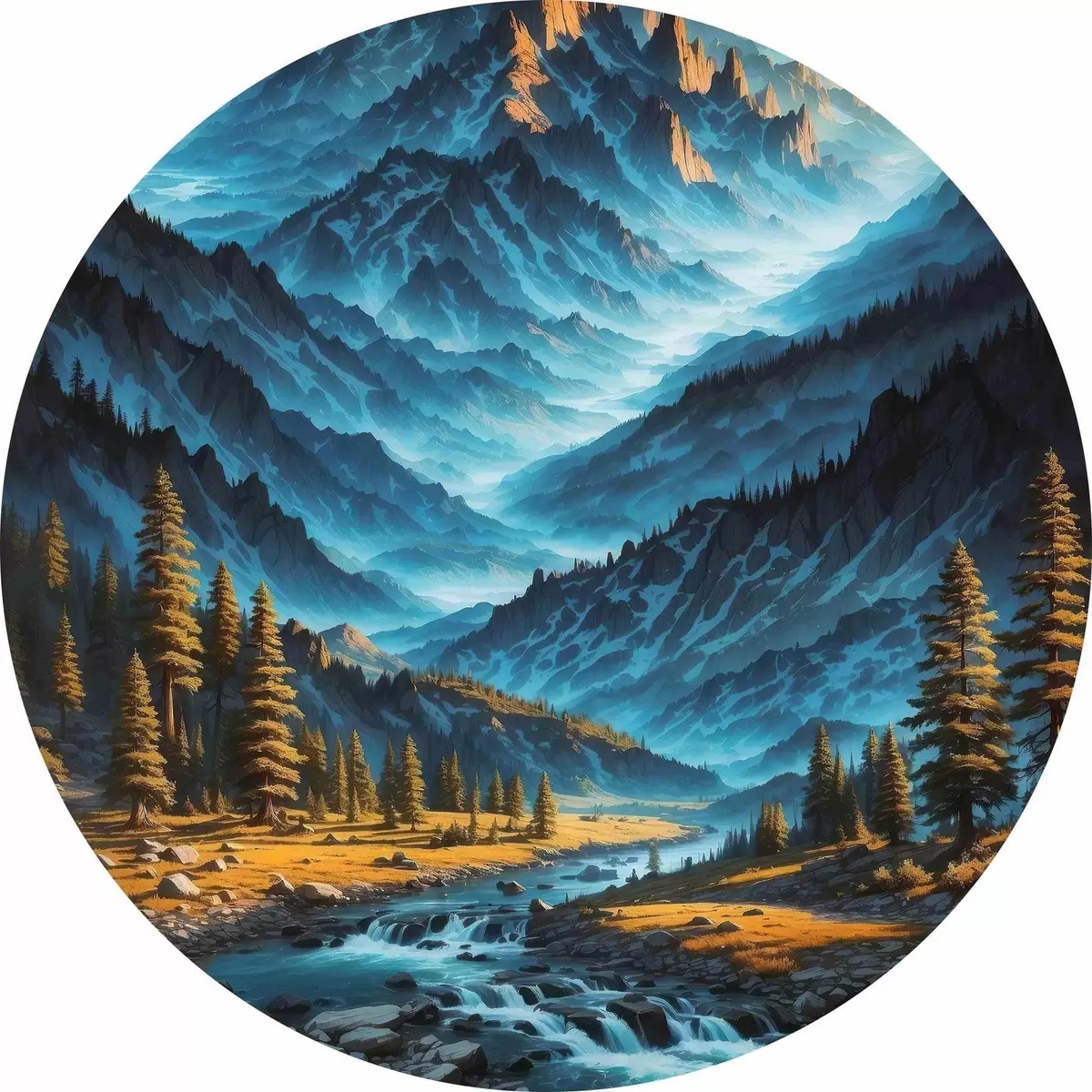 Nuotrauka Kalnų masyvas su medžiais ir upe Nr r38134