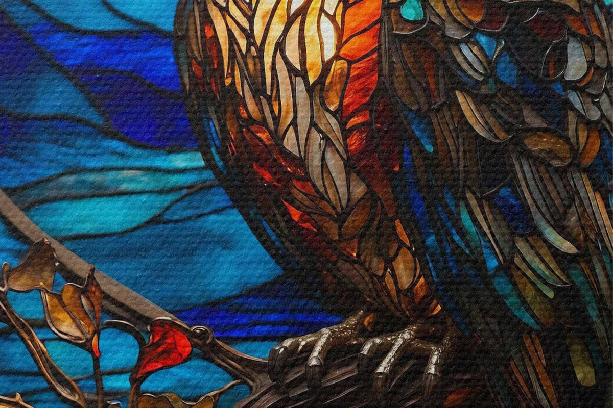 Nuotrauka Vitražinė pelėda ant medžio šakos Nr r38185